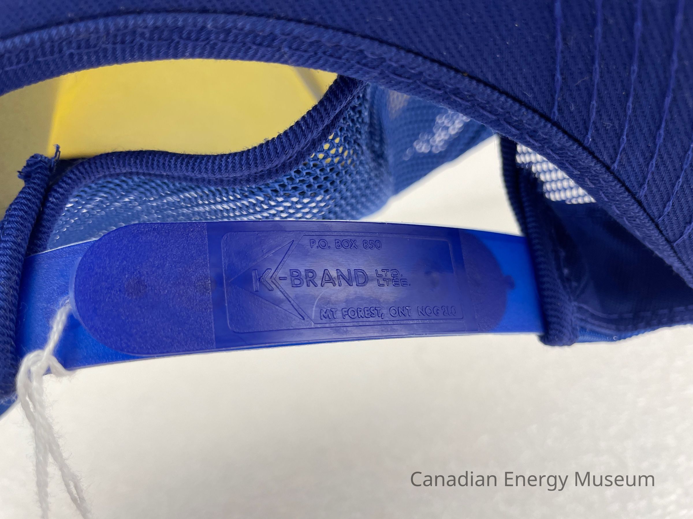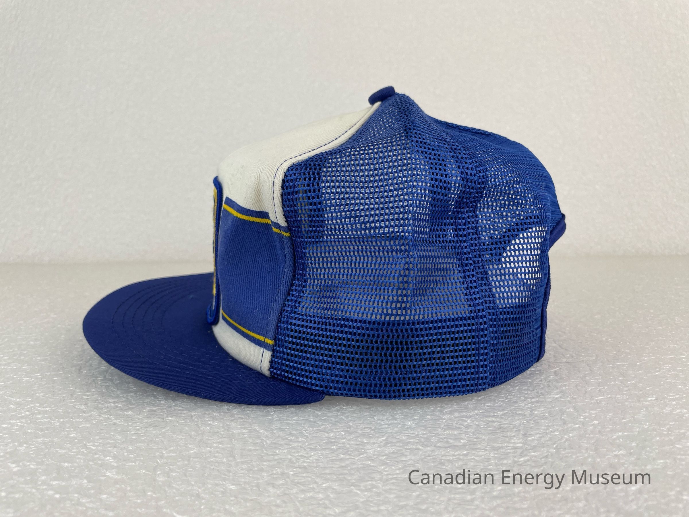 Accessory, Cap, Clothing, Hat, Promotional Item, White, Trucker Cap, Blue, YellowDescription