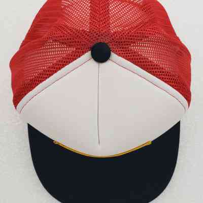 Crown Material: Foam padded, white with red stitching.