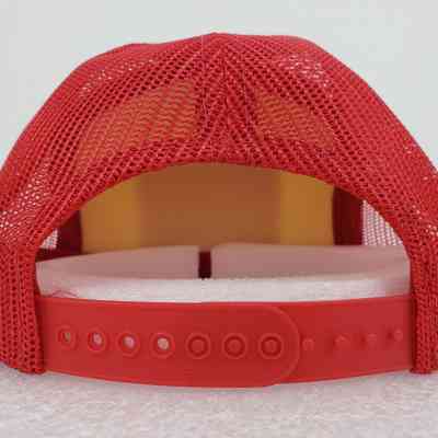 Fastening: Snap back, plastic red.