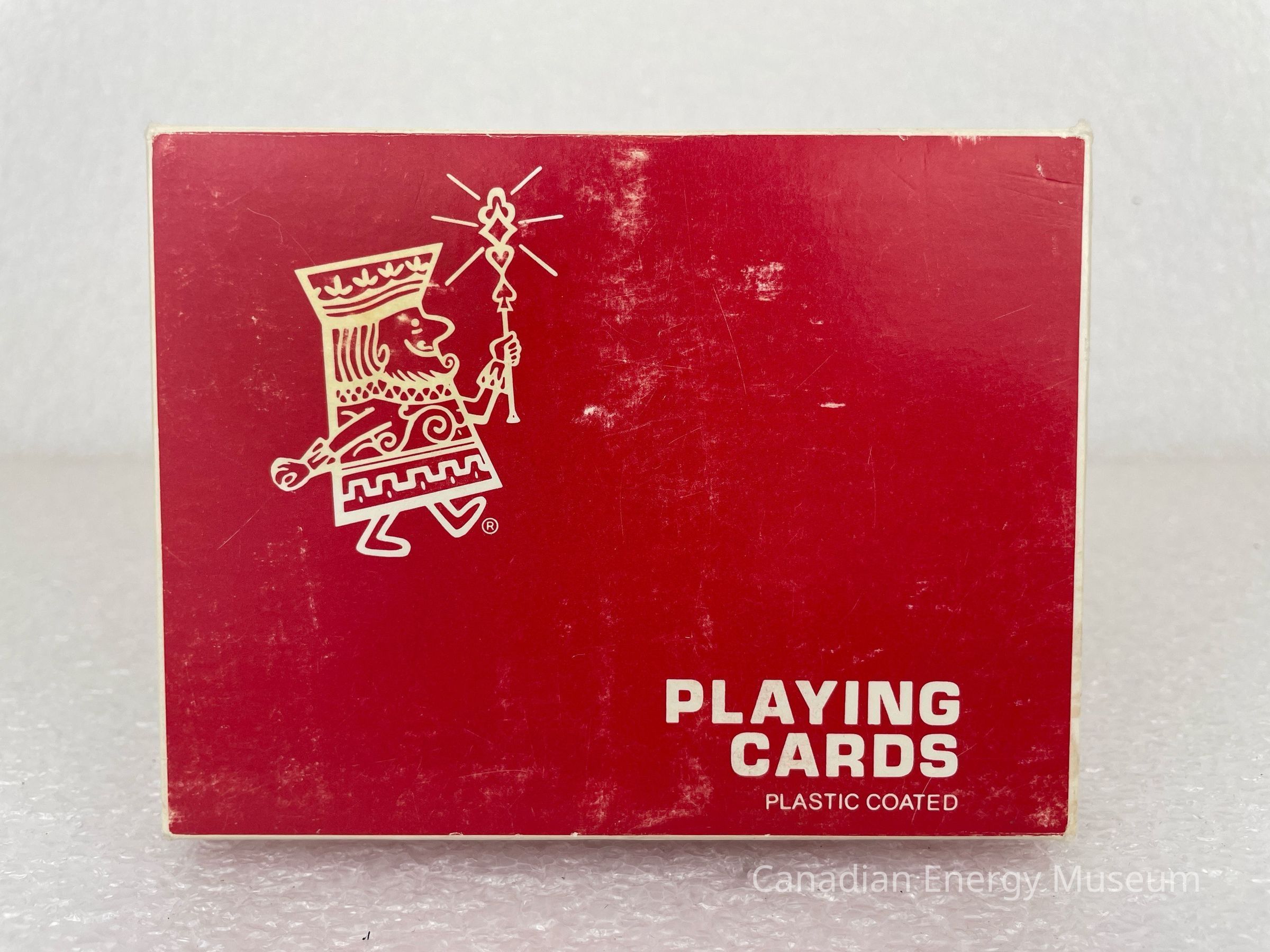 Description: Two decks of playing cards (plastic-coated), inside a cardboard storage box.