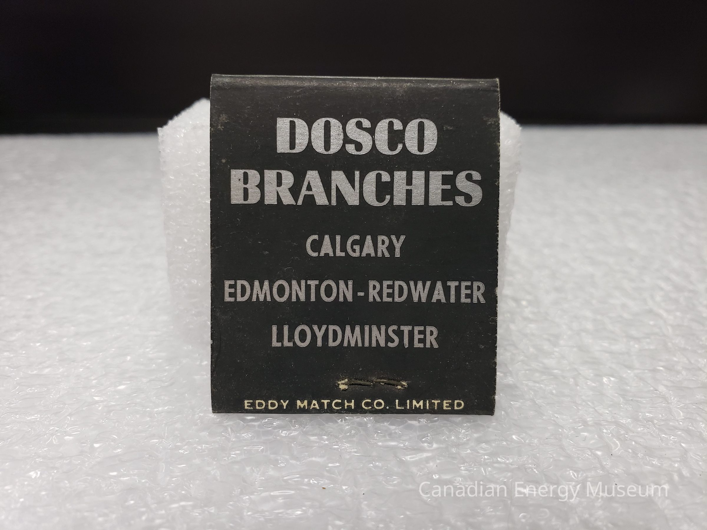 Matchbook bearing branding for Dominion Oilfields Supply Co. Ltd. (DOSCO). Contained 20 matches.