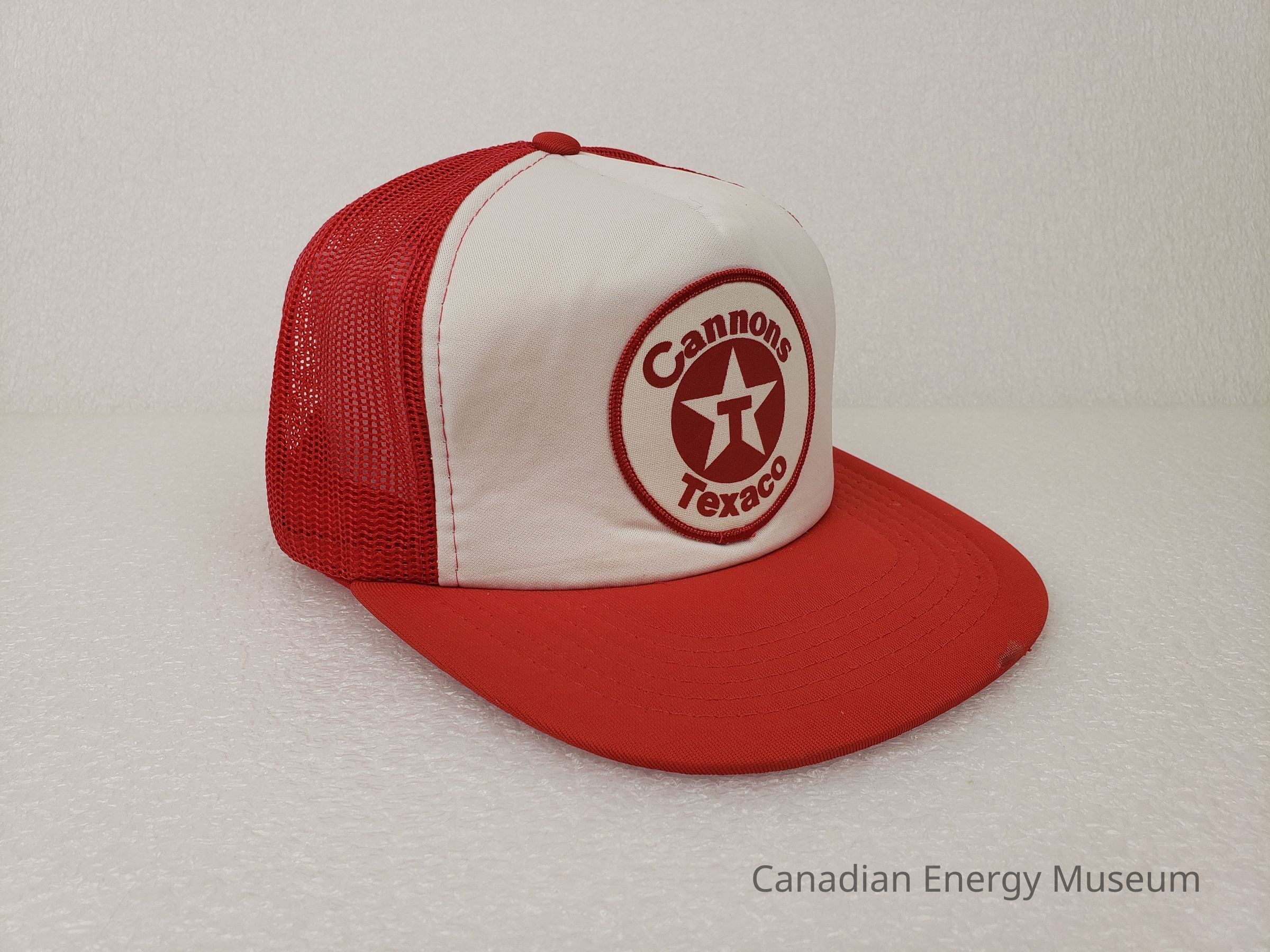 Textile, Texaco, Cap, Hat, White, Red, Plastic, Accessory, Clothing, Oil, Oil Industry, Promotional Item, Trucker Cap, Patch, EmbroideryDescription