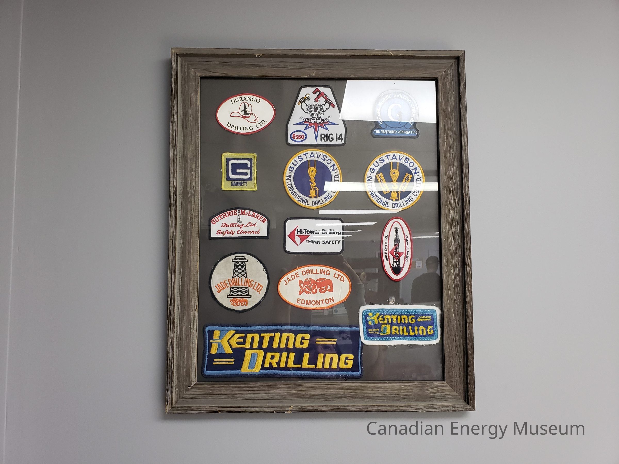 Set of 13 embroidered patched, framed. Includes two for "Kent Drilling" at the bottom.Collection