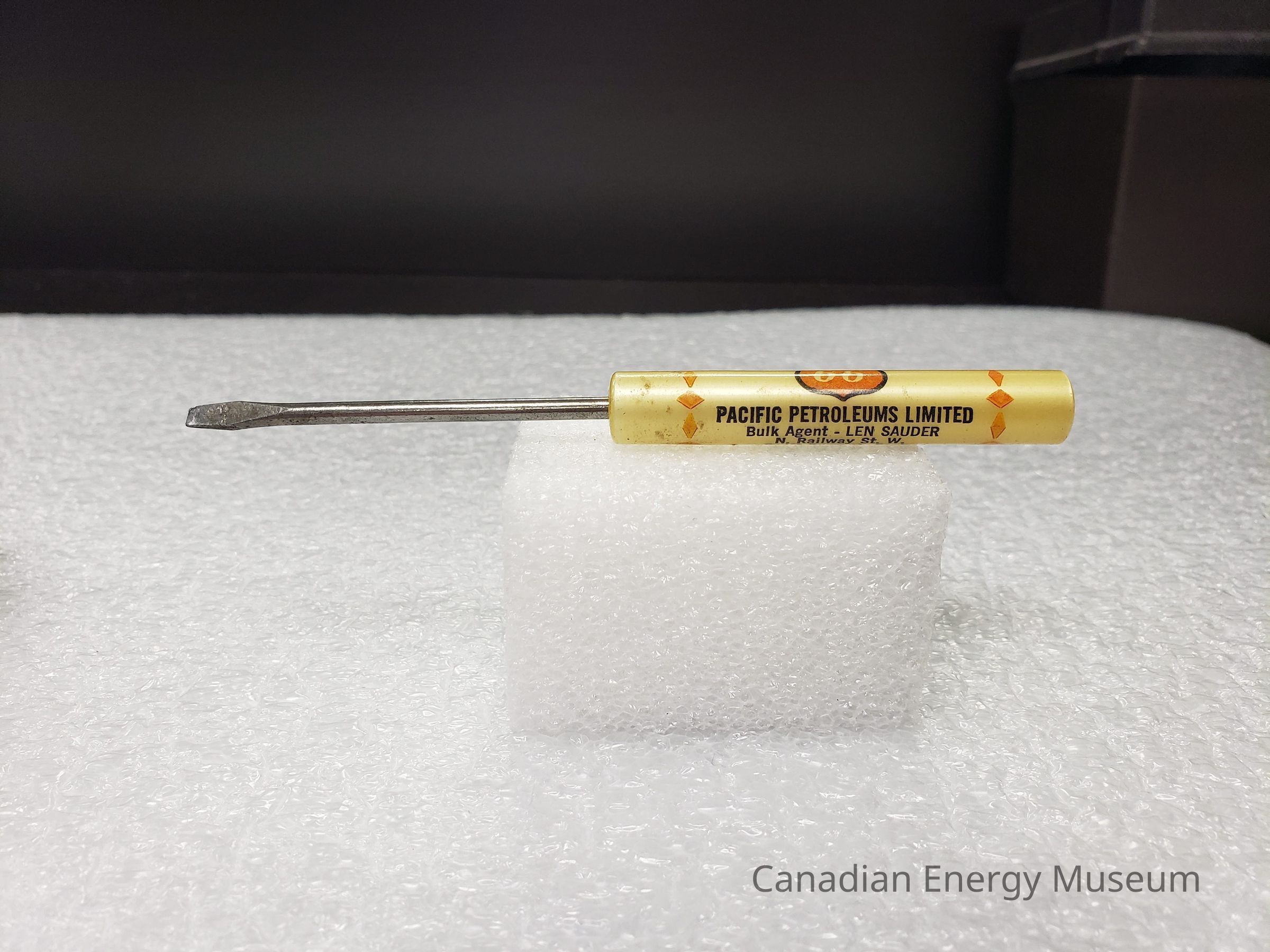 Flathead screwdriver, branded to Pacific Petroleum Ltd., Swift Current Saskatoon.