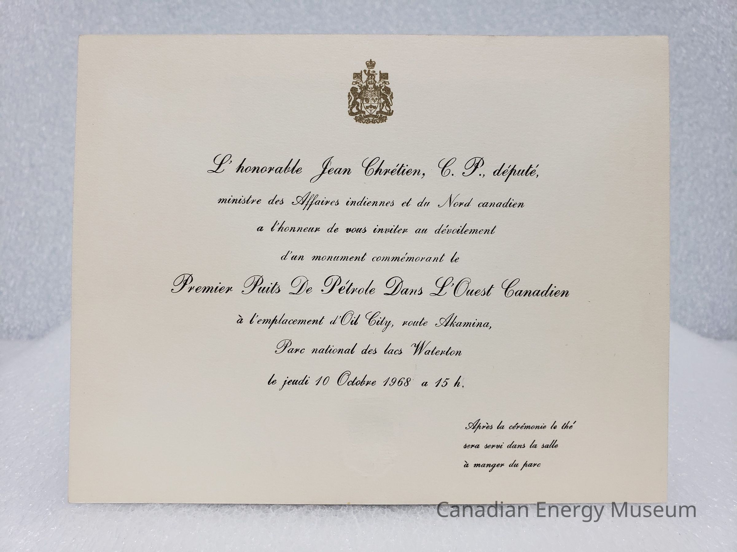 [Invitation] The First Oil Well In Western Canada, Mr. & Mrs. G.H. Stafford, Department of Indian Affairs and Northern Development, w/ Envelope and TWO PhotographsEntry/Object ID
