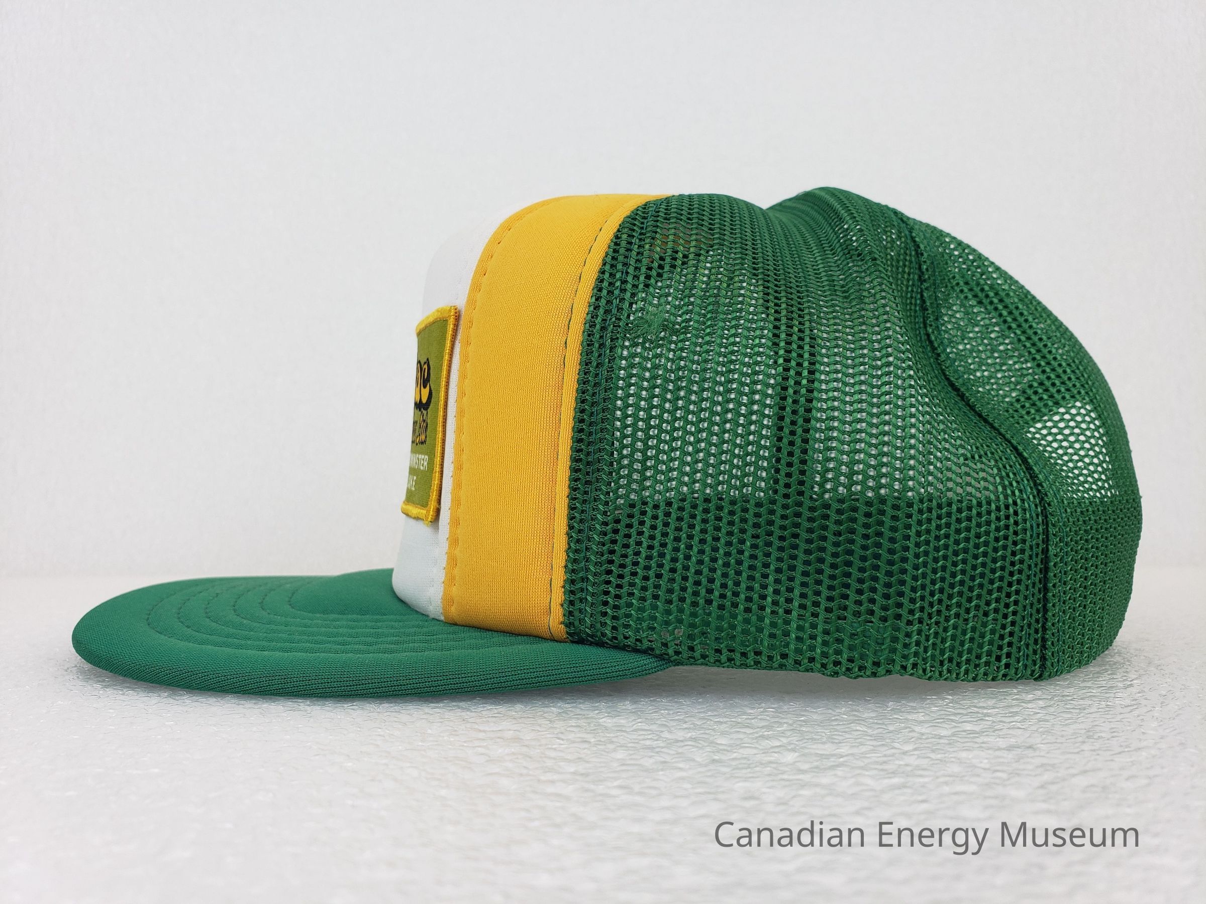 Oilfield, Cap, Trucker Cap, Hat, Headwear, Clothing, Accessory, Textile, Yellow, Green, White, Lloydminster, Cold Lake, Ro-Vac Pump Truck Service Ltd., Alberta, PolyesterDescription