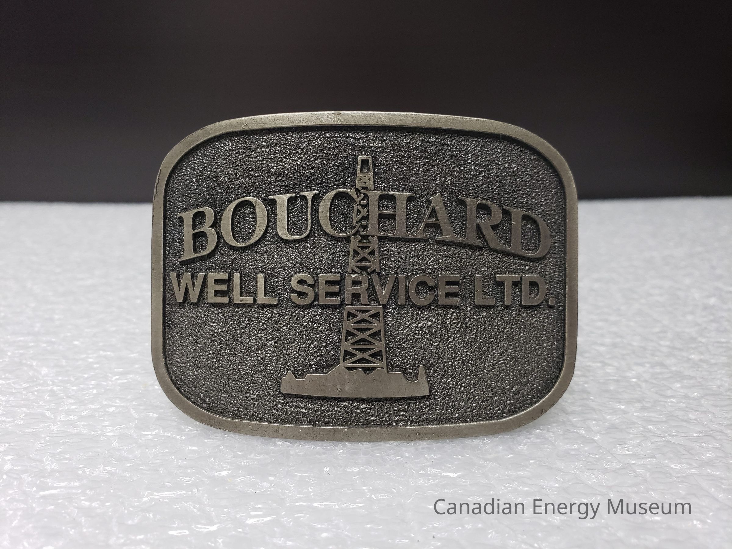 Old Description (Kelsey Dalrymple, 3 June 2020):Bouchard Well Service Ltd. Pewter belt buckle. Derrick in center.Collection
