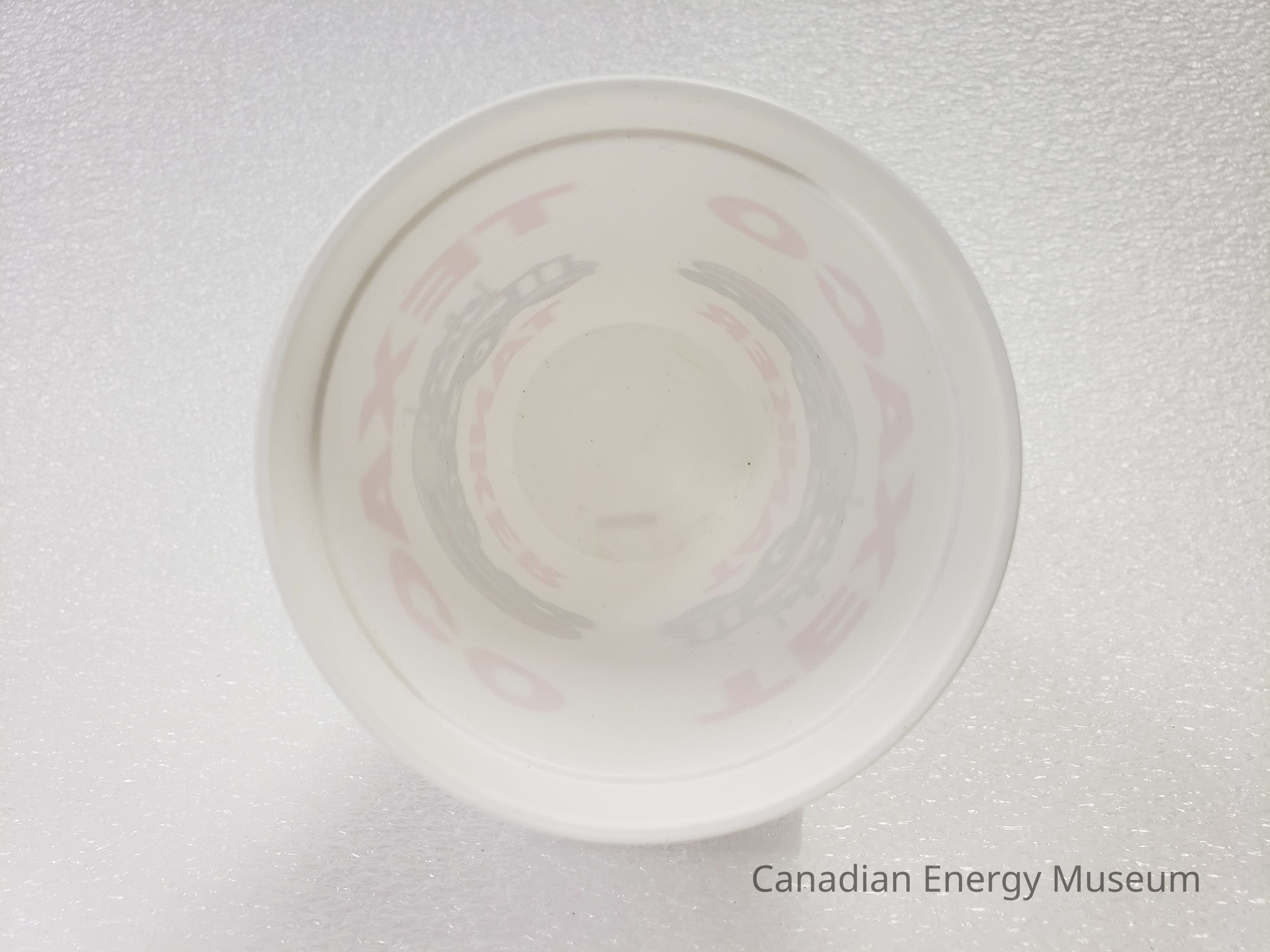 Old Description (Kelsey Dalrymple, 2/10/2020): Large plastic traveling cup. White, with grey and red illustration of a Texaco tanker on either side.Collection