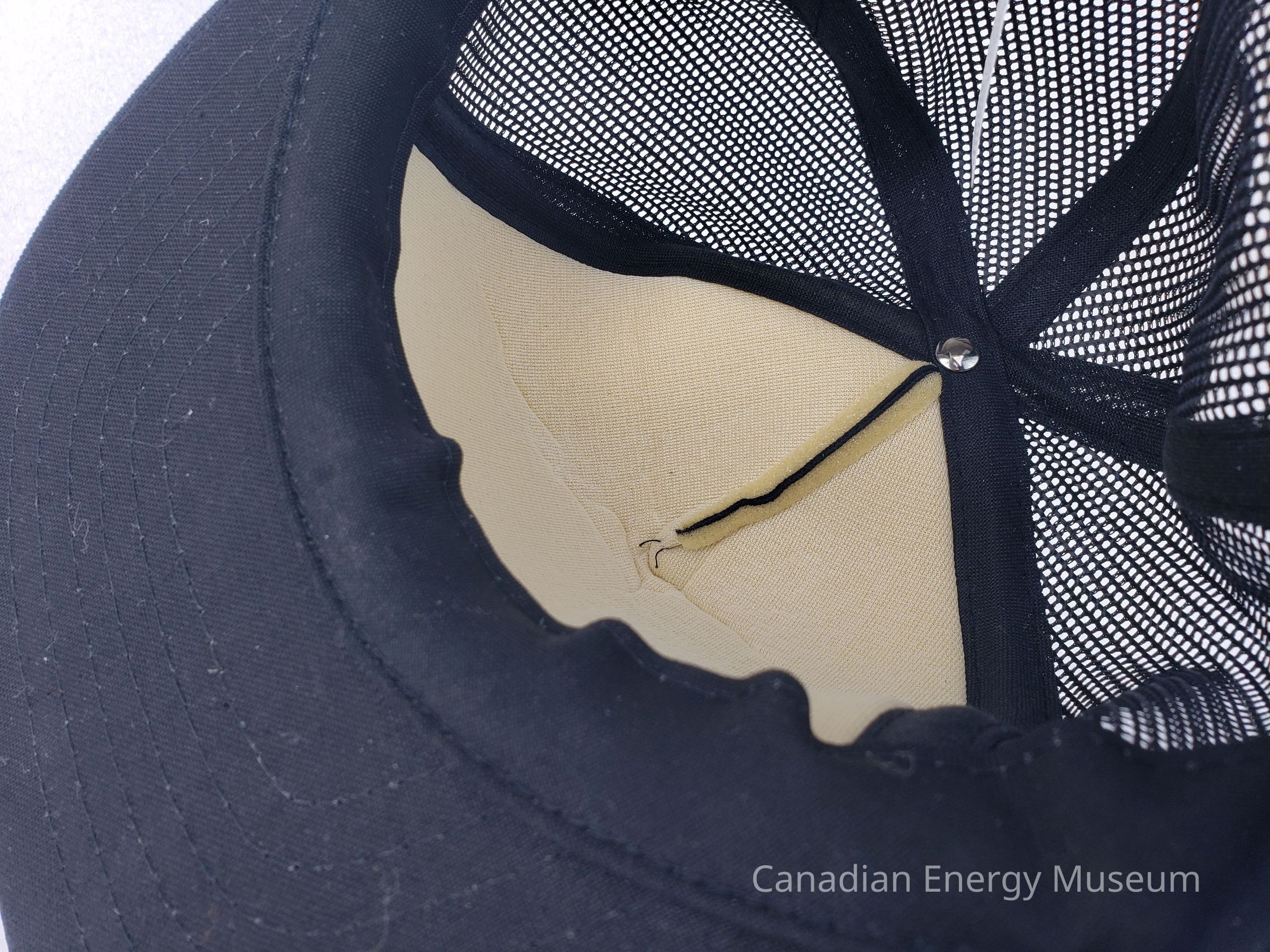 Crown Material: Foam backing with fabric outer, black with black stitching.