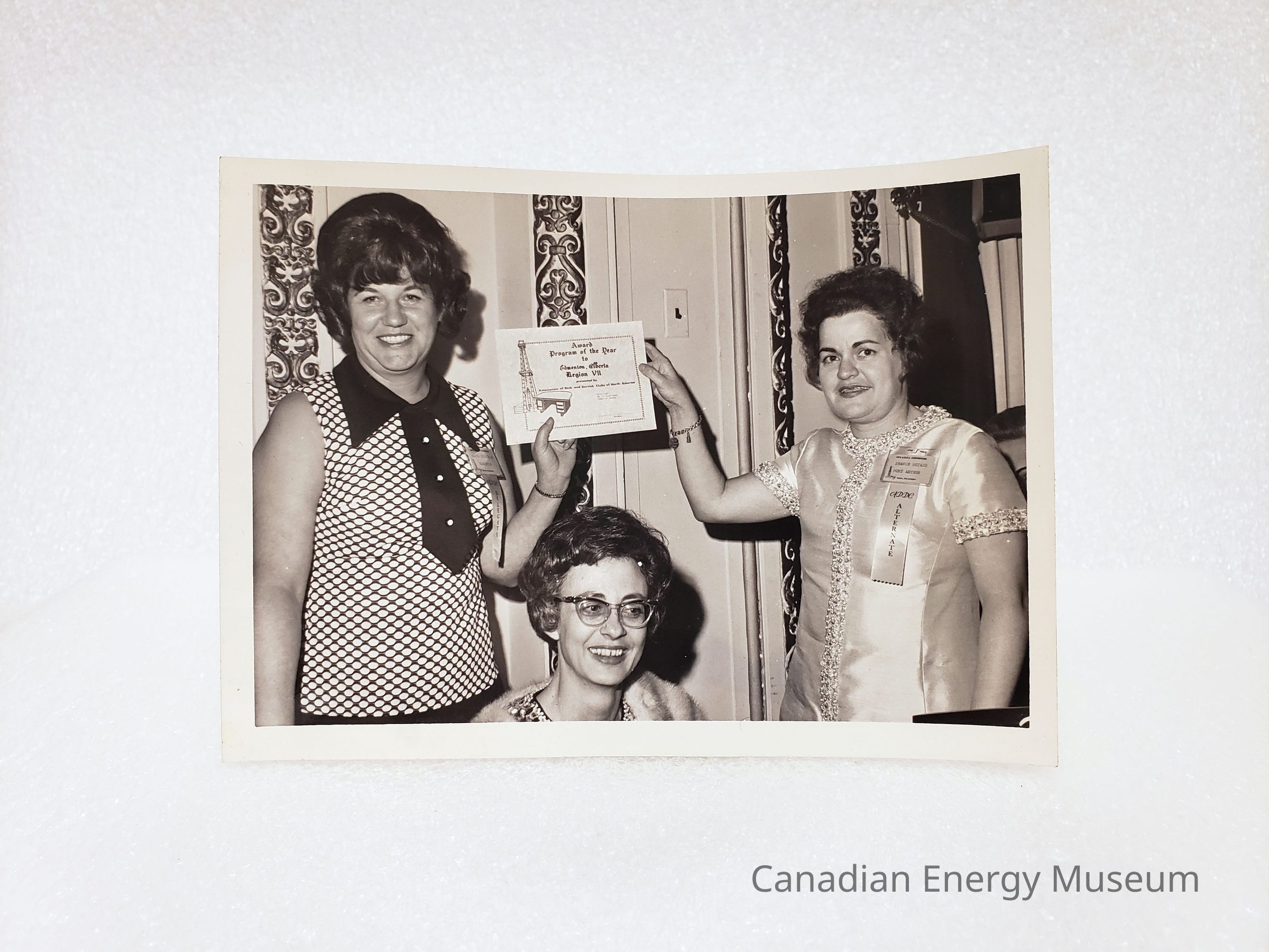 [Photo] Three Ladies with 'Program of the Year' Award, Association of Desk and Derrick Clubs, Large, BW, Landscape, White Border, c.1972Entry/Object ID