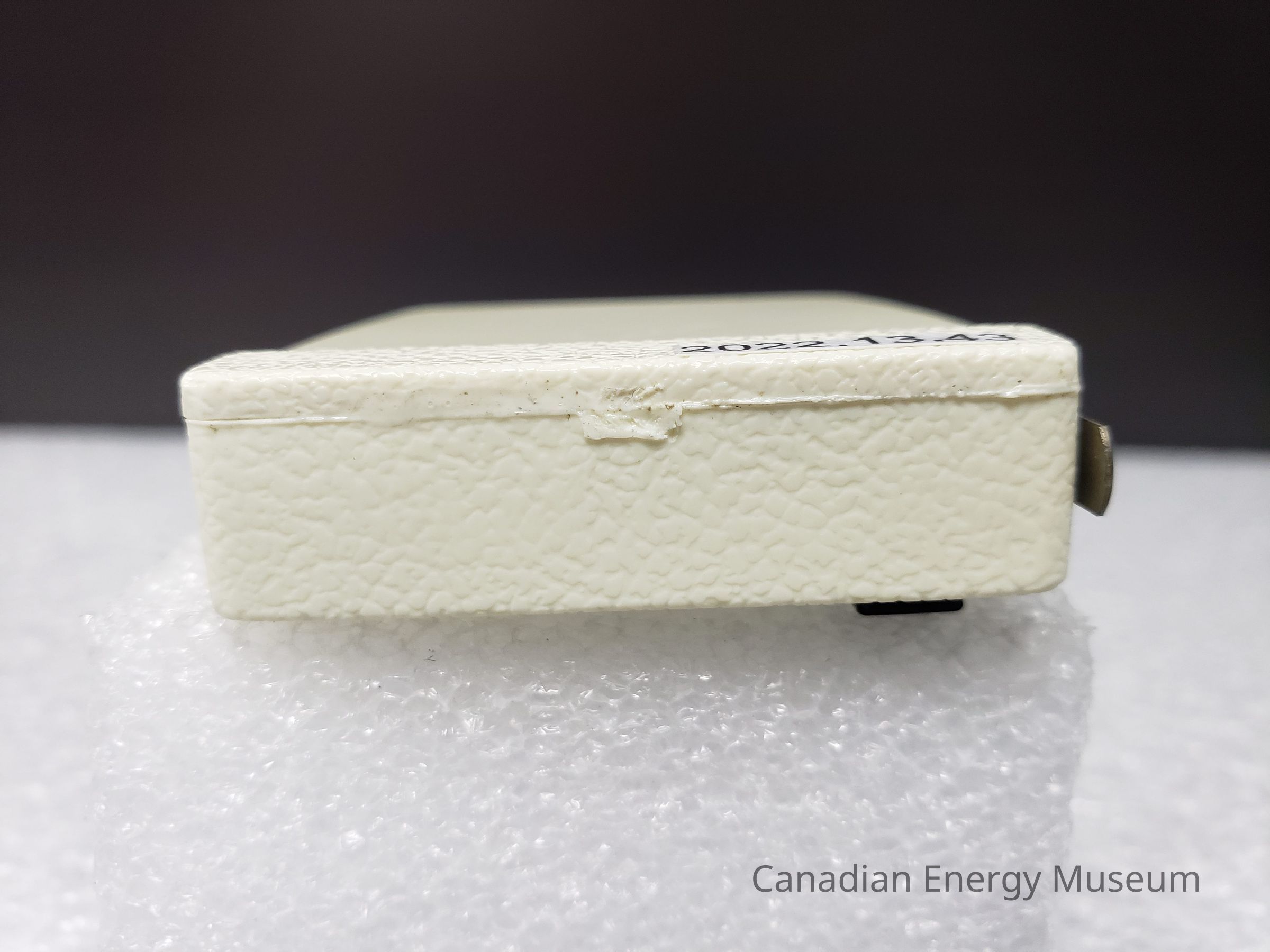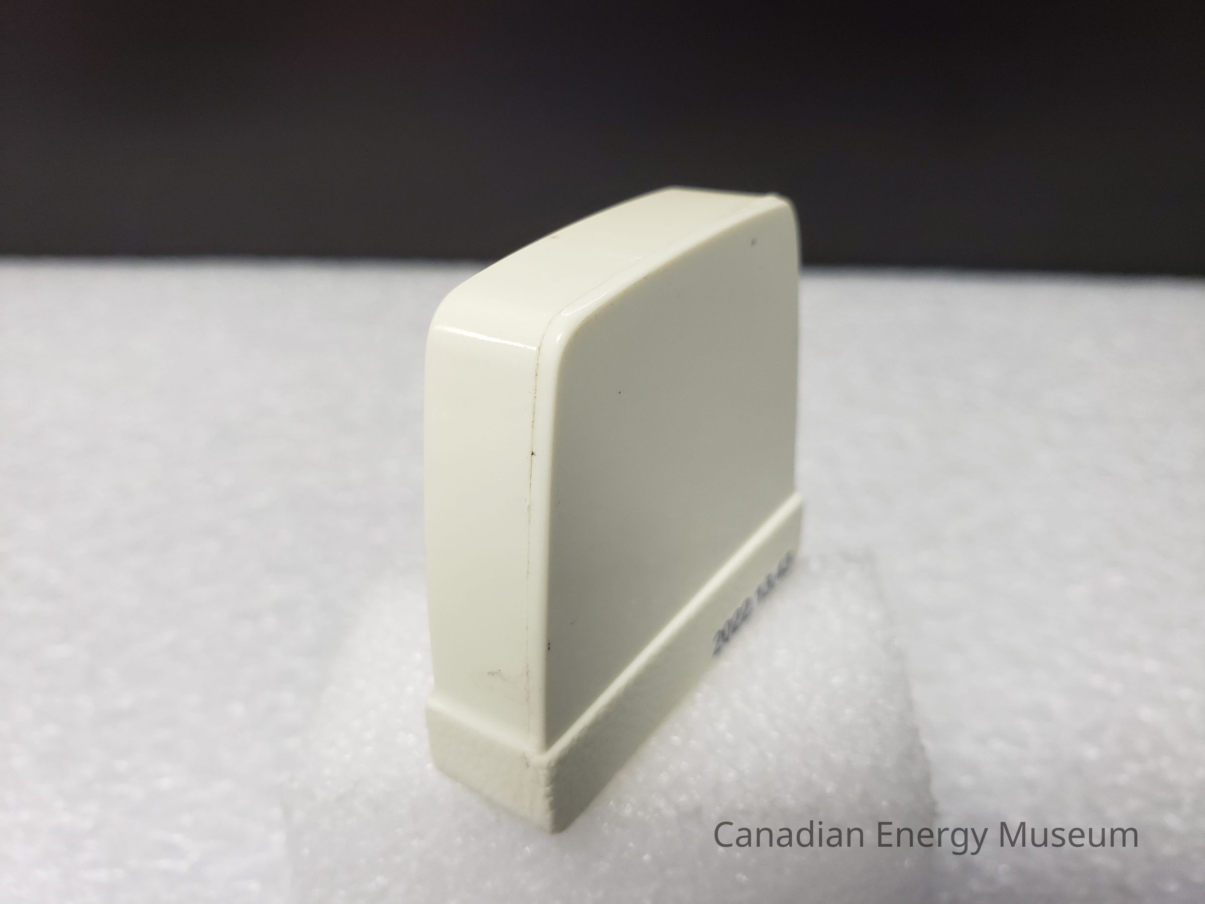 Old Description(Kelsey Steil, 5/24/2022): Small white tape measure. Advertisement in plastic window on one side. Blue illustration of power tongs and text: McLeod Valley Casing Services Ltd. Below in red text reads: Vic Valley Operators.Collection
