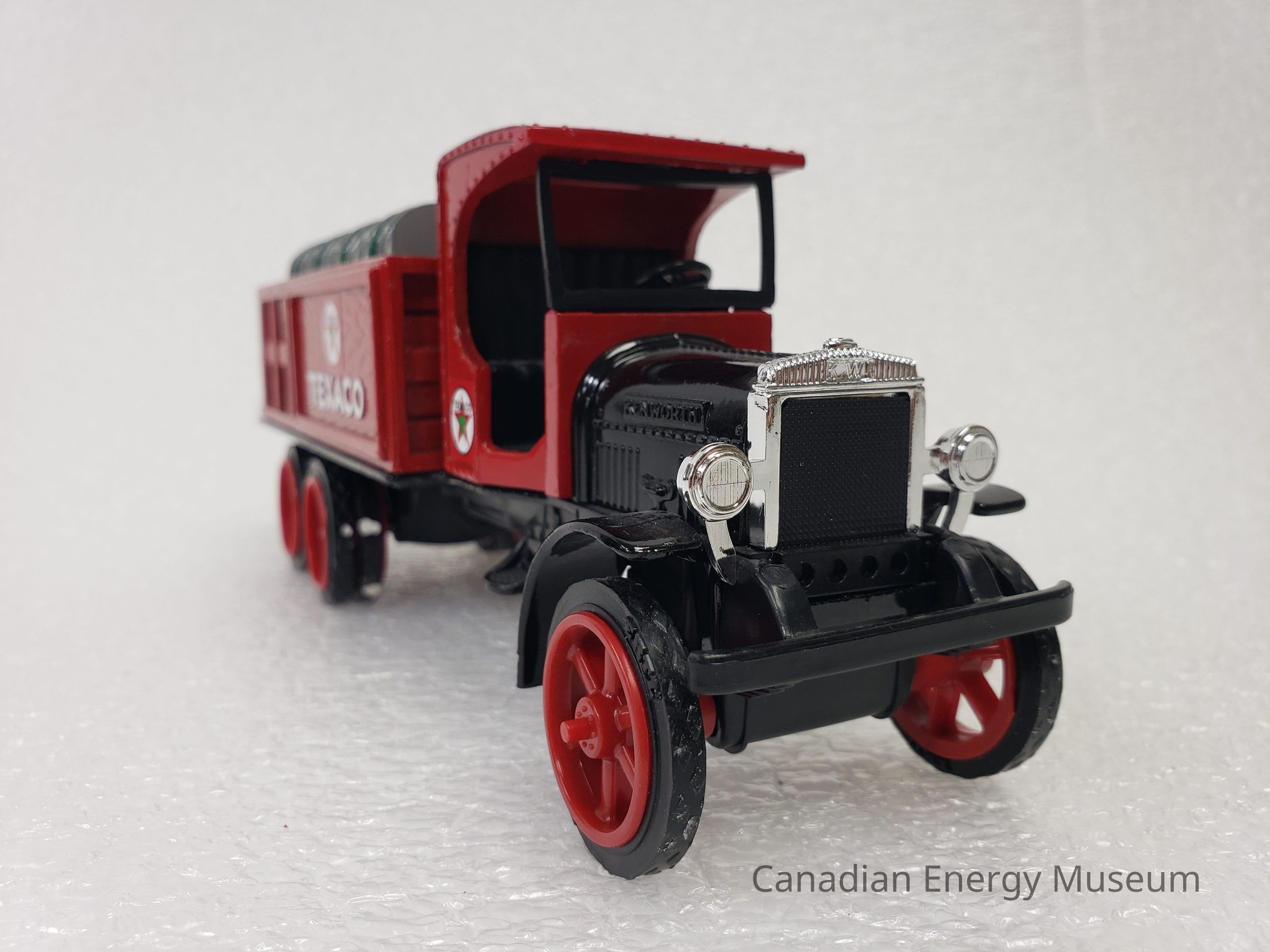 This particular model is a replica of a 1925 Kenworth Stake Truck (with Texaco branded barrels), was one of the vehicles used by Texaco Jobbers (the middleman between the company that refines the petroleum products and buyers and retailers) and other distributors when delivering products in the 1920s and 1930s.