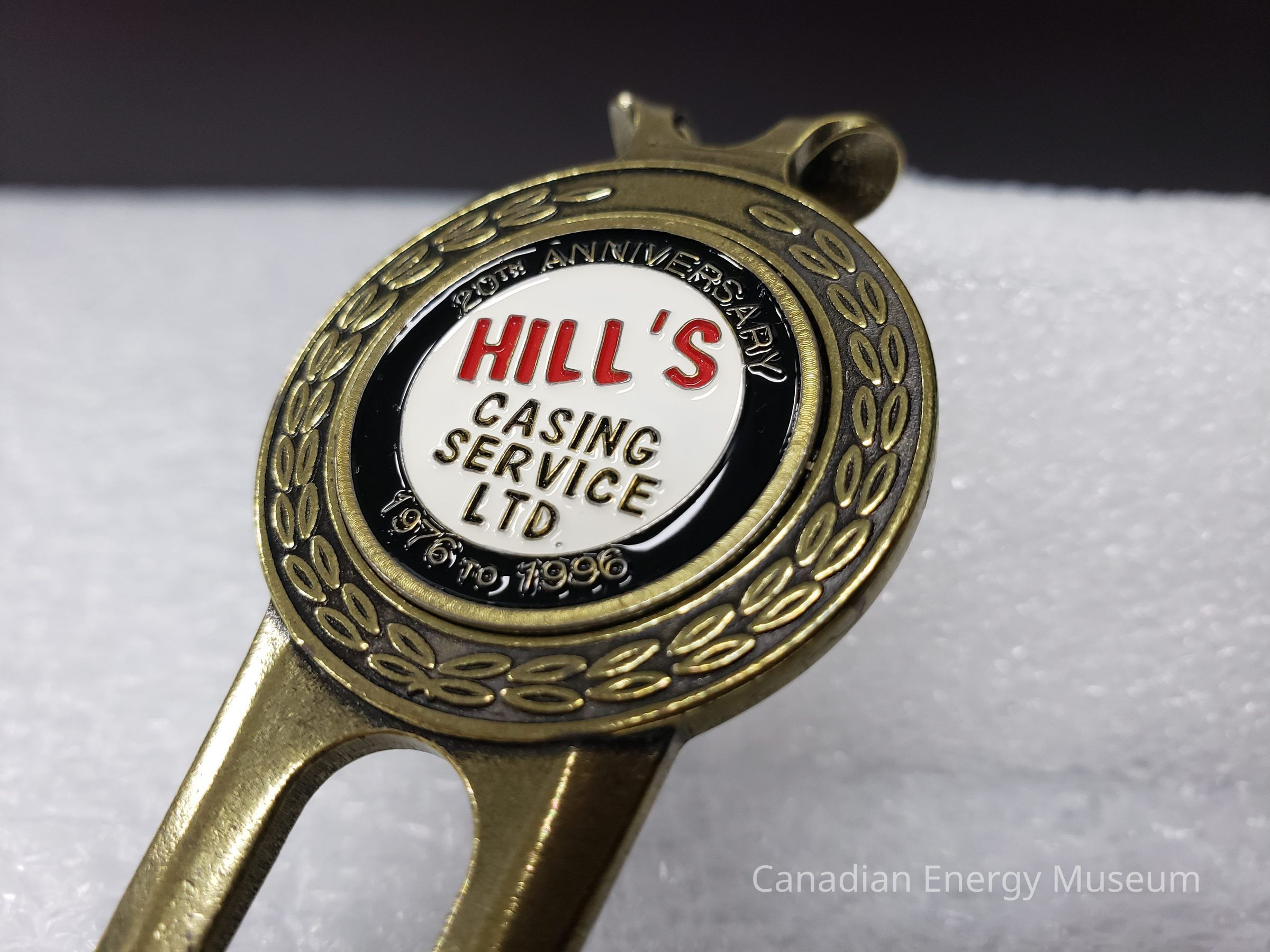 A Golf Divot Tool branded to Hill's Casing Service LTD.