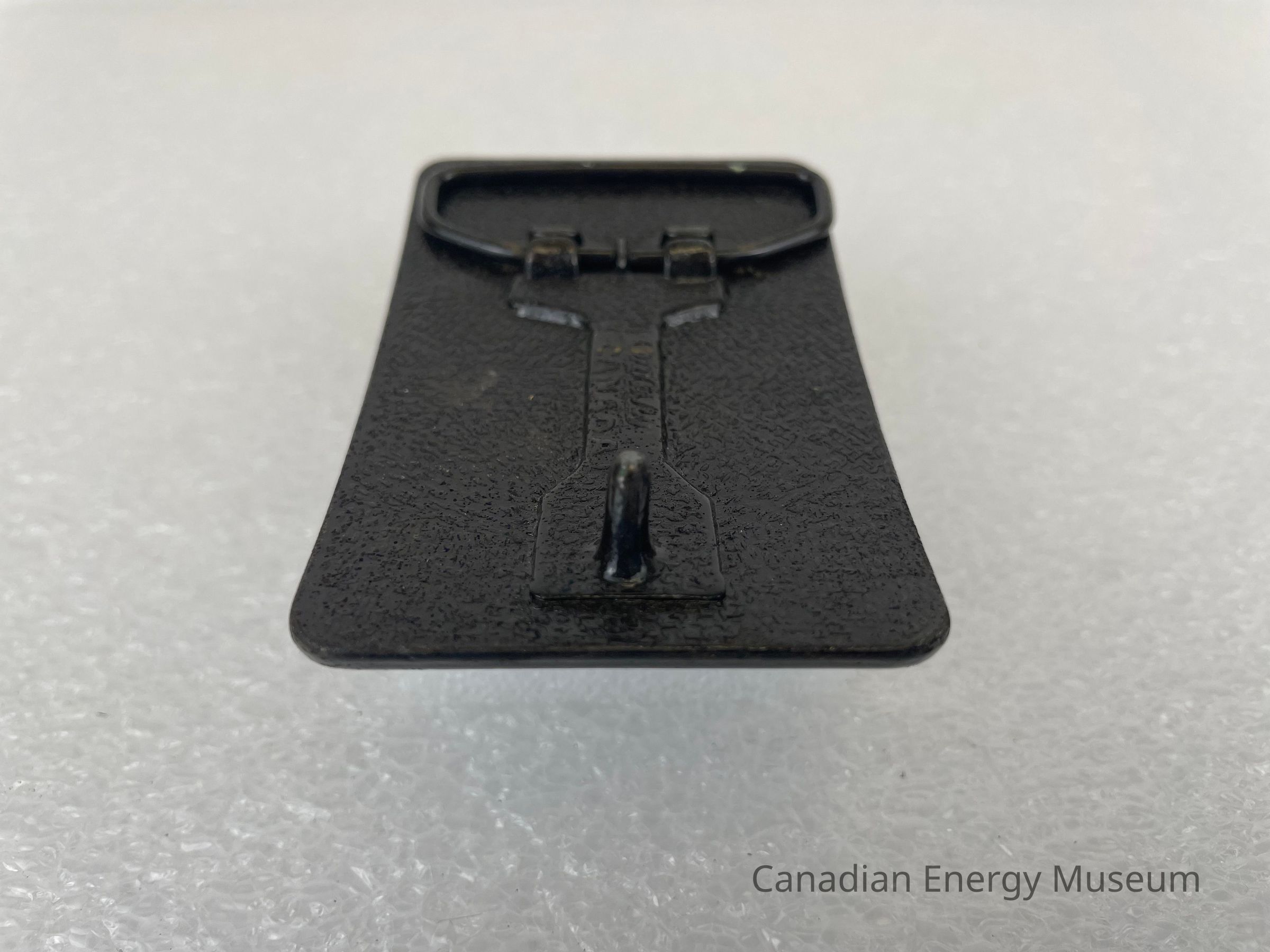 Back Elements: The back is a textured surface. The hook and hinge are attached as a singular piece. The hook is rounded, and the hinge is a rounded trapezoid shape attached by a single bracket.Collection