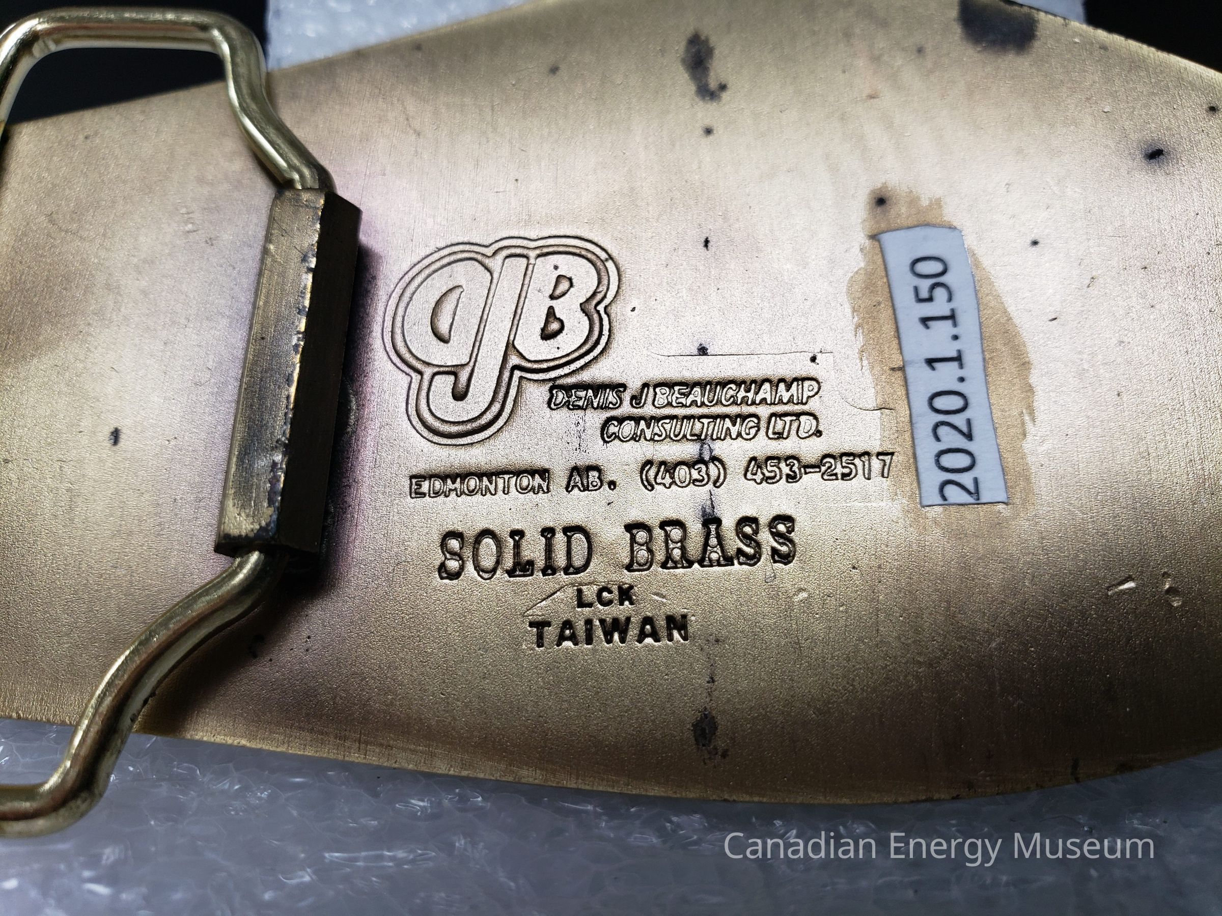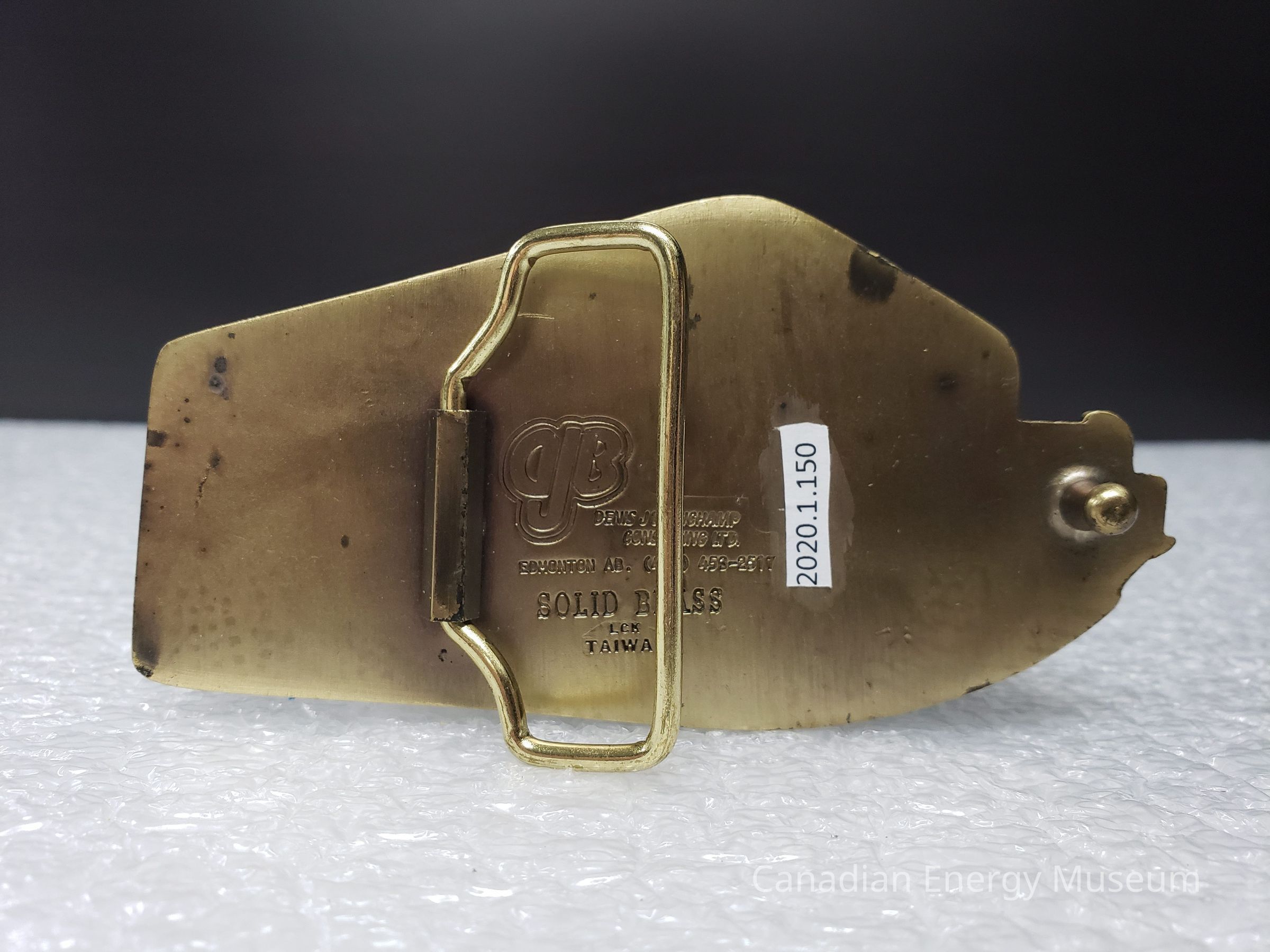 Belt Buckle, Accessory, Metal, Brass, Bronze, Alberta, Artie T. Kos Trucking Ltd., Drayton Valley, Denis J Beauchamp Consulting Ltd., Edmonton, Canada, RedDescription