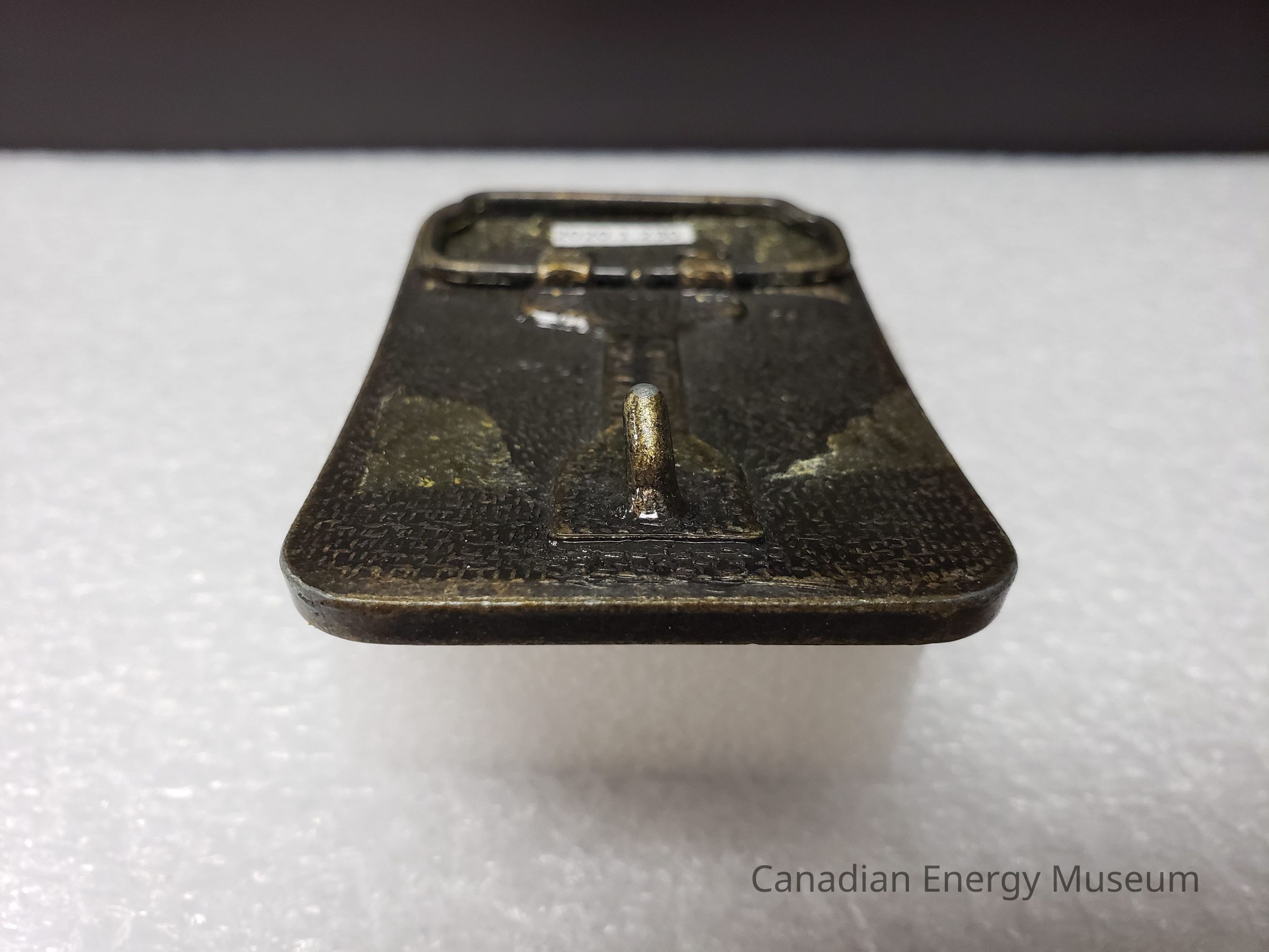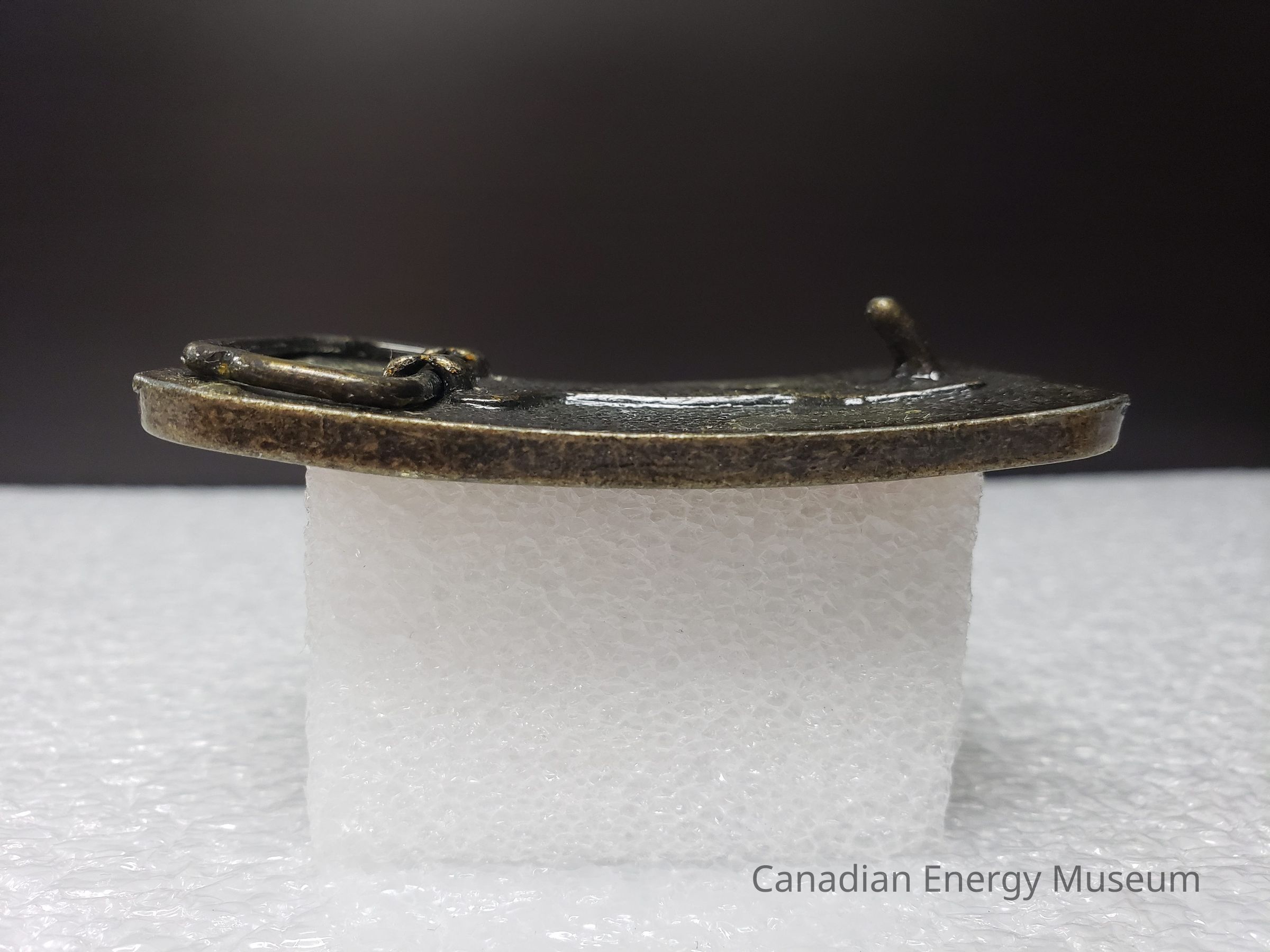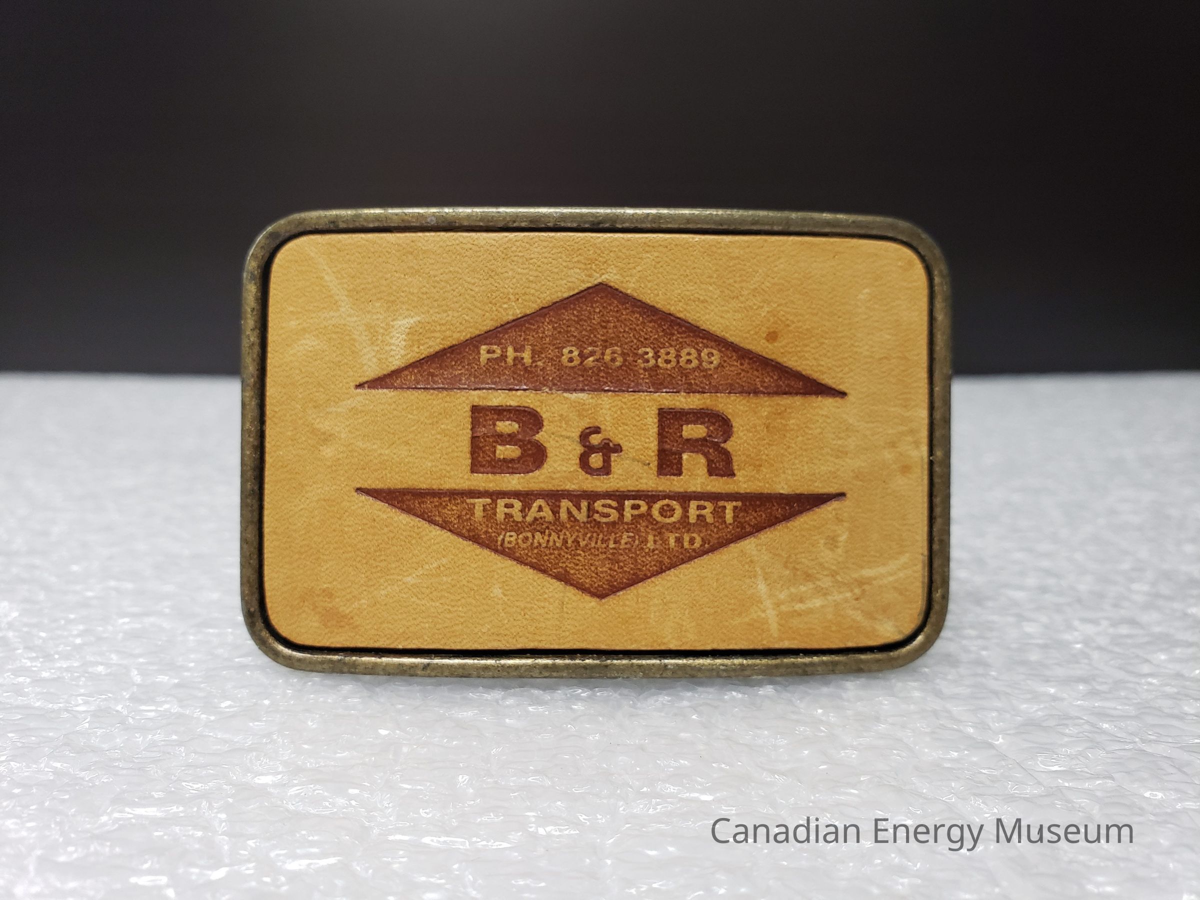 Old Description (Kelsey Steil, 4/7/2021): "B & R Transport (Bonnyville) Ltd. Brass belt buckle with leather face."Collection