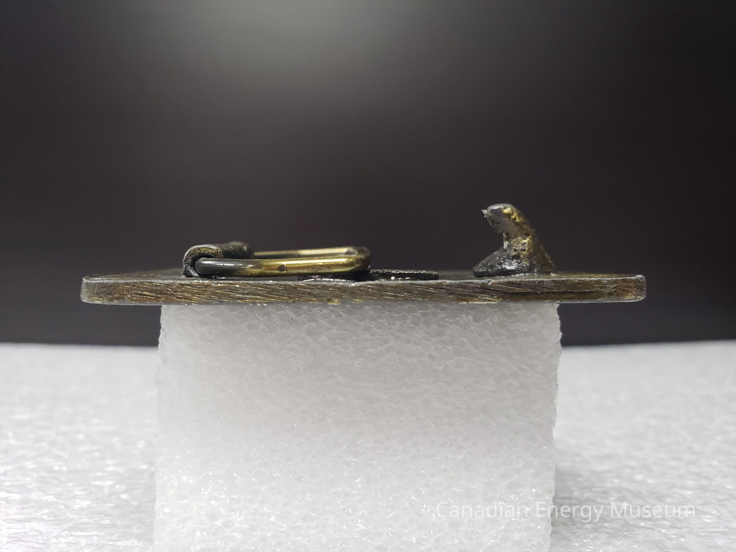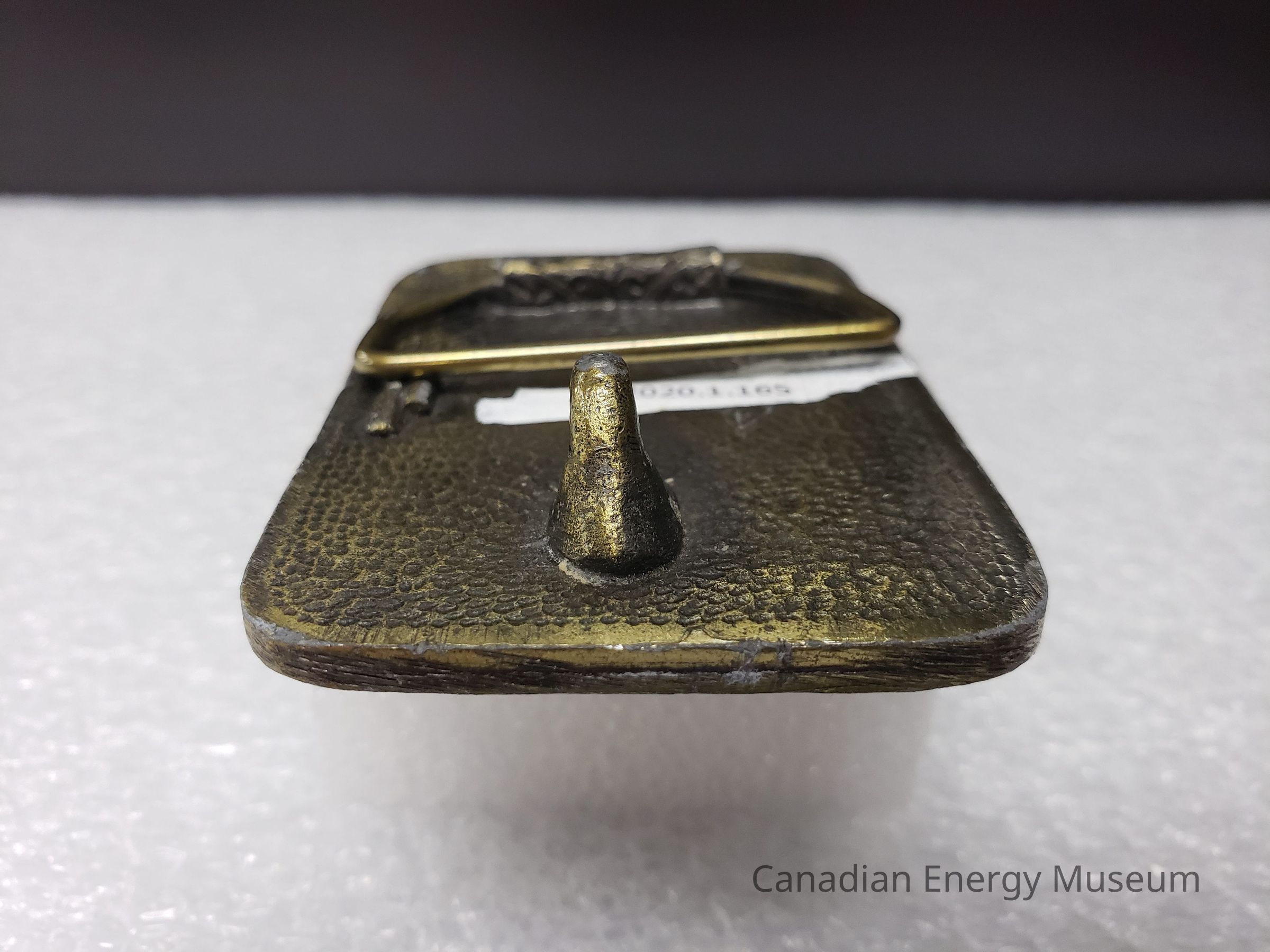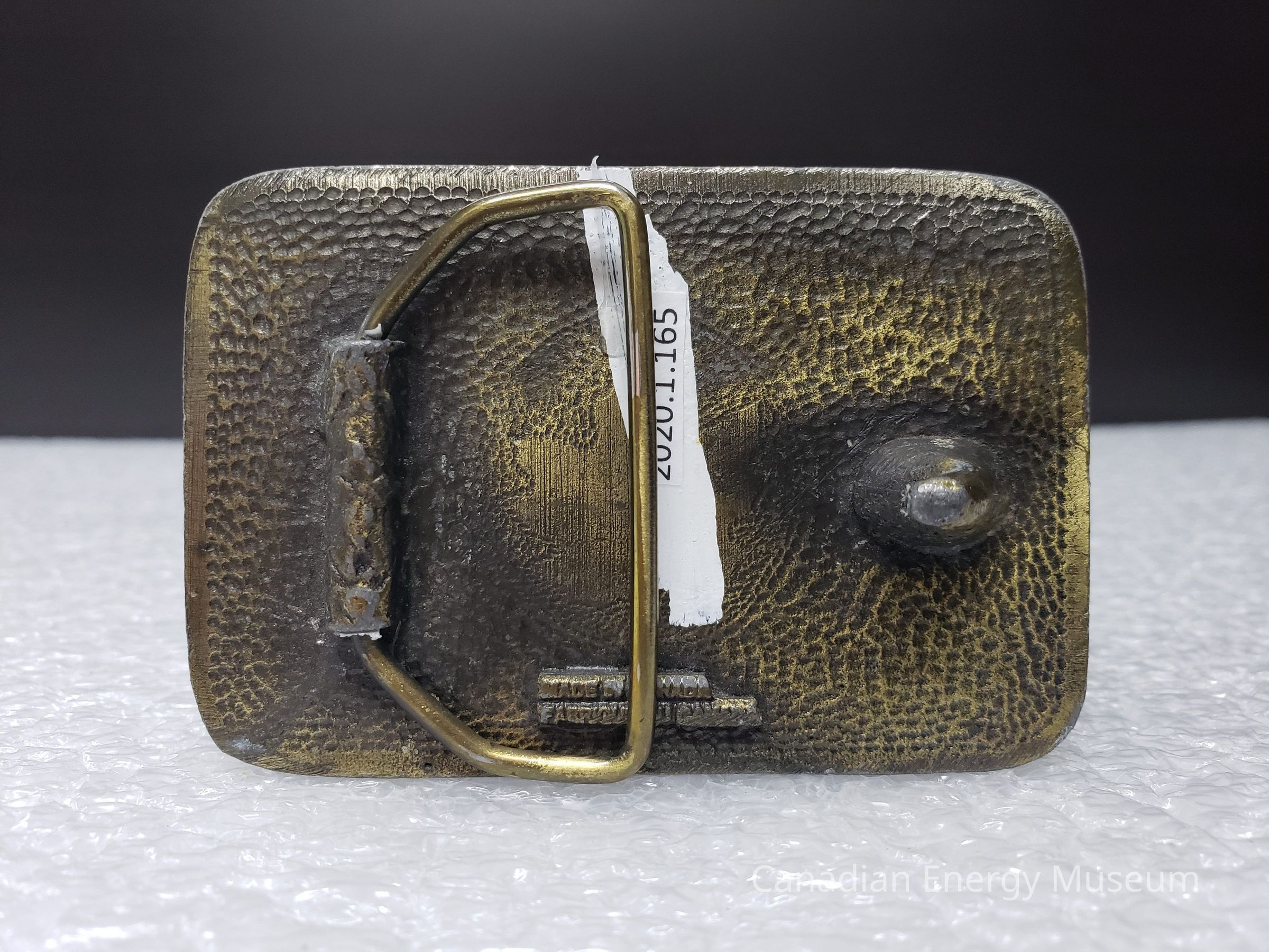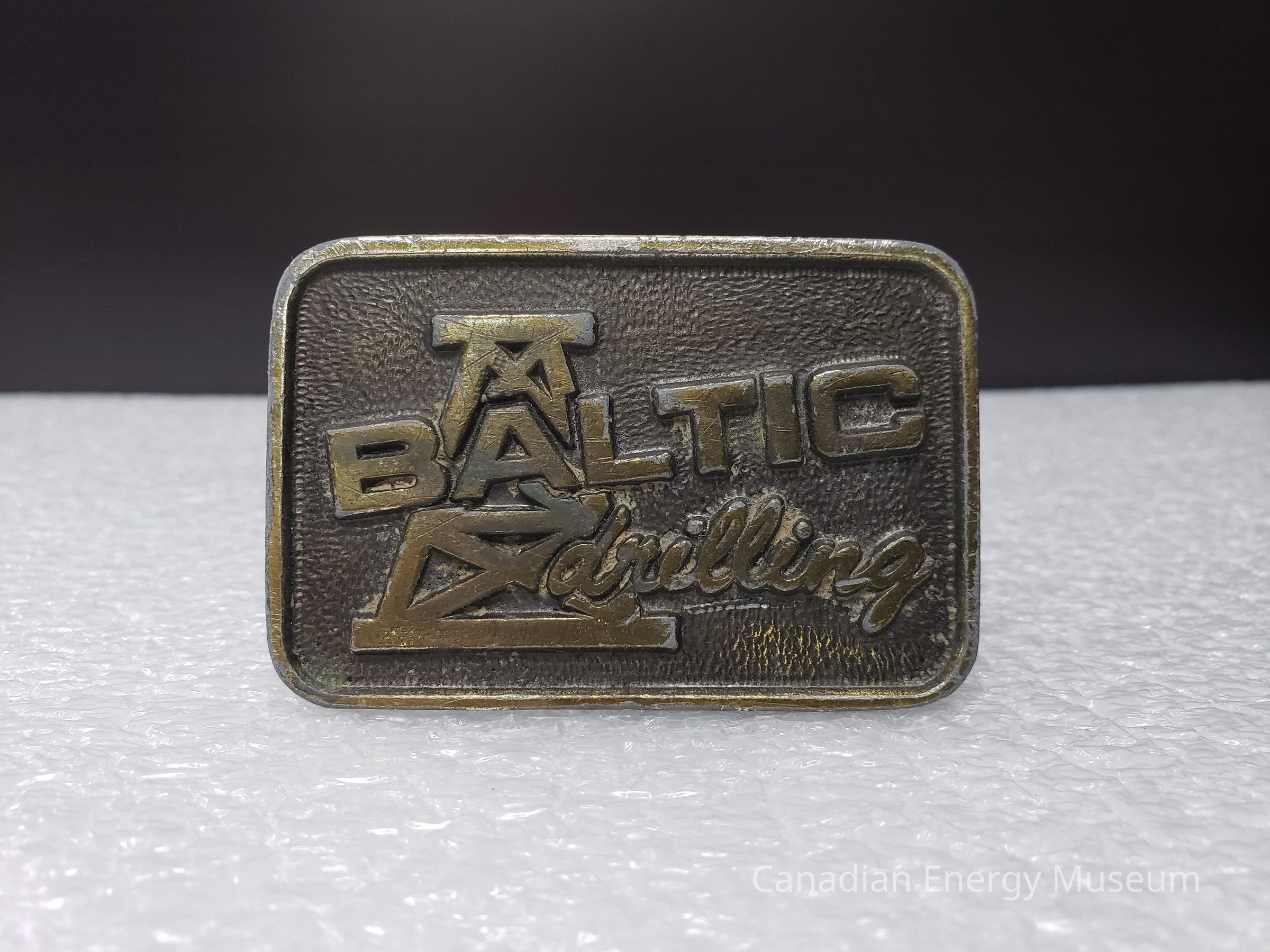 Old Description (Kelsey Dalrymple, 3 June 2020): Baltic Drilling. Rectangular brass belt buckle with derrick on left.Collection