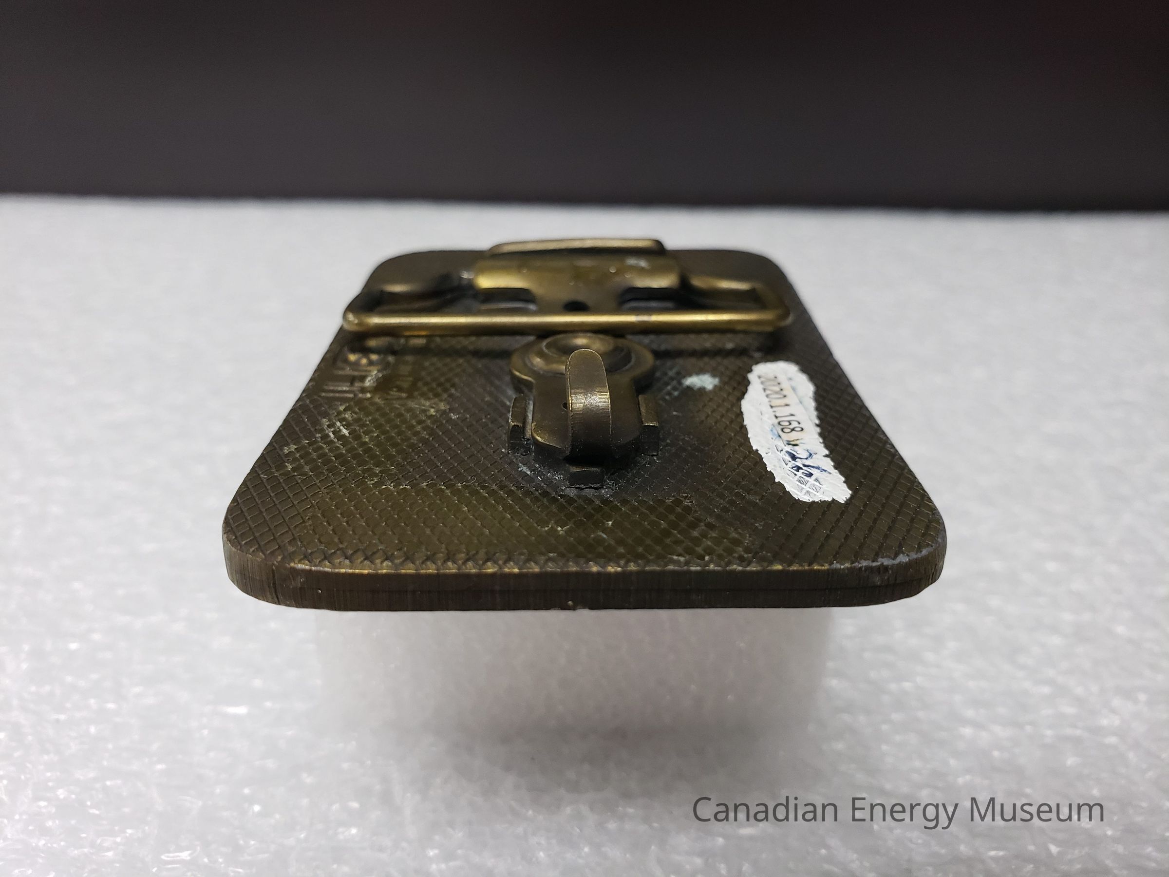 Old Description (Kelsey Dalrymple, 3 June 2020): Banister. Rectangular brass belt buckle. (Donated by Wayne Hartley).Collection