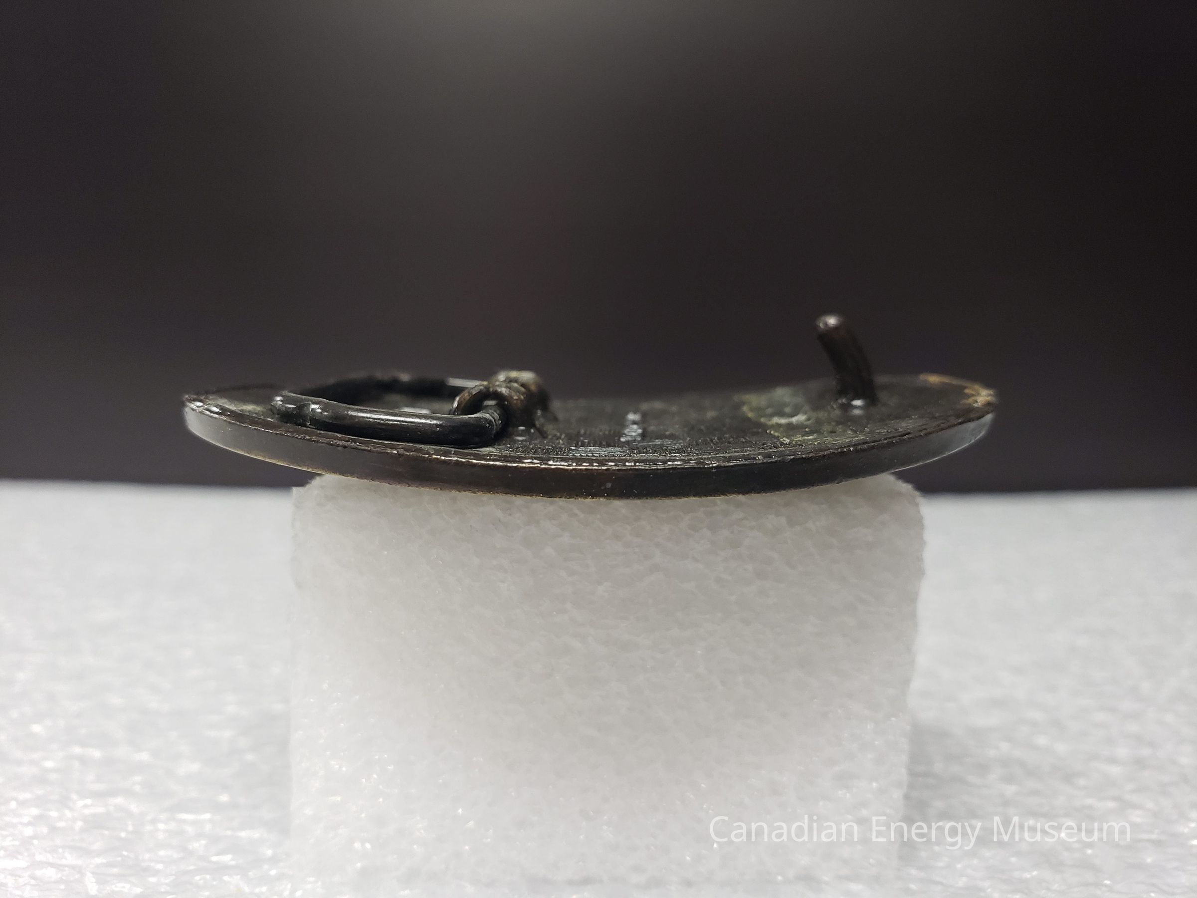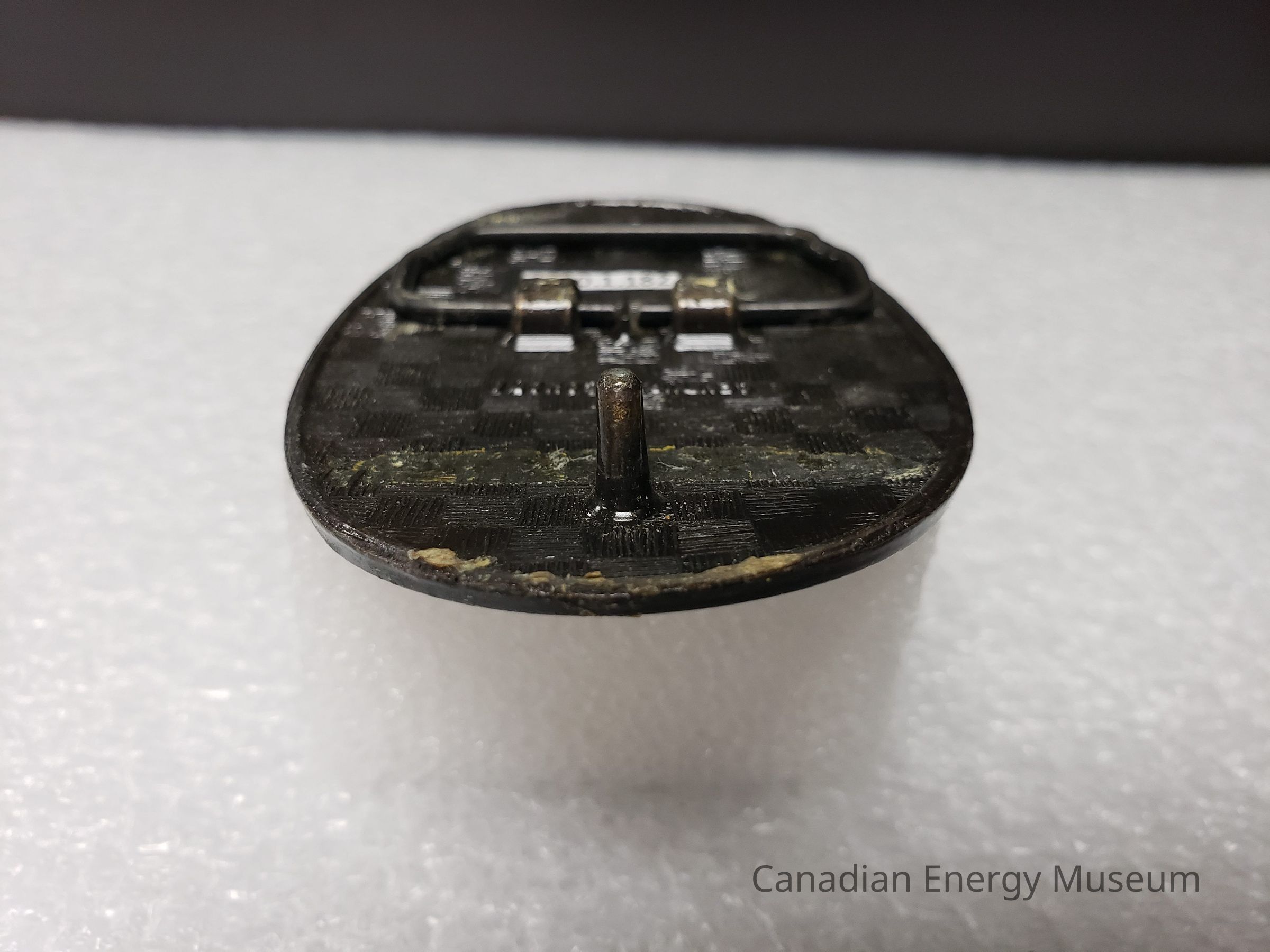 Old Description (Kelsey Dalrymple, 3 June 2020): Bear Tools. Oval brass belt buckle with bear on face (Donated by Gordon McQuaig).Collection
