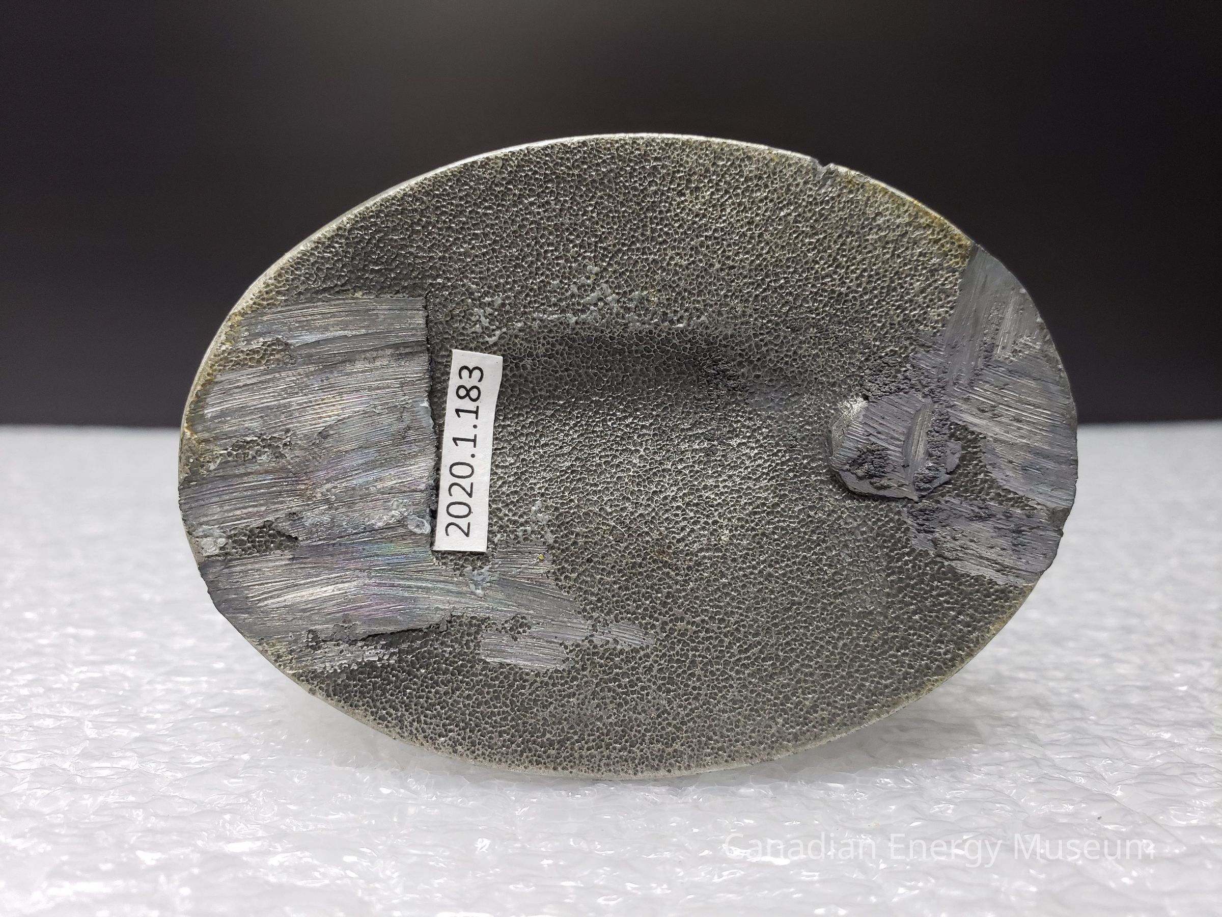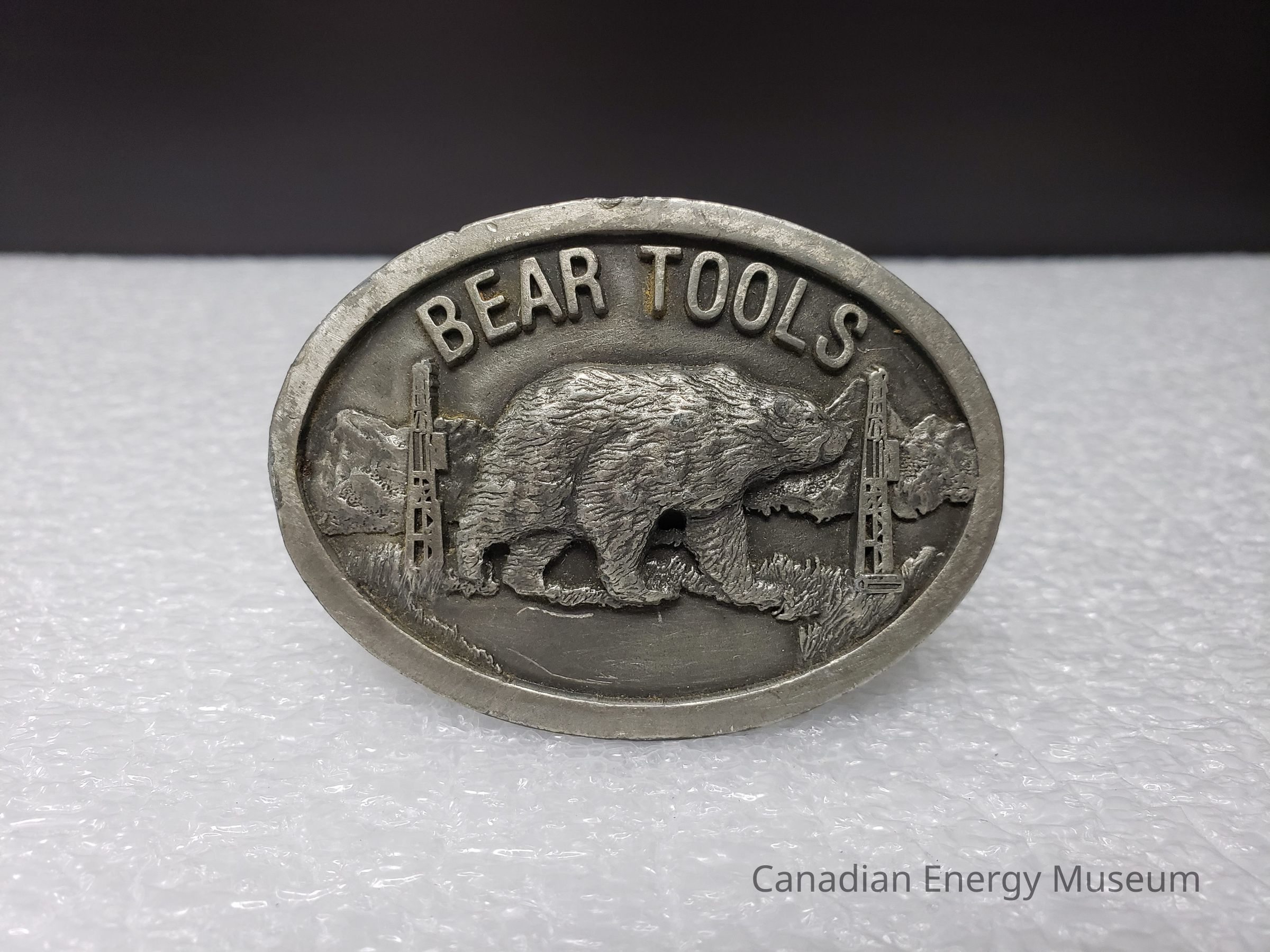 Old Description (Kelsey Dalrymple, 3 June 2020): Bear Tools. Oval solid pewter belt buckle with bear on face (Donated by Gordon McQuaig).Collection