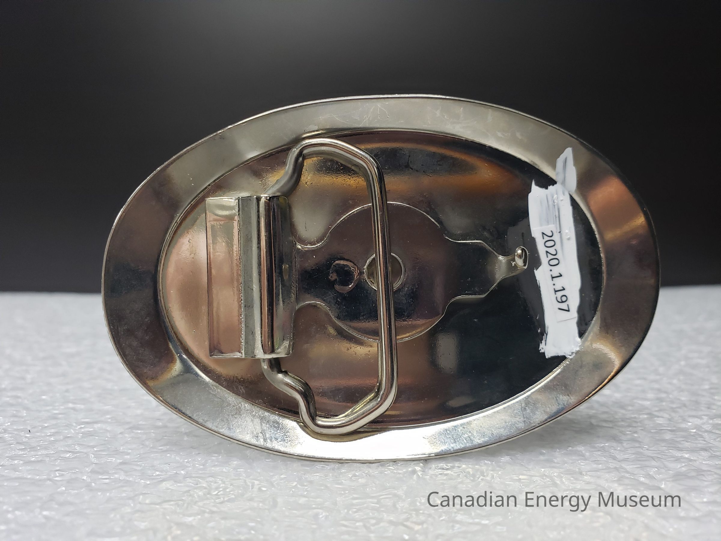 Belt Buckle, Accessory, Silver, Metal, Enamel, Blue, Red, Big John's Tong Service Ltd., Oil, Oil Field, Oil Industry, Oilfield, DrillingDescription