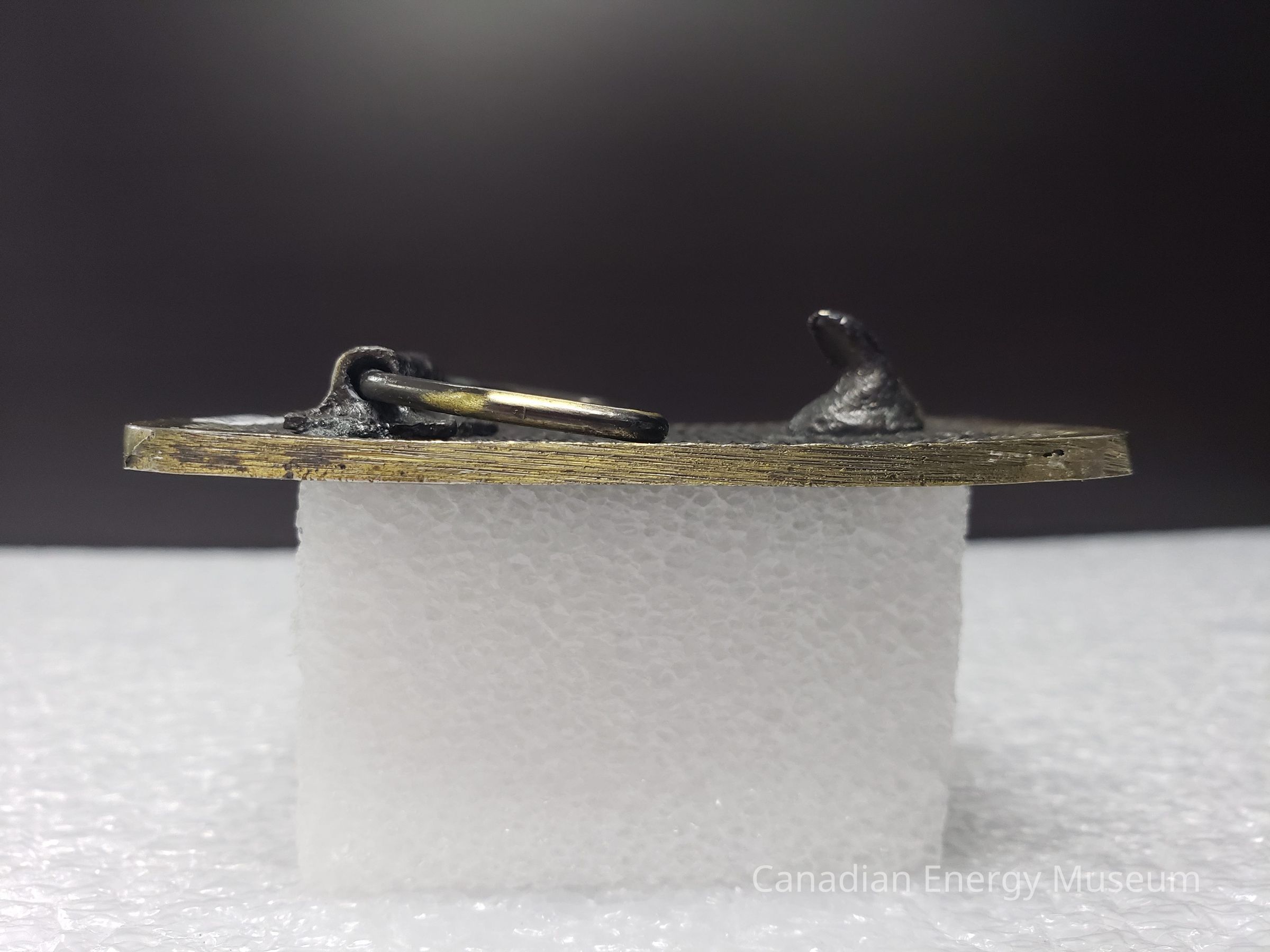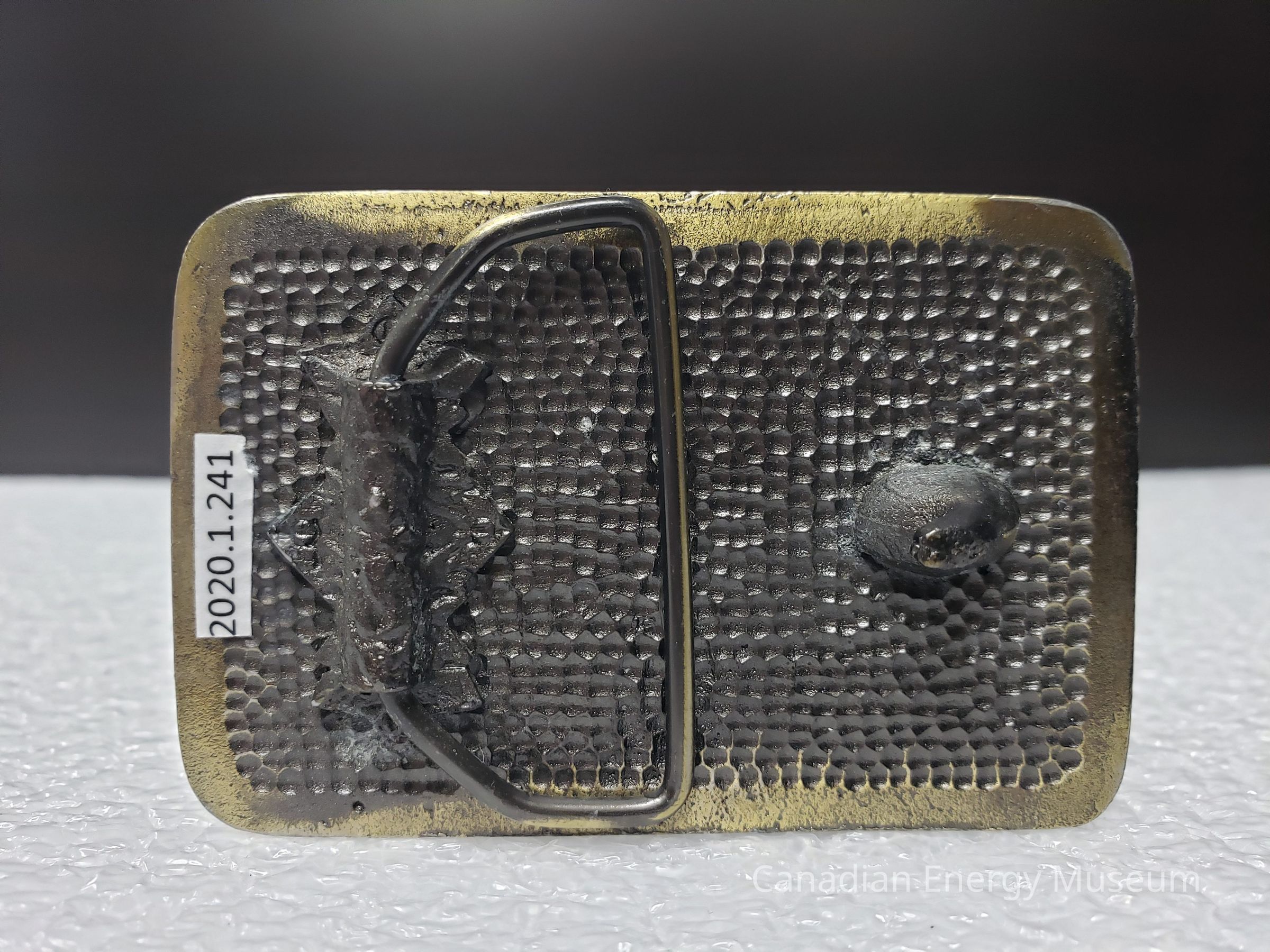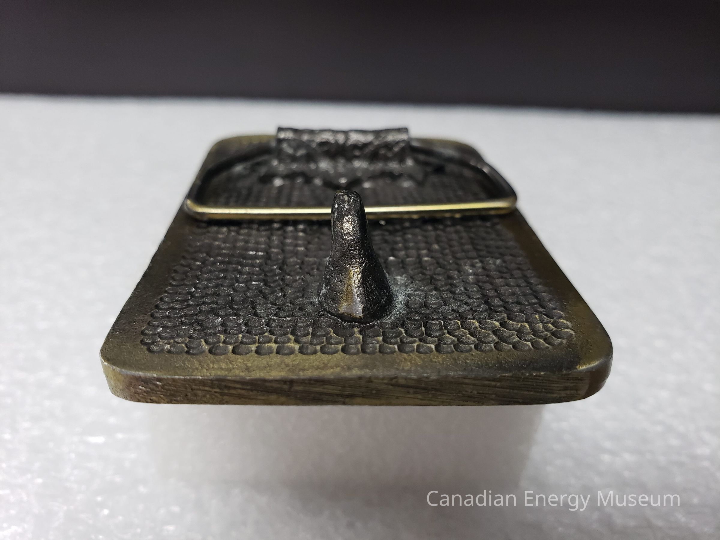 Old Description (Kelsey Dalrymple, 3 June 2020):Caine Oil Tools. Brass rectangular belt buckle, rig on the right.Collection