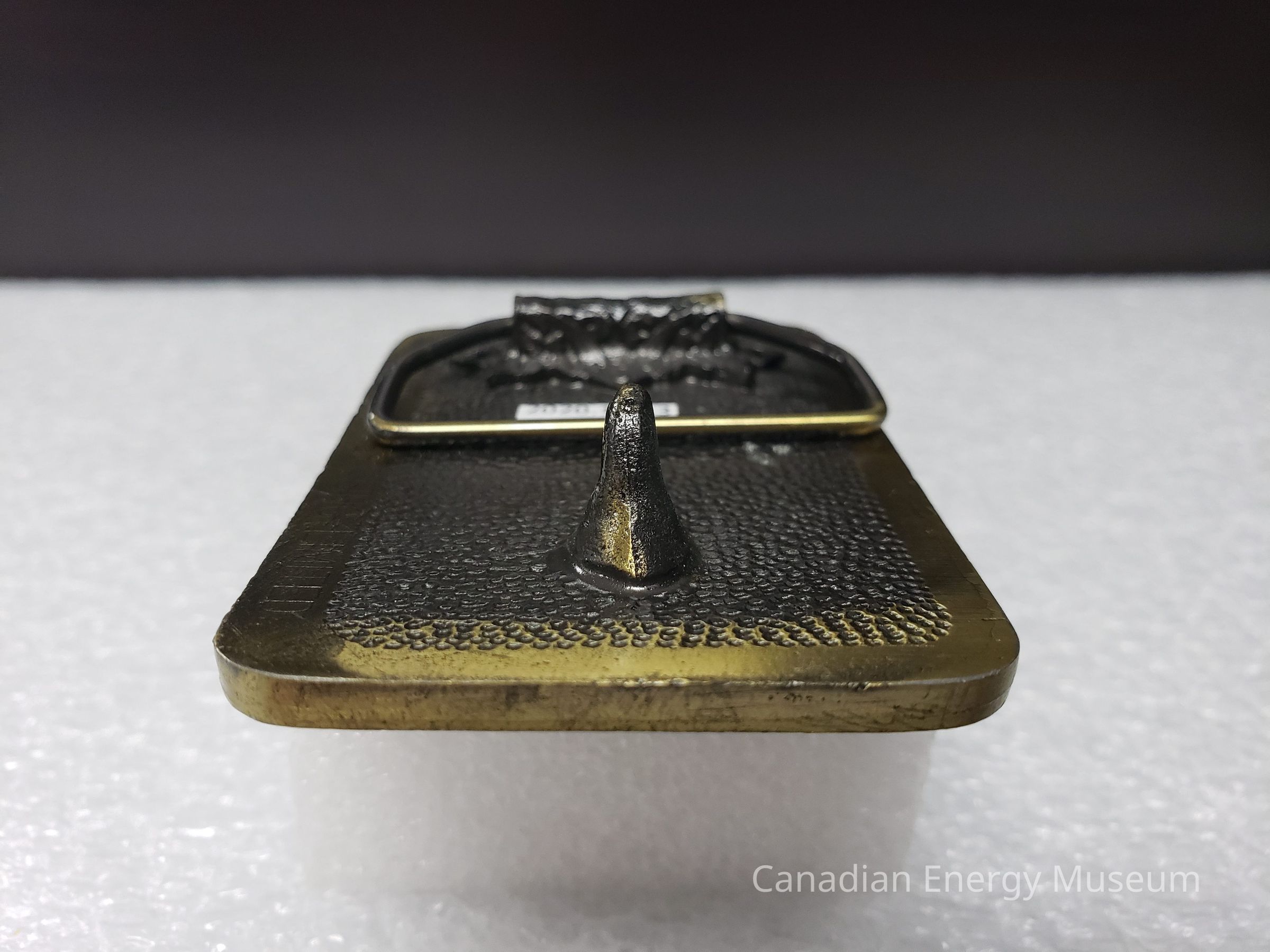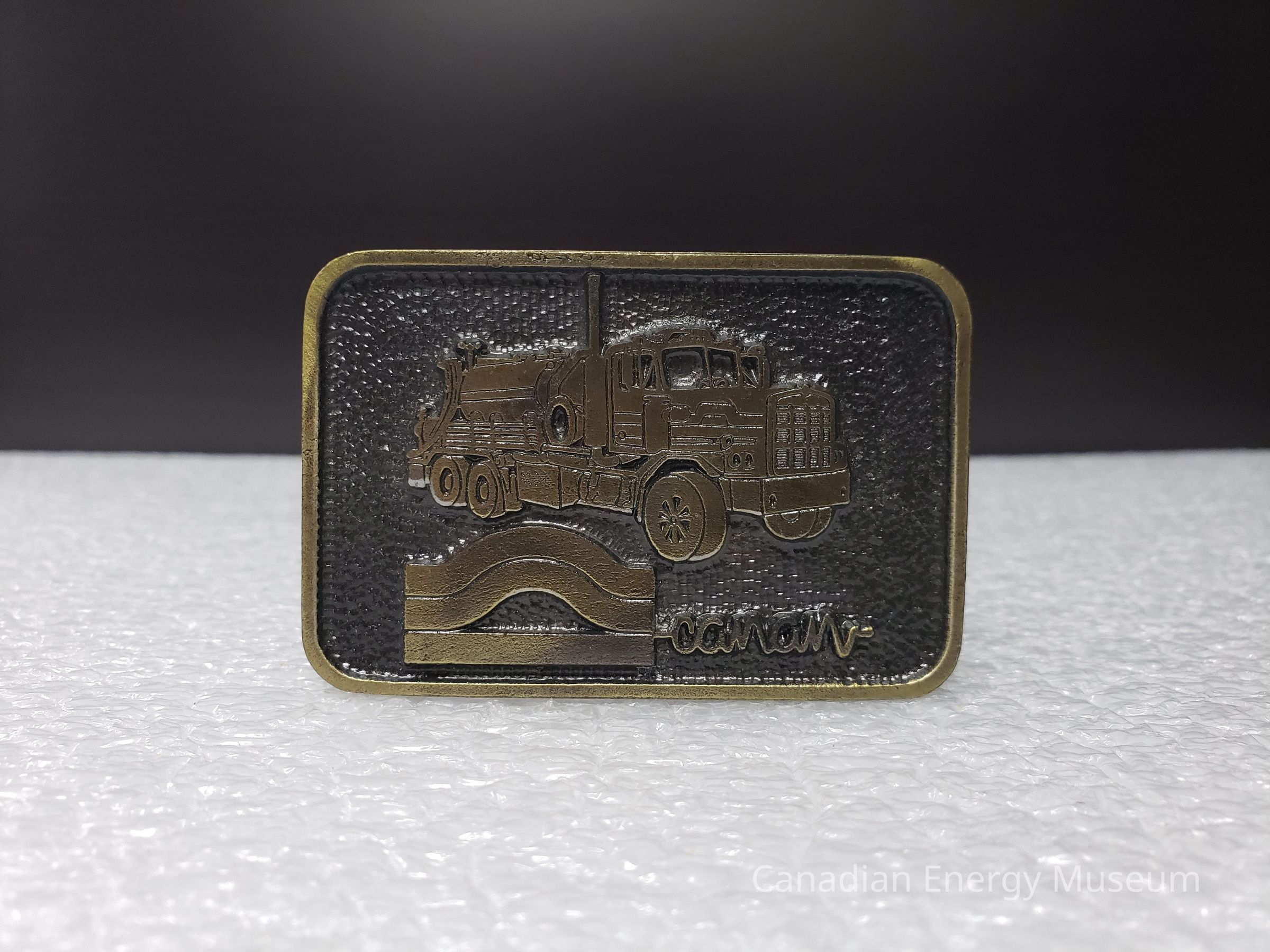 Old Description (Kelsey Dalrymple, 3 June 2020):Canan. Rectangular brass belt buckle. Truck in centre.Collection