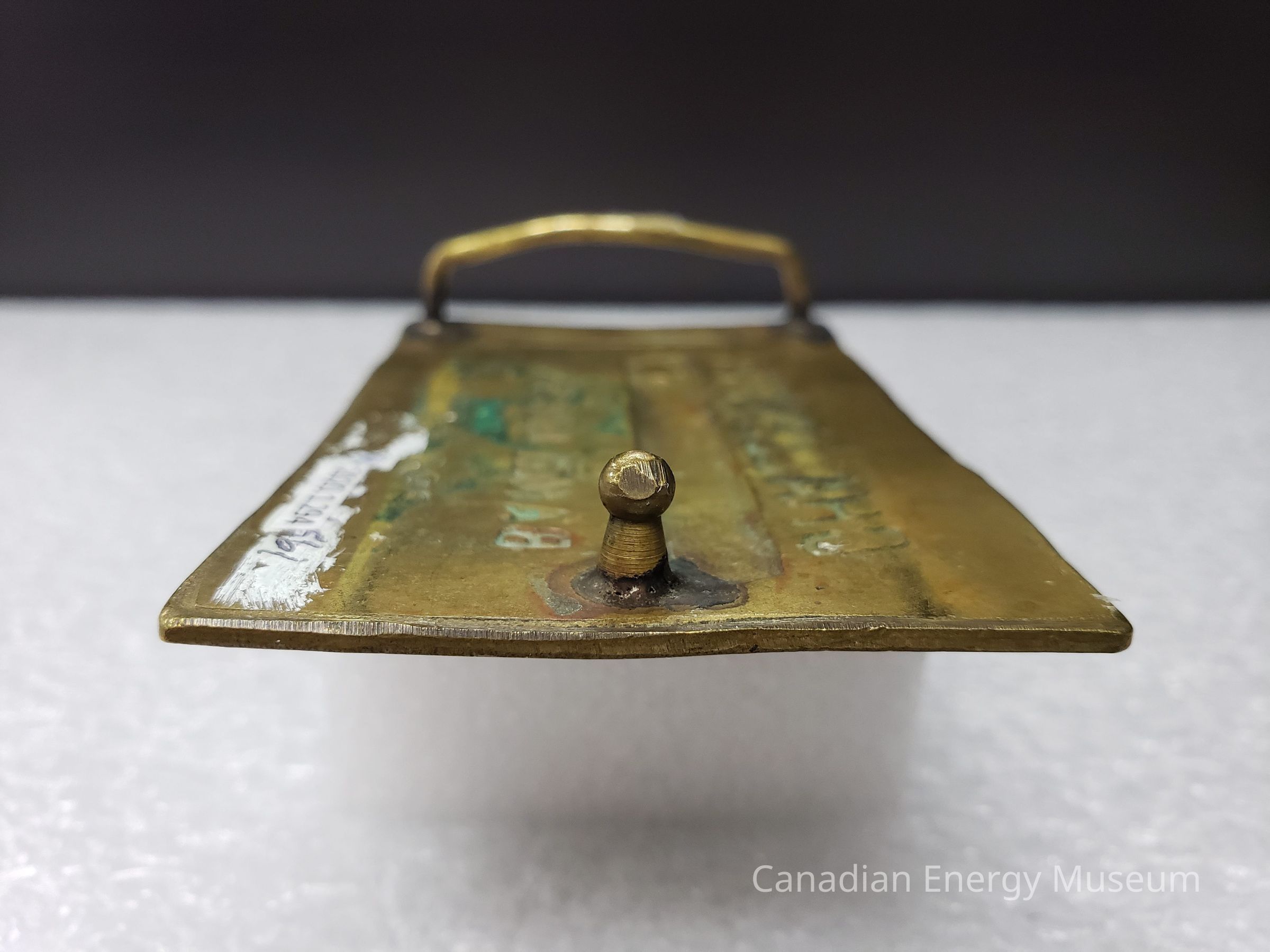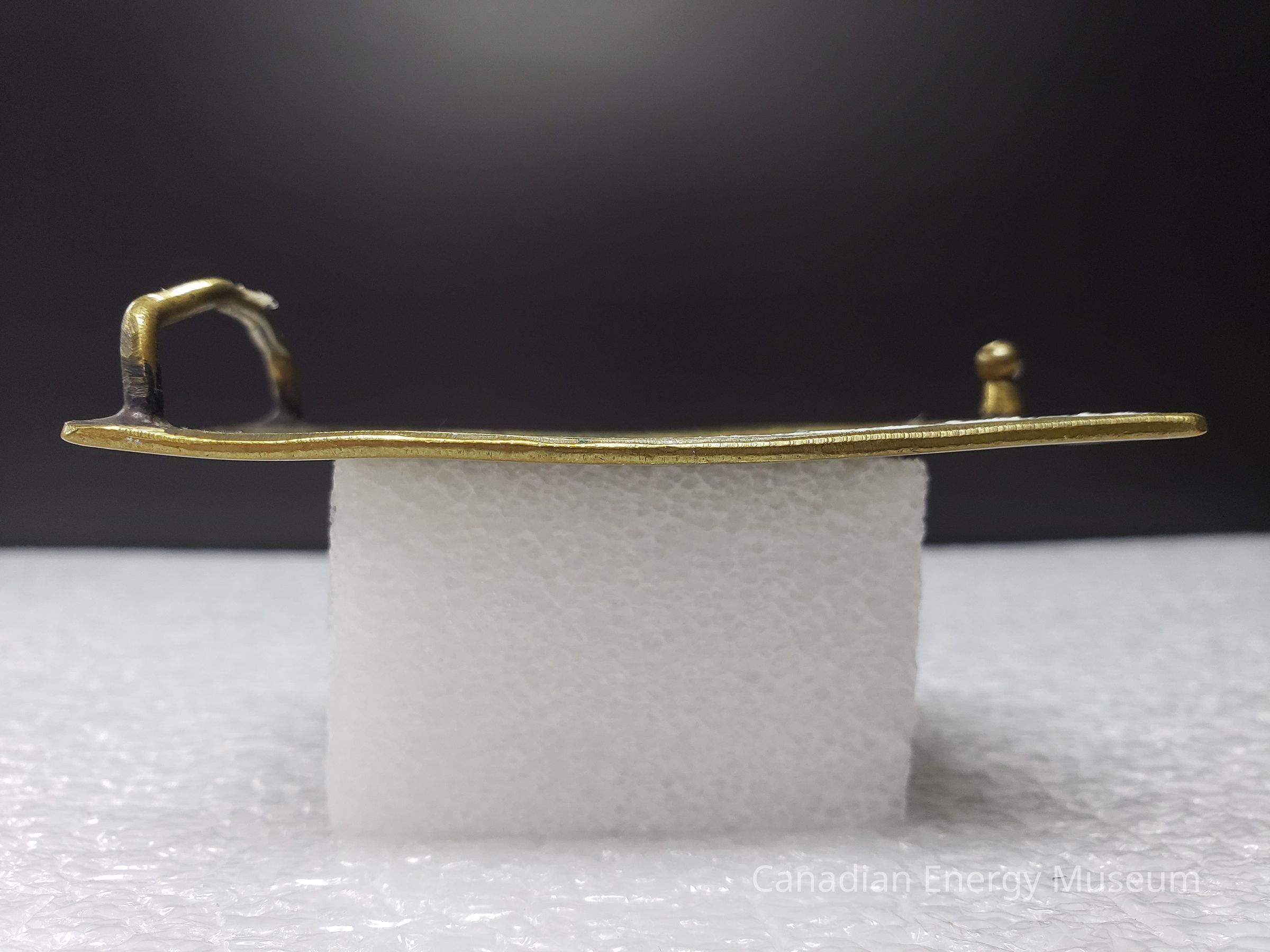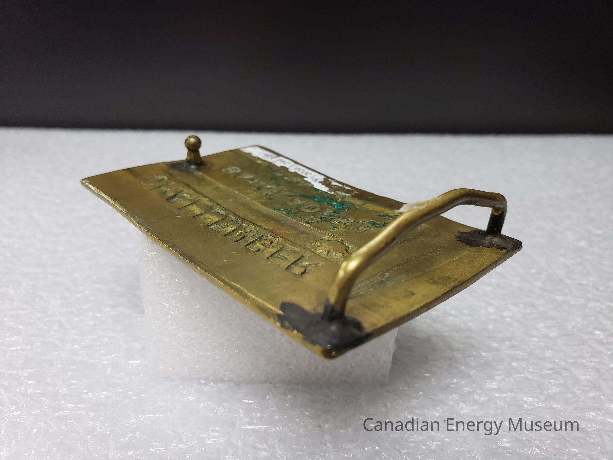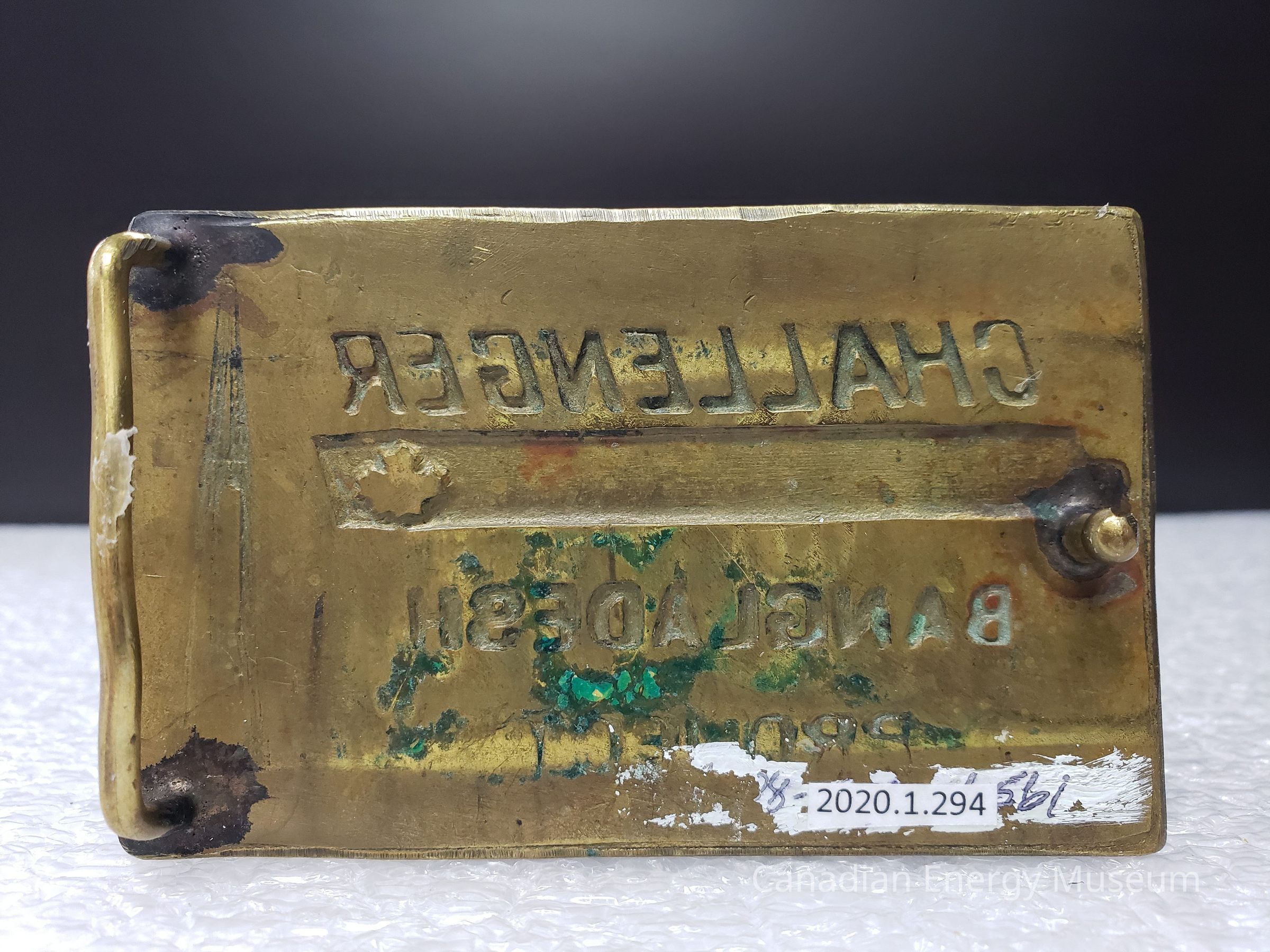 Old Description (Kelsey Dalrymple, 3 June 2020): Challenger Drilling. Rectangular brass belt buckle. Bangladesh Project.Collection