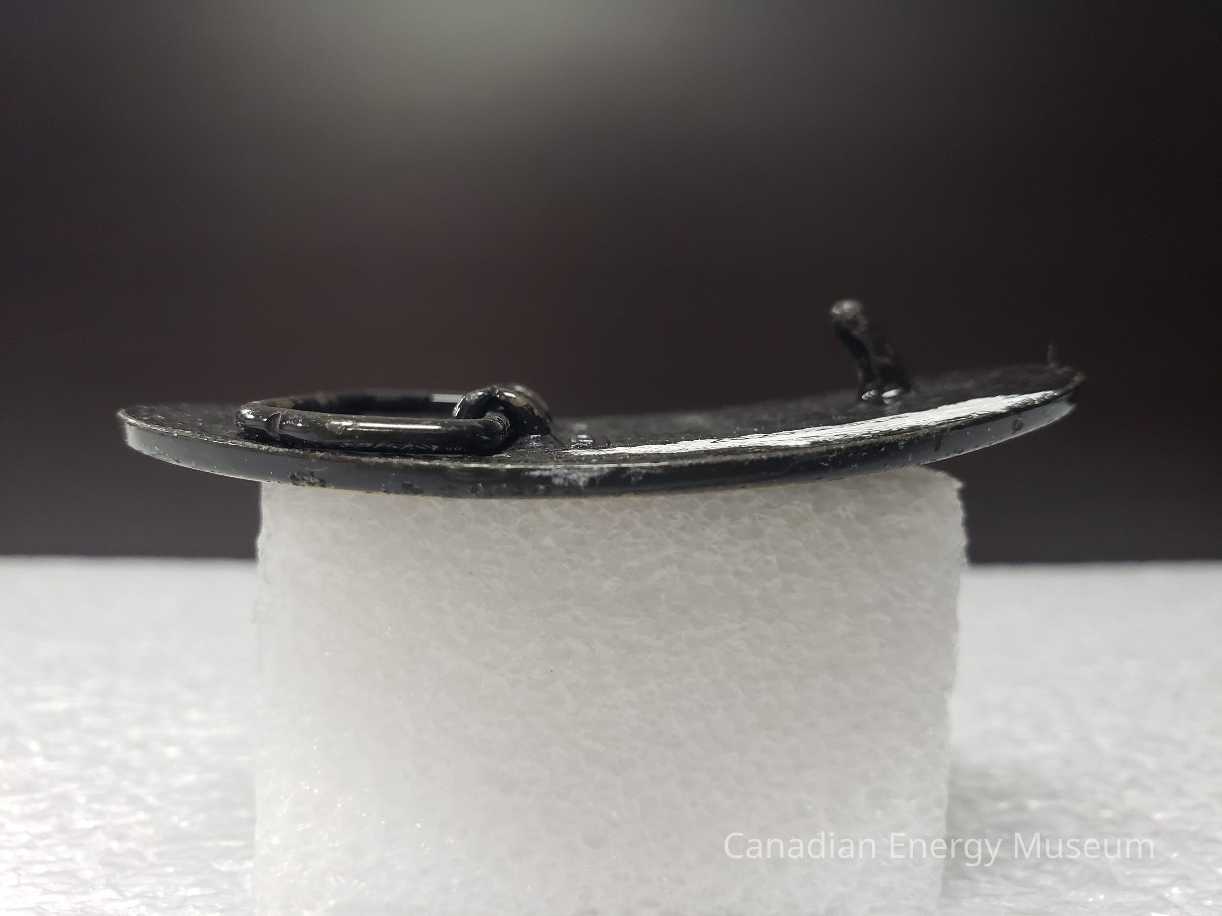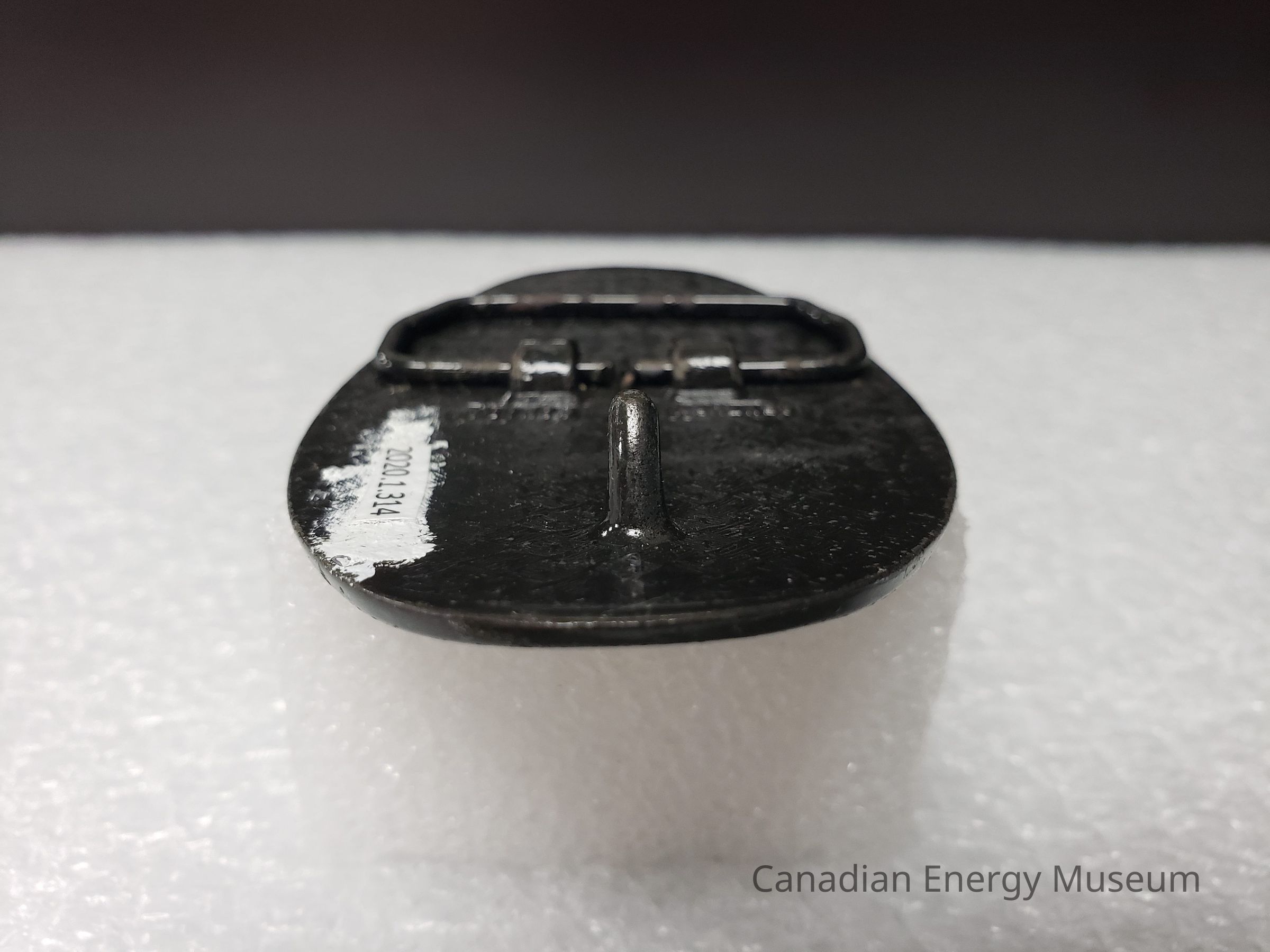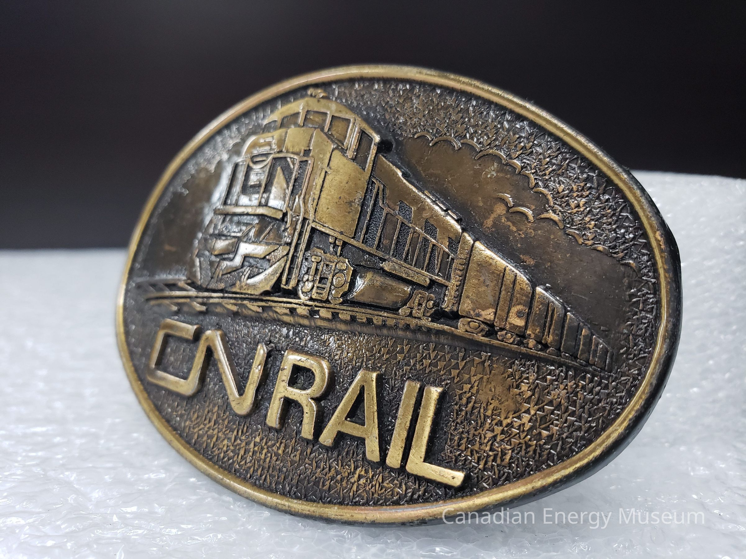 Old Description (Kelsey Dalrymple, 6/3/2020): CN Rail. Oval brass belt buckle with train on face.Collection