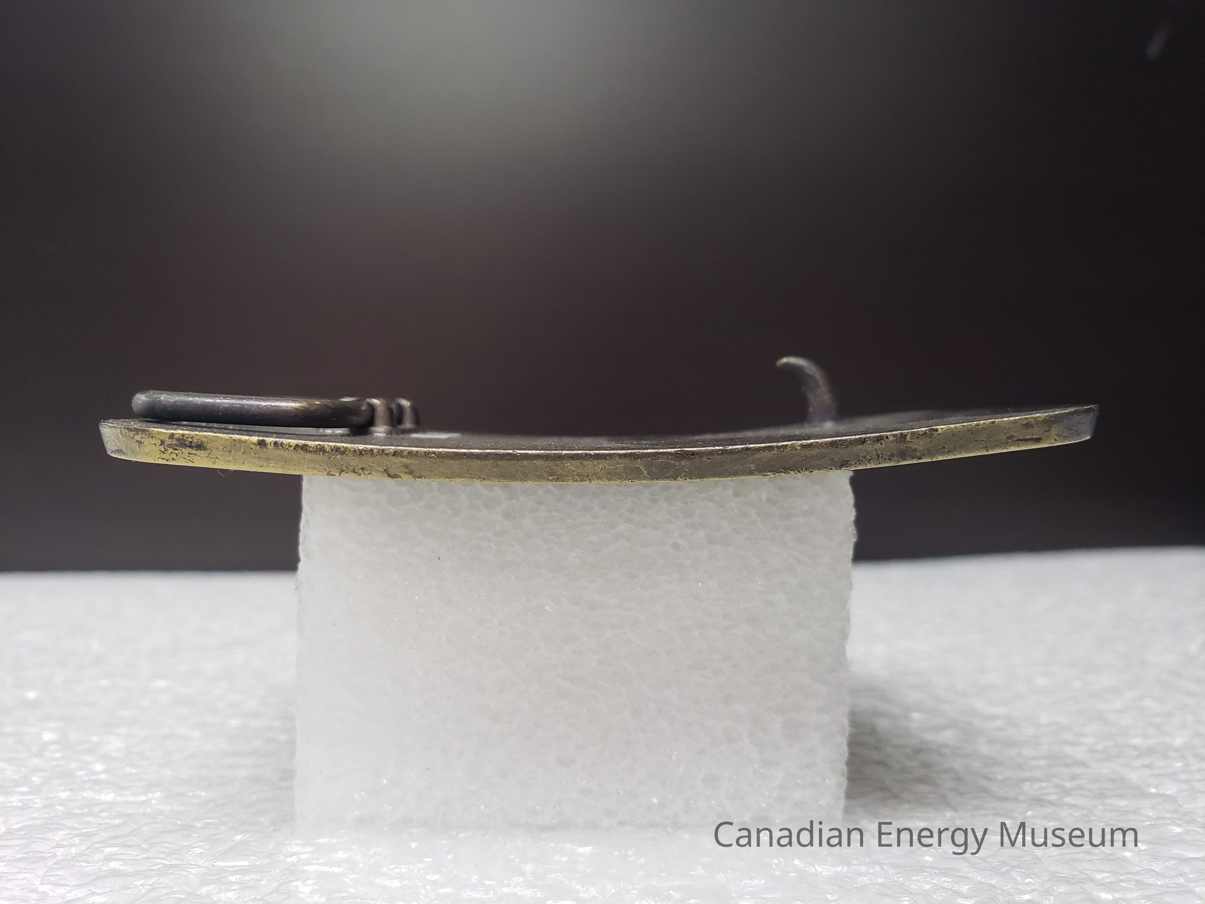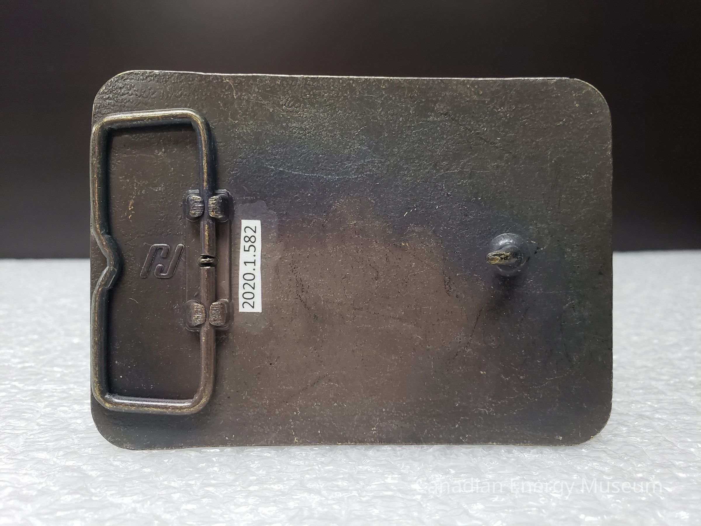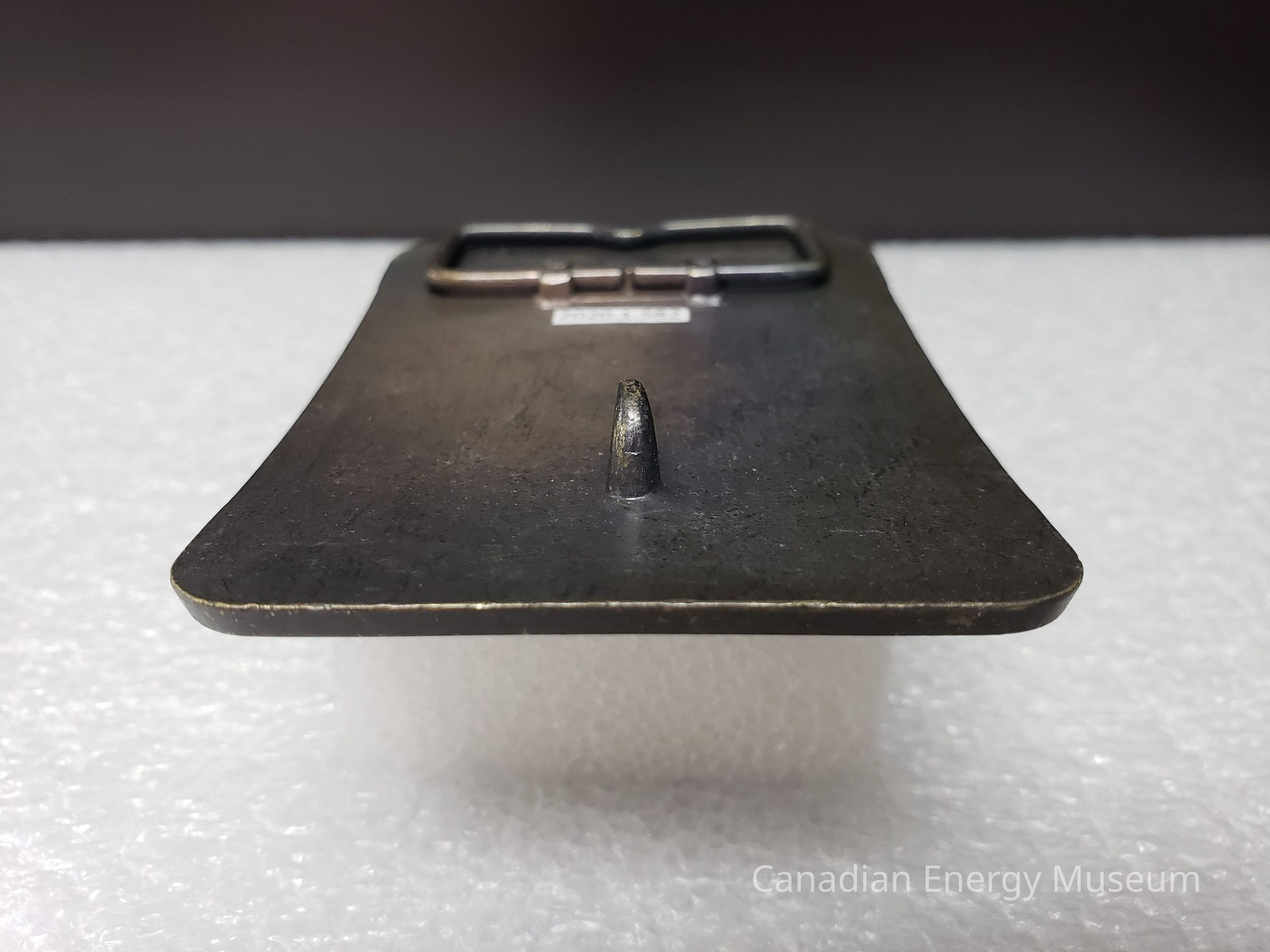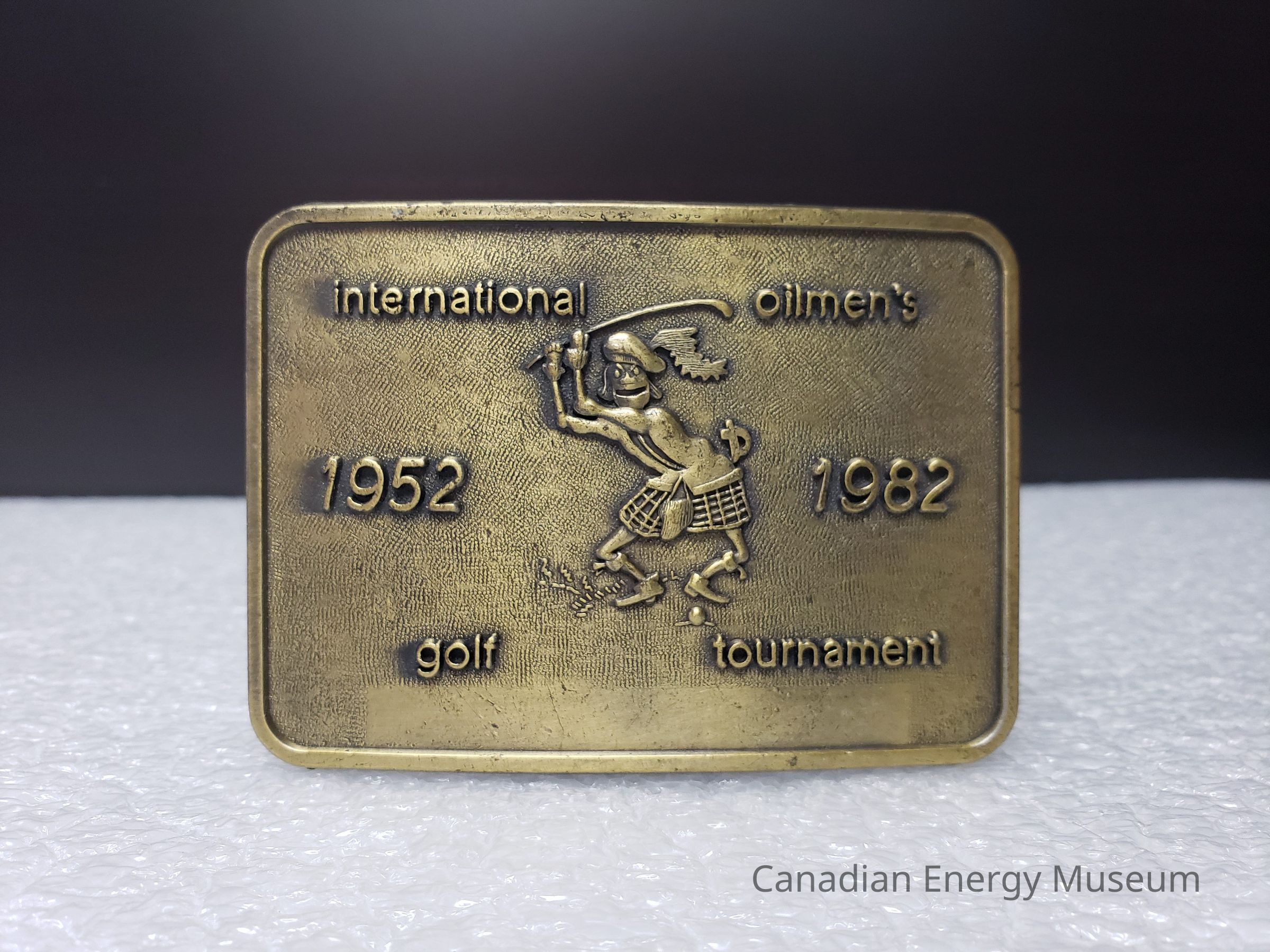 Old Description (Kelsey Dalrymple, 3 June 2020): International Oilmen's Golf Tournament. 1952-1982. Rectangular brass belt buckle with man in kilt golfing in centre.Collection
