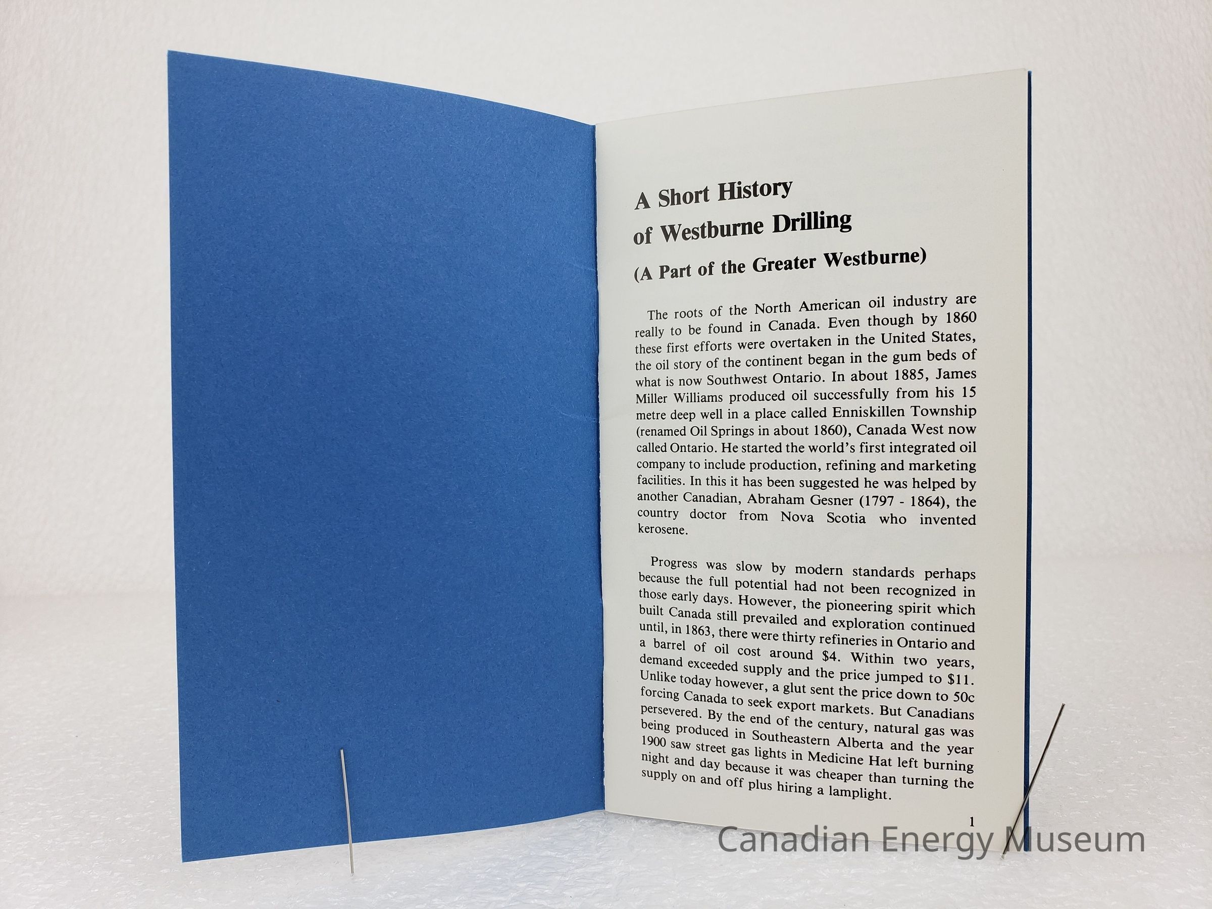 [Booklet] "A Short History of Westburne Drilling", Blue Gold-Foil, c.1980sEntry/Object ID