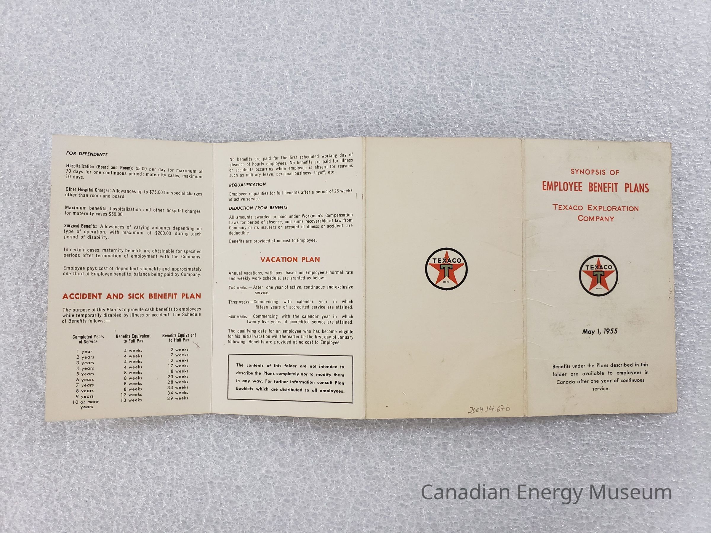 [Booklet] "Employee Benefit Plans", Texaco, 1955Entry/Object ID