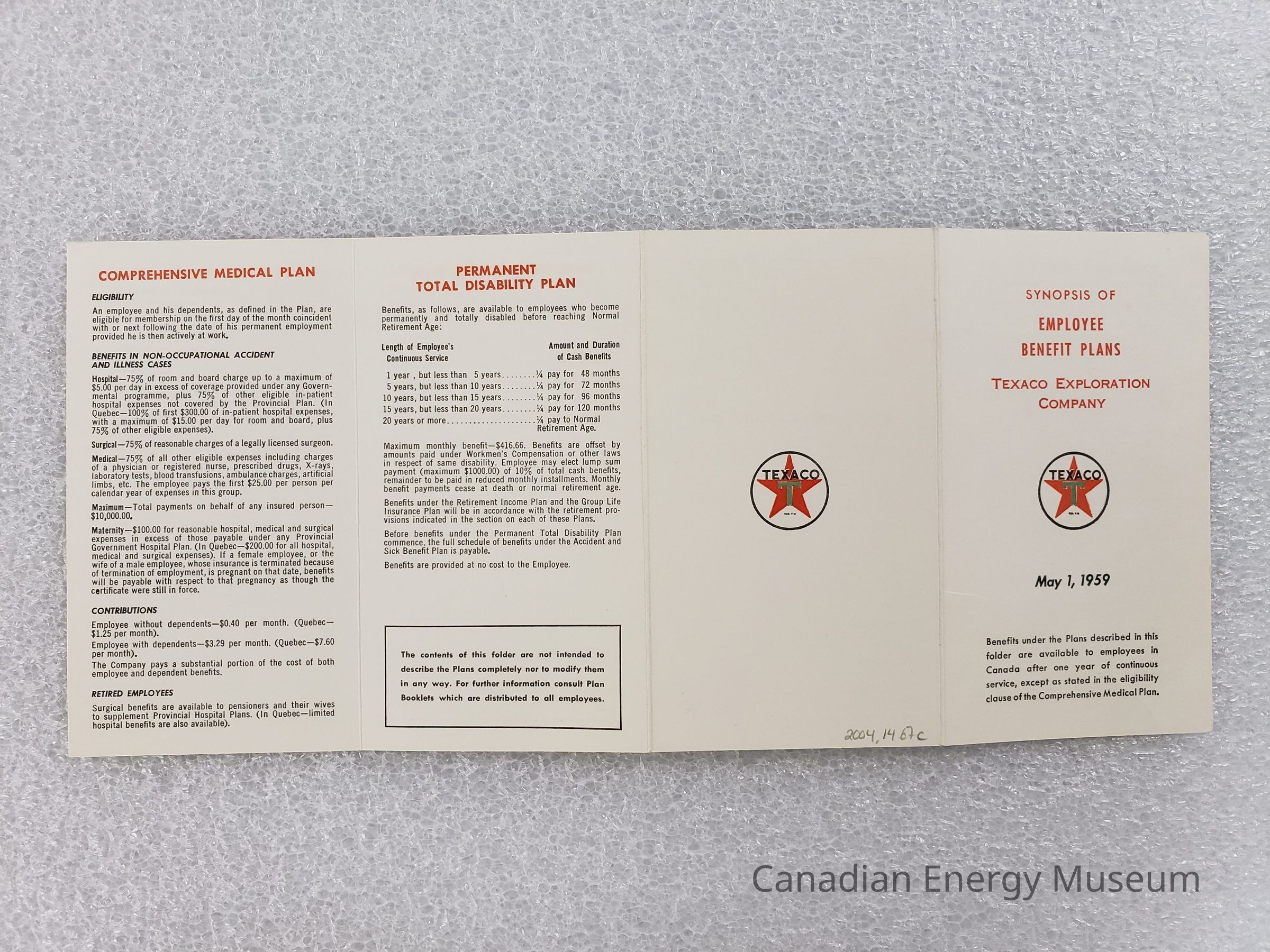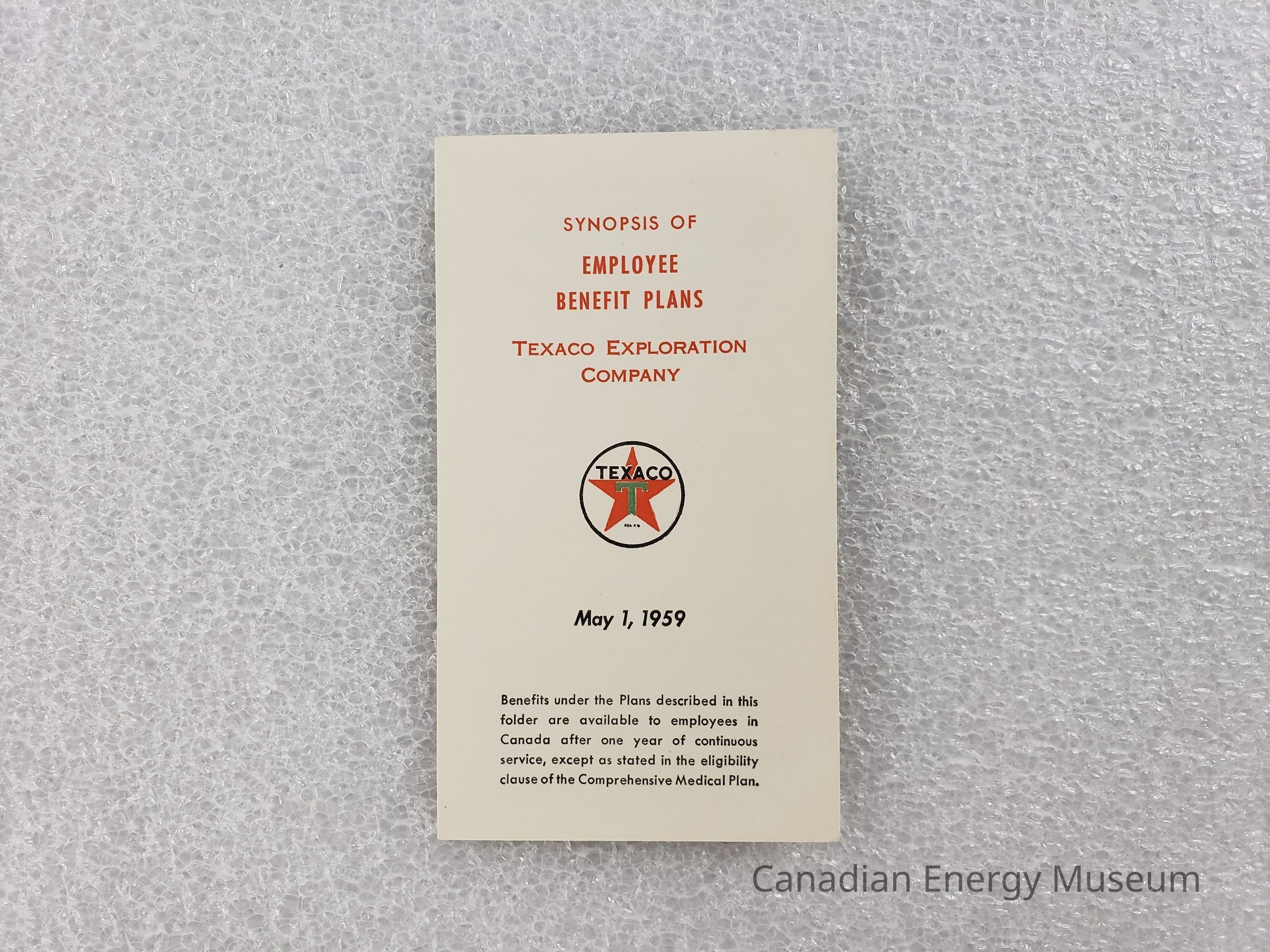 [Booklet] "Employee Benefit Plans", Texaco, 1959Entry/Object ID