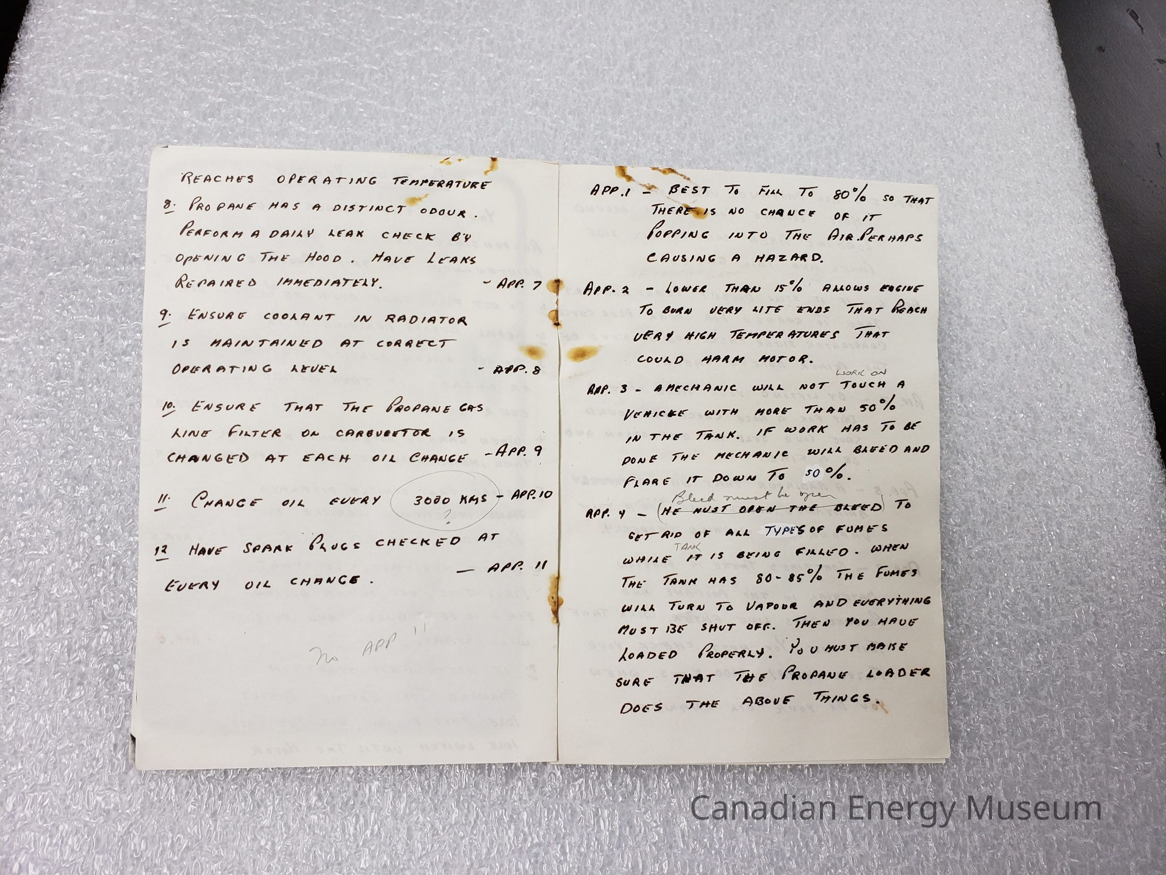 Handwritten and made booklet about working with propane vehicles.