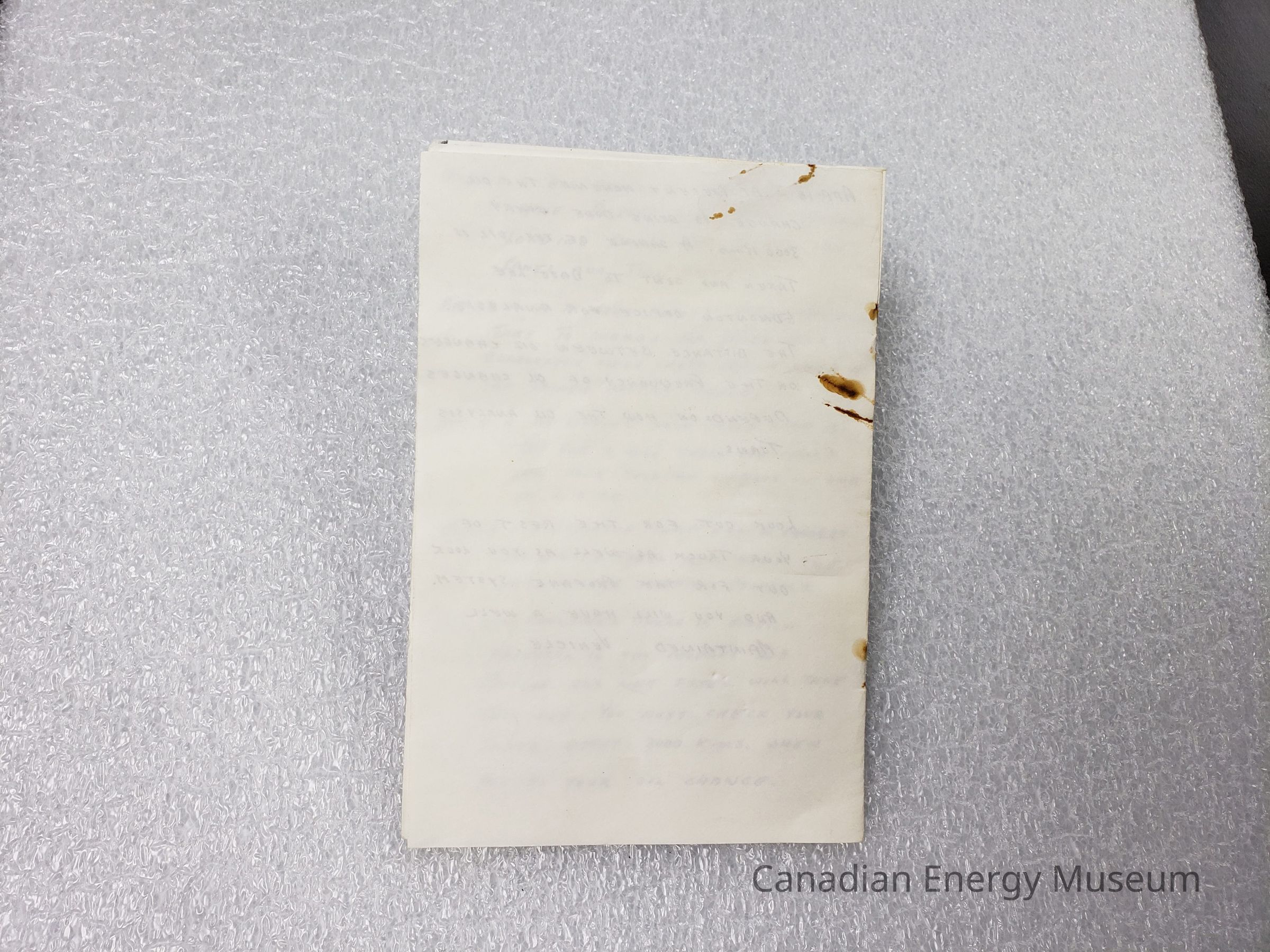 Rust stains on paper from staples.Materials