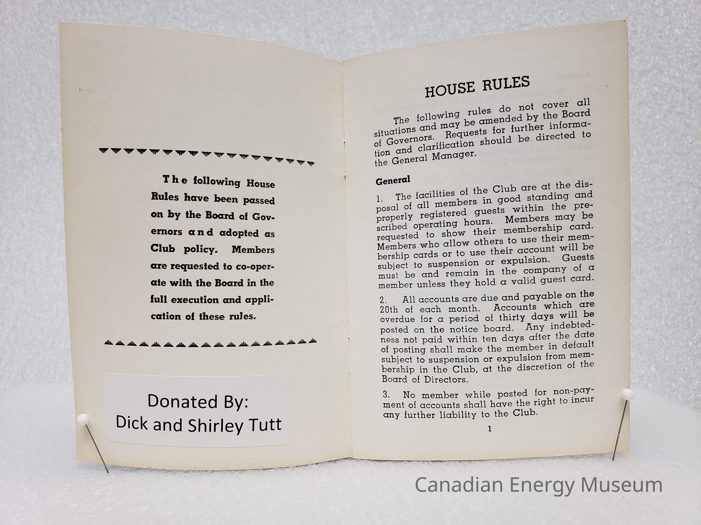 [Booklet] House Rules, Calgary Petroleum Club, Green, August, 1978Entry/Object ID