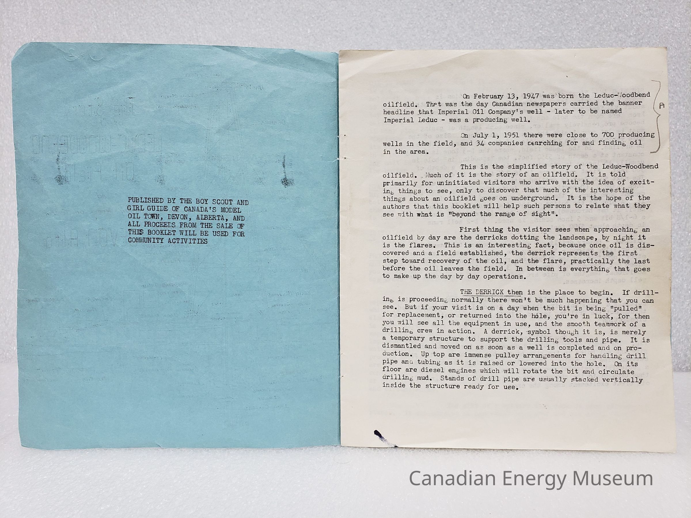 [Booklet] "The Story of the Leduc-Woodband Oil Field and Canada's Model Oil Town Devon Alta", Blue, c.1980s-1990sEntry/Object ID