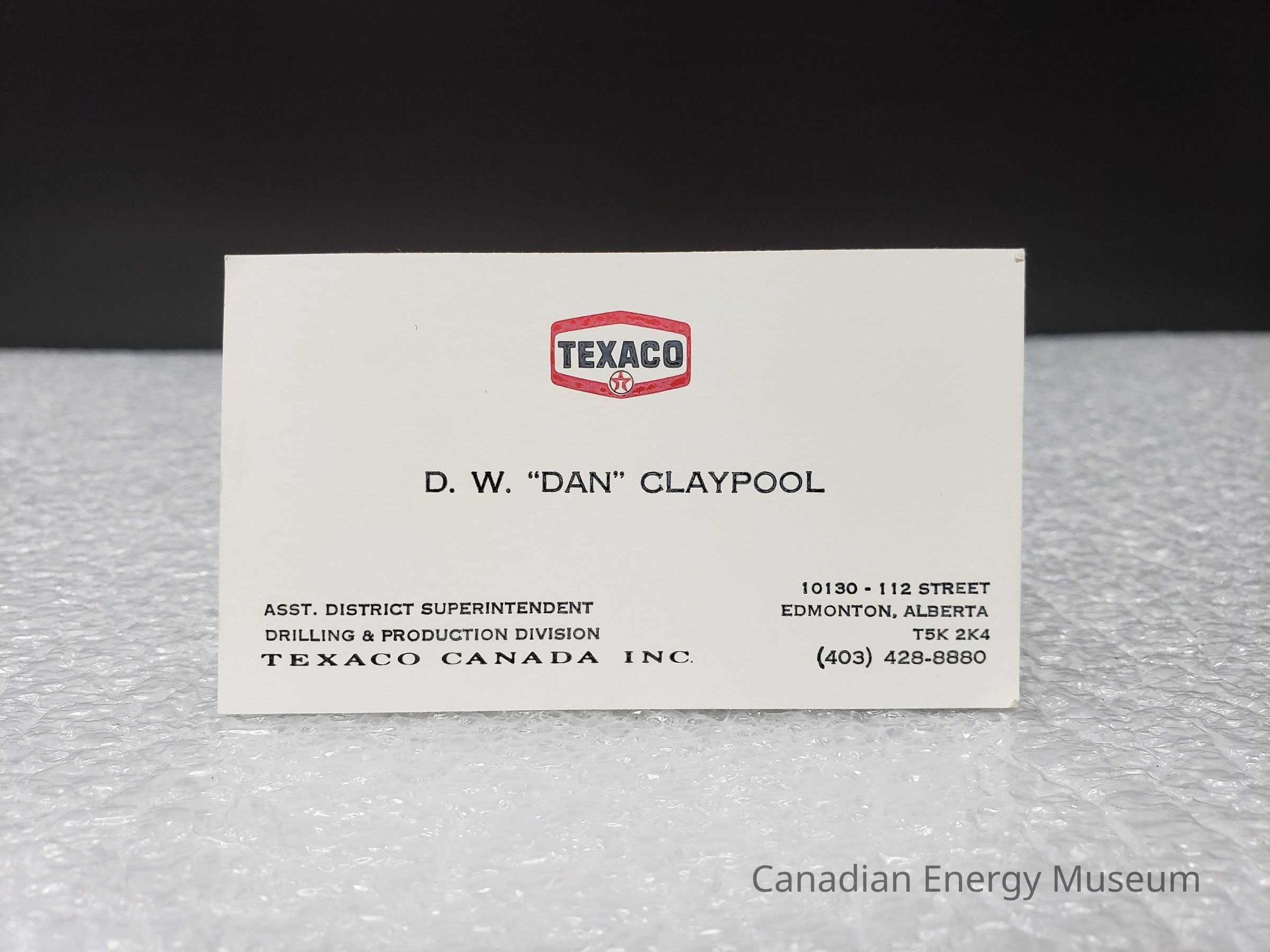 [Business Card] Texaco Canada - D.W. "Dan" Claypool, WhiteEntry/Object ID