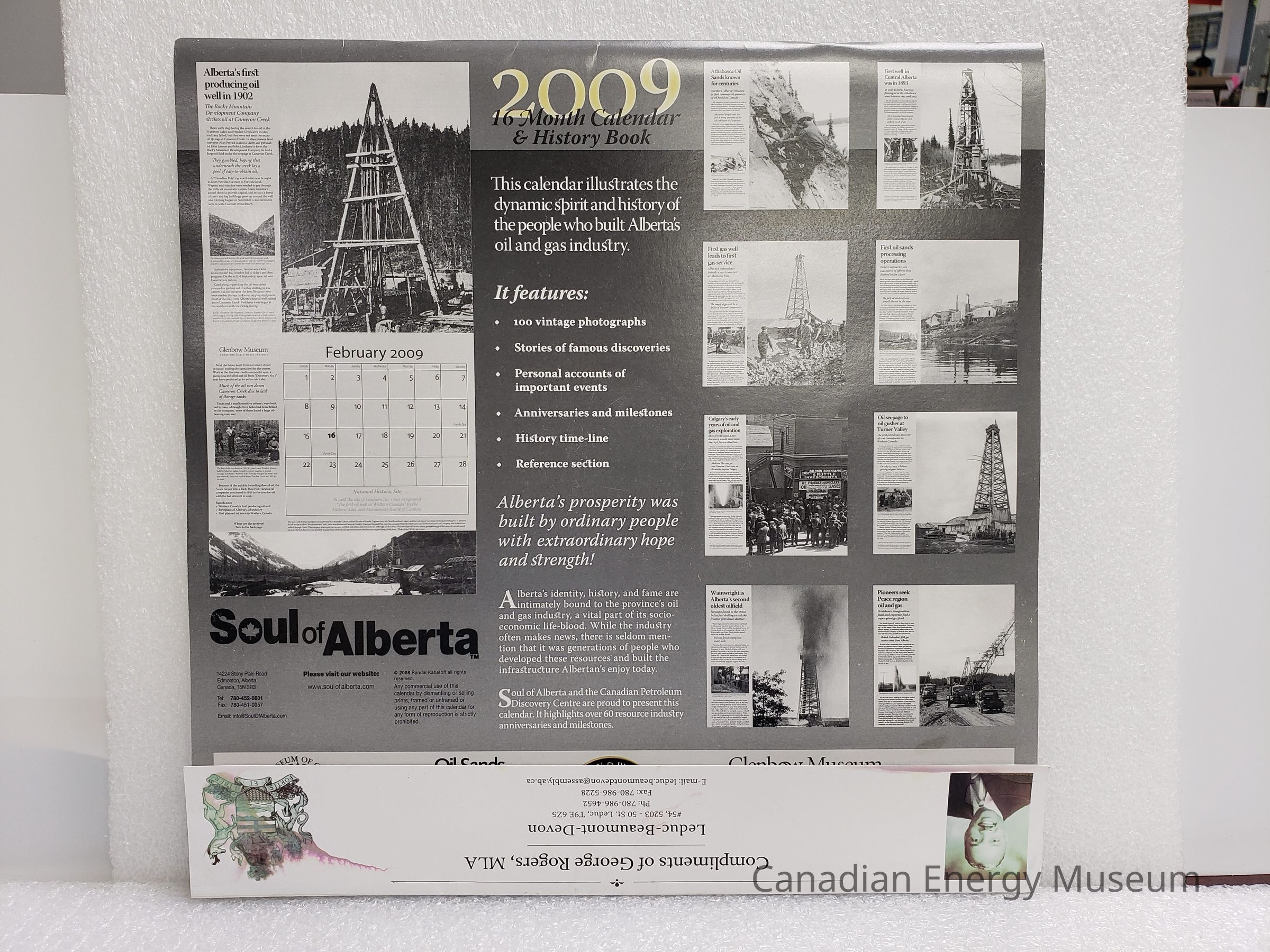 A wall calendar themed around Albertan oil history, for 2009.Collection