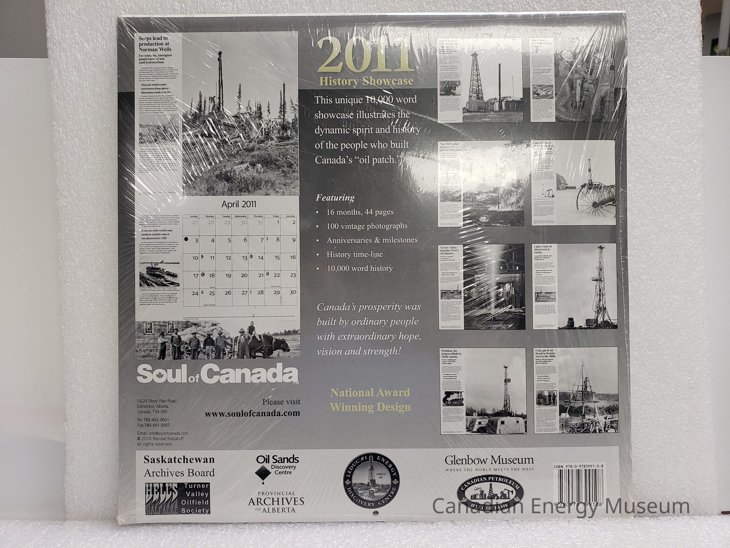 A wall calendar themed around Albertan oil history, for 2011.Collection