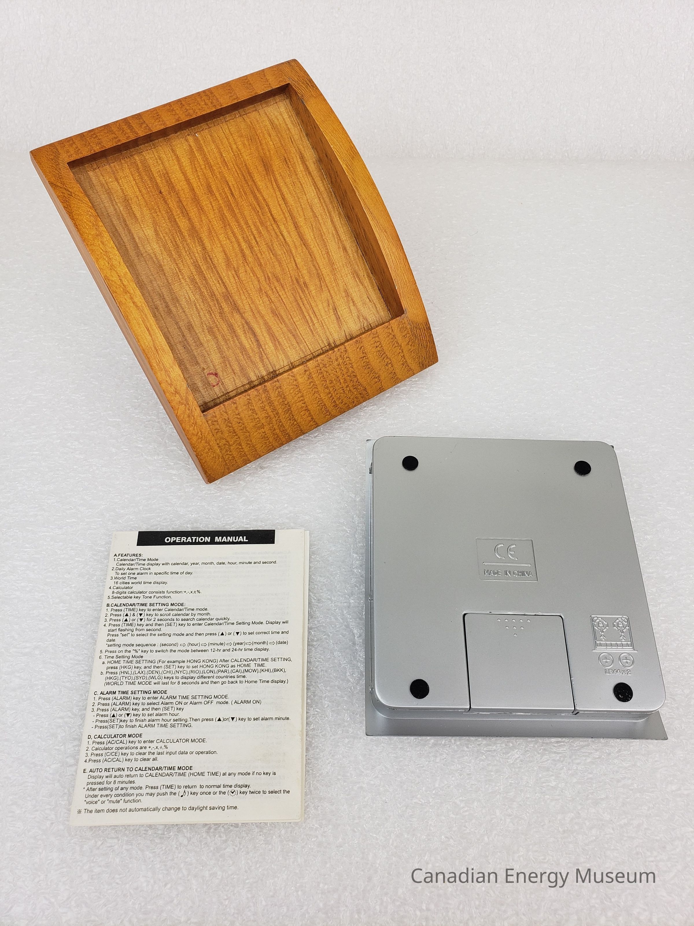 Oil, Oil Industry, Promotional Item, Desk Ornament, Plastic, Red, Calendar, Calculator, Wood, Silver, Black, Petroleum Industry Training Service, Digital Display, Canada, Alarm Clock, Clock, Digital Clock, GreyDescription