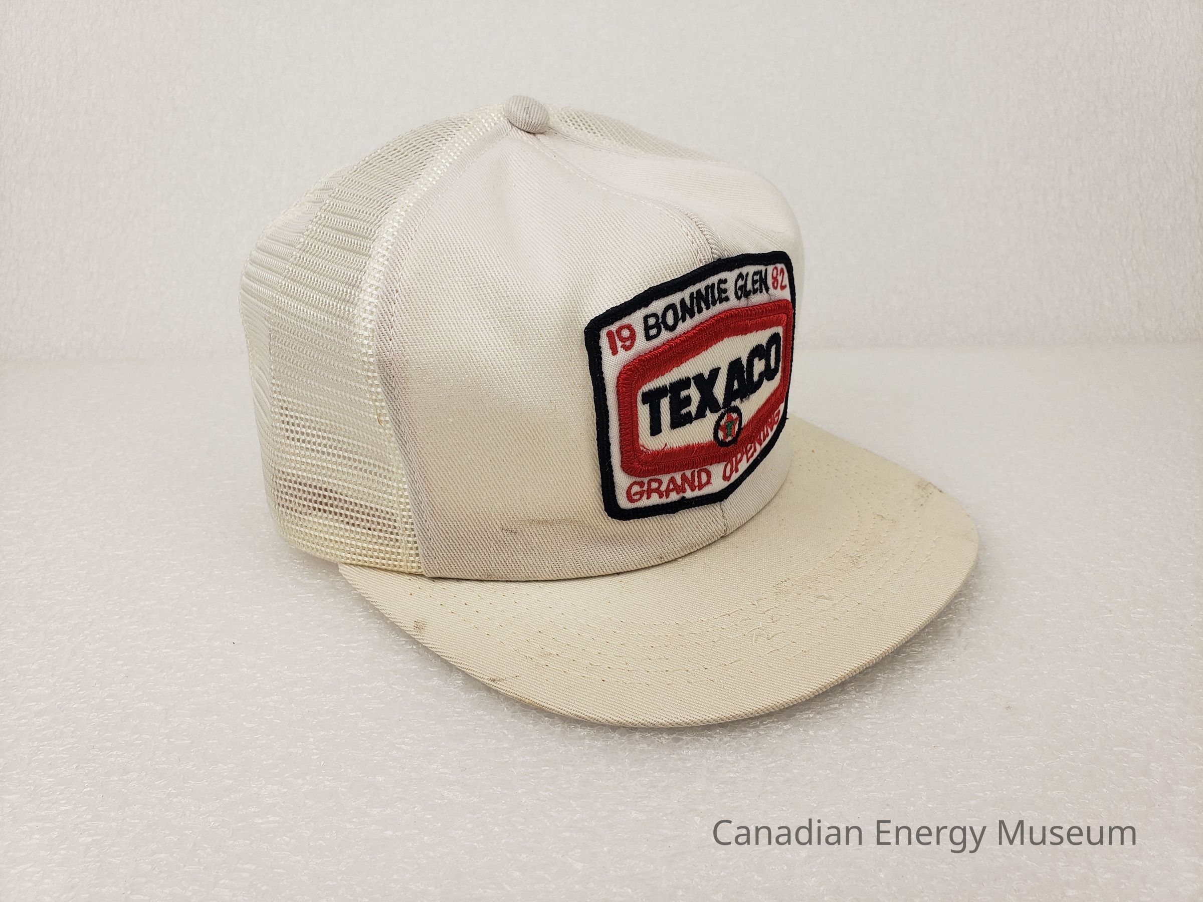 Textile, Texaco, Cap, Hat, White, Red, Plastic, Accessory, Clothing, Oil, Oil Industry, Promotional Item, Trucker Cap, Patch, Embroidery, BlackDescription