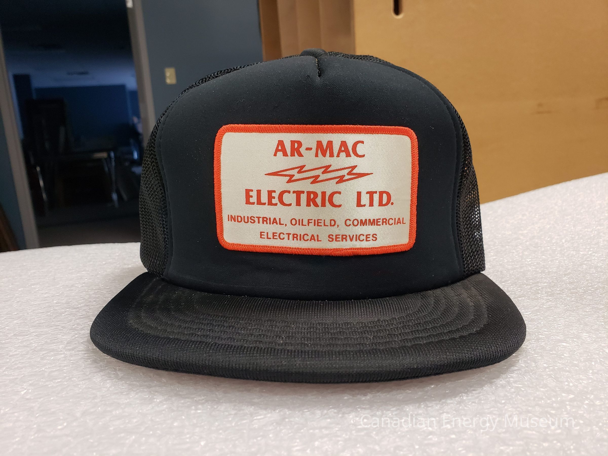 Trucker cap, branded to Ar-Mac Electric Ltd. Black front, visor, and mesh.
