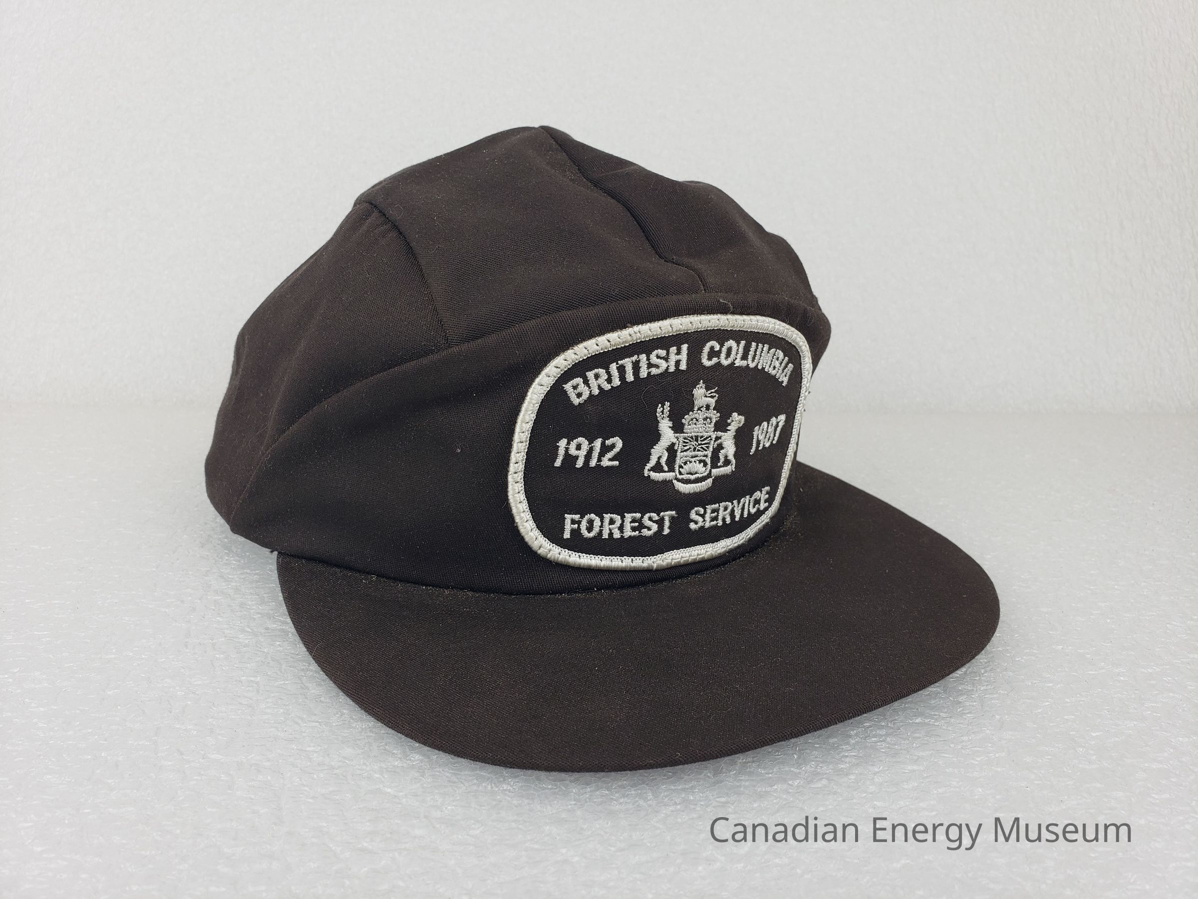 A 5-Panel cap with an embroidered patch branded for the British Columbia Forest Service, 1912-1987.