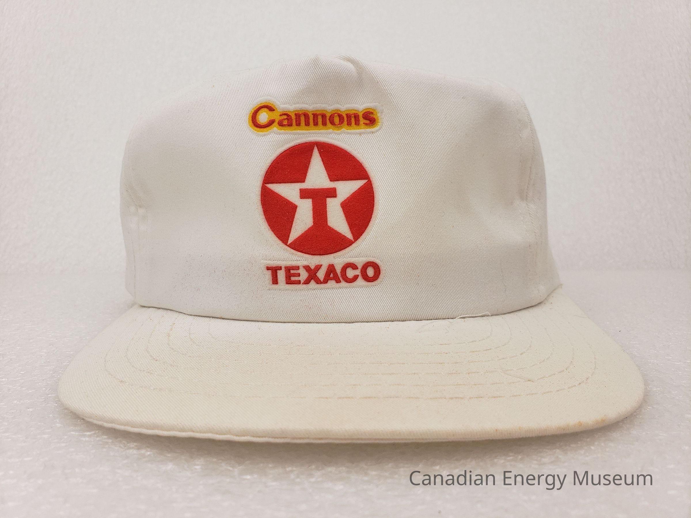 Textile, Texaco, Cap, Hat, White, Red, Black, Plastic, Accessory, Clothing, Oil, Oil Industry, Promotional Item, Trucker Cap, Embroidery, Yellow, FlockedDescription