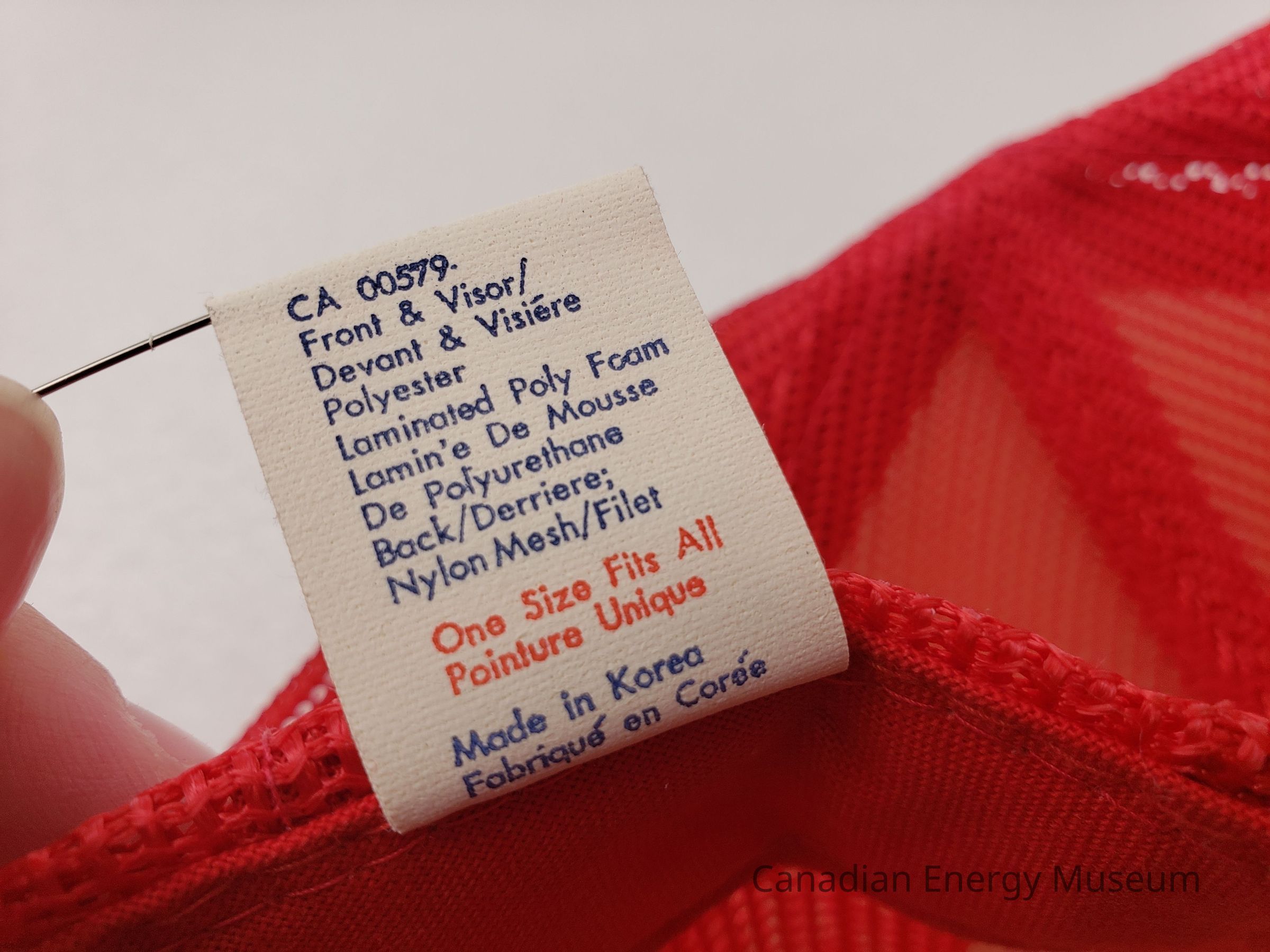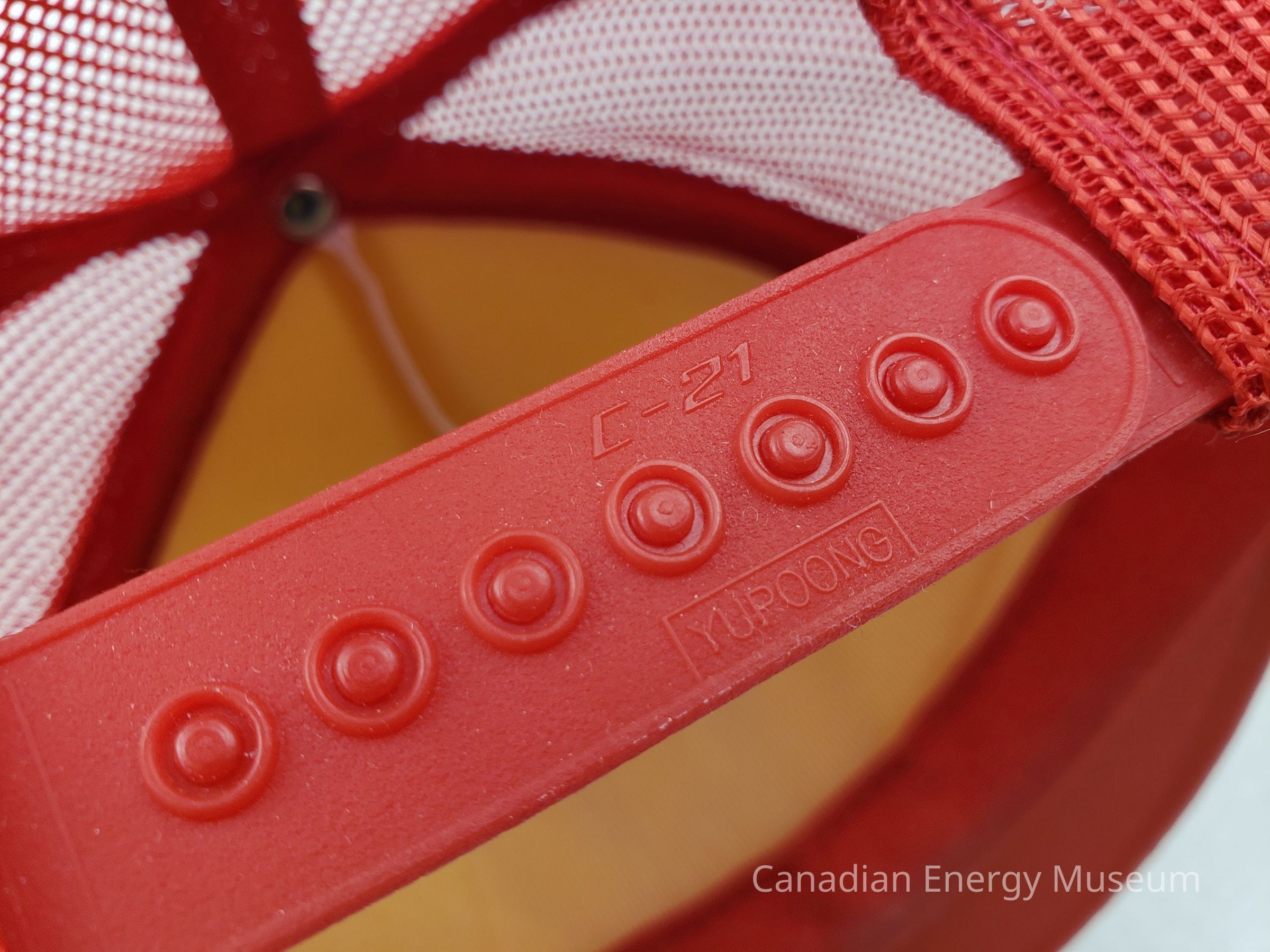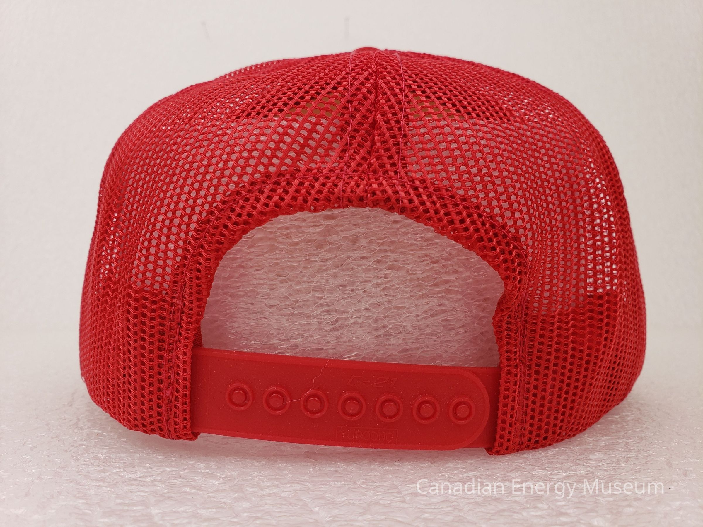 Fastening: Snap back, red plastic.