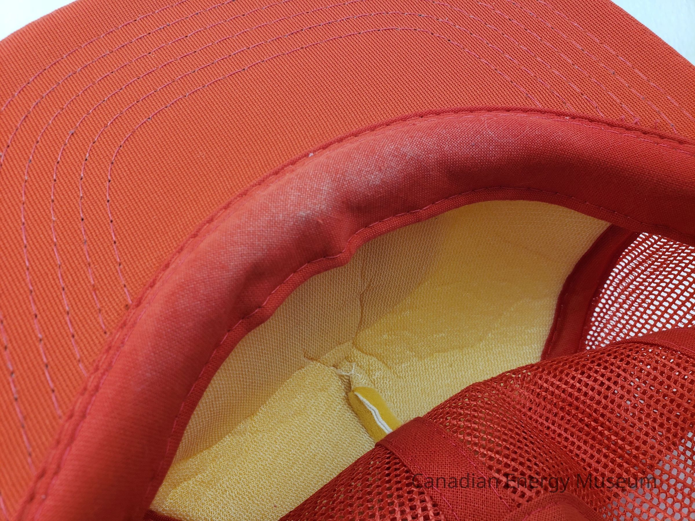 Crown Material: Foam padded, white with red stitching.