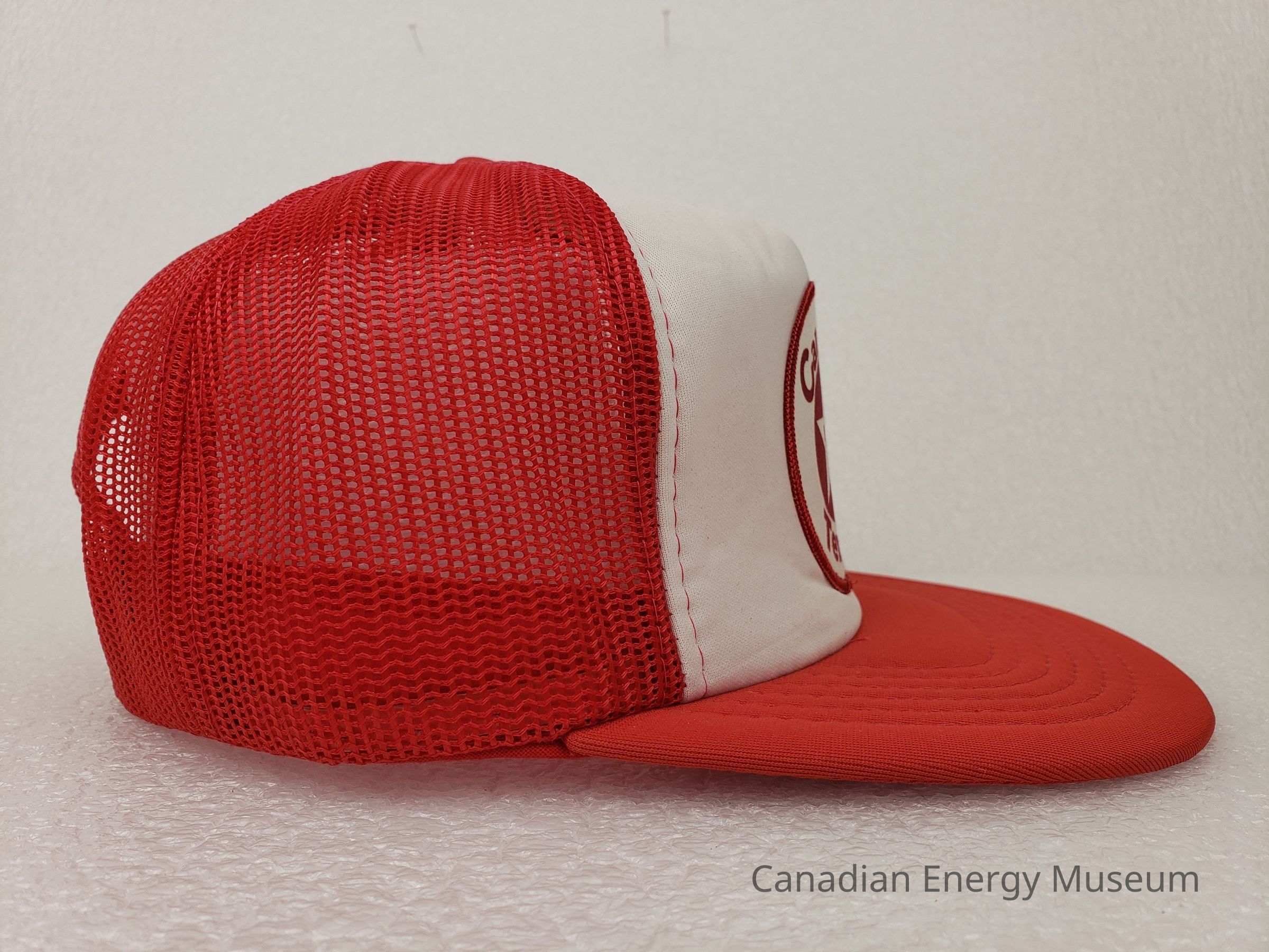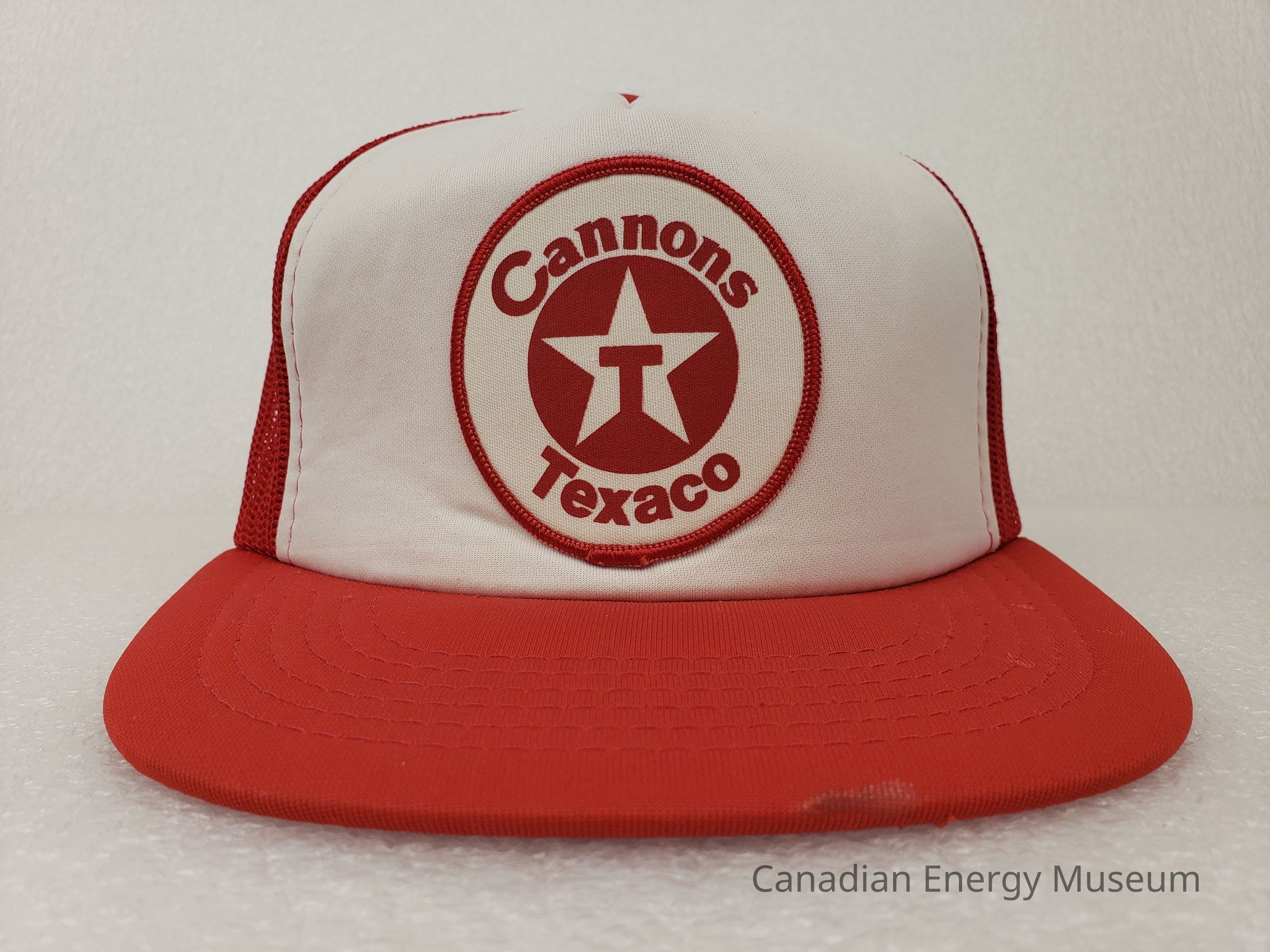 Textile, Texaco, Cap, Hat, White, Red, Plastic, Accessory, Clothing, Oil, Oil Industry, Promotional Item, Trucker Cap, Patch, EmbroideryDescription