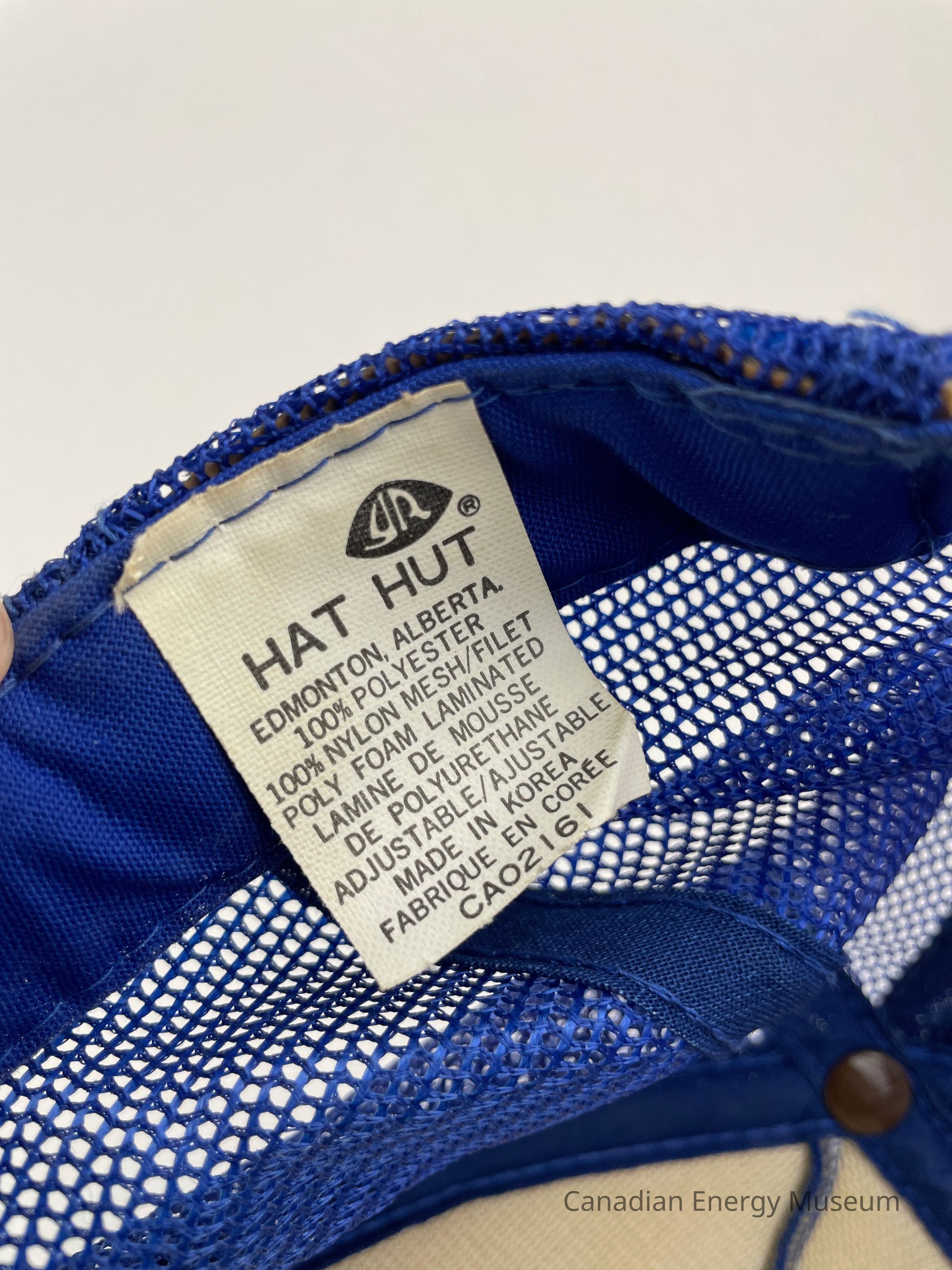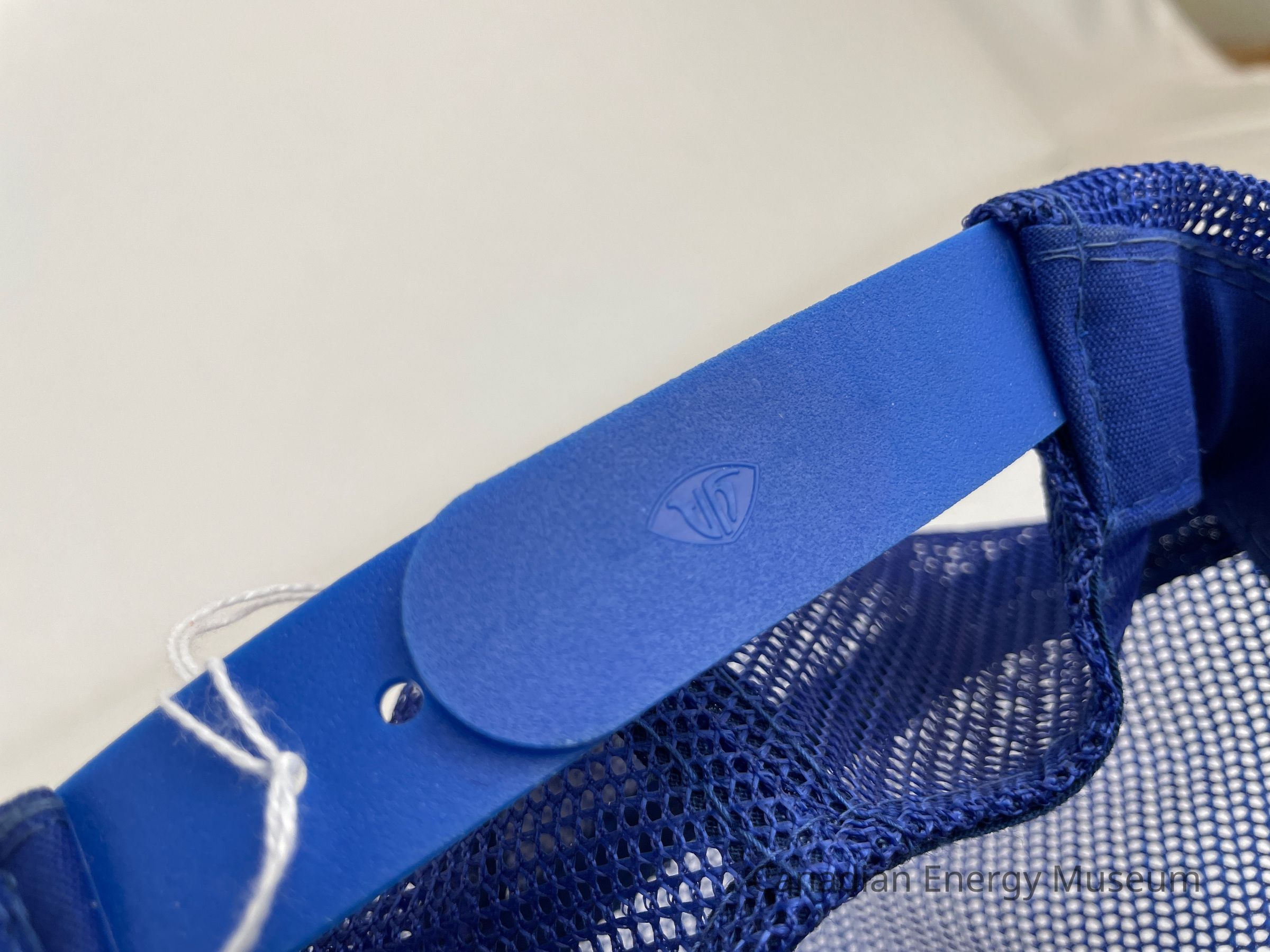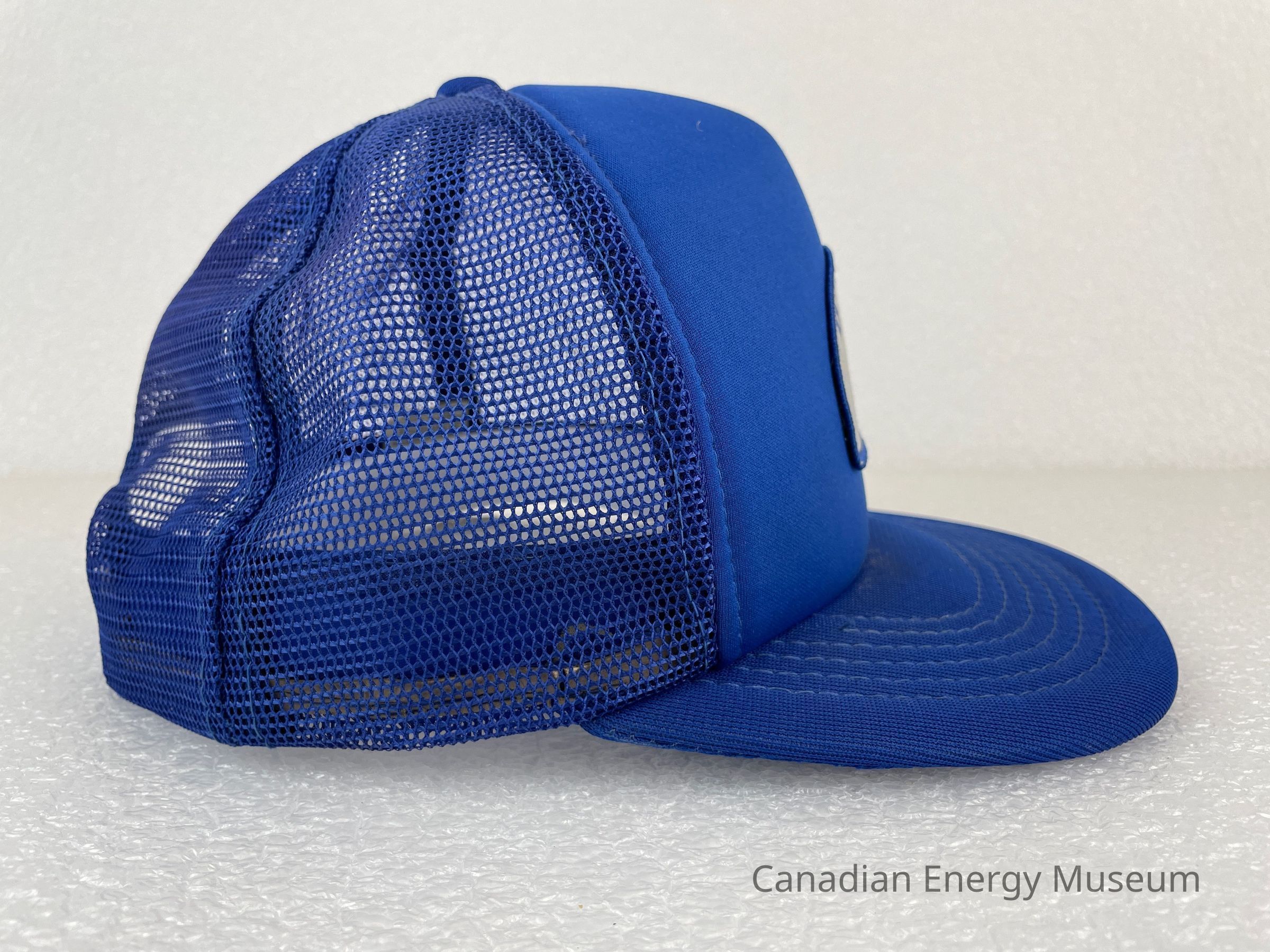Crown Material: Foam backing with fabric outer, blue with blue stitching.