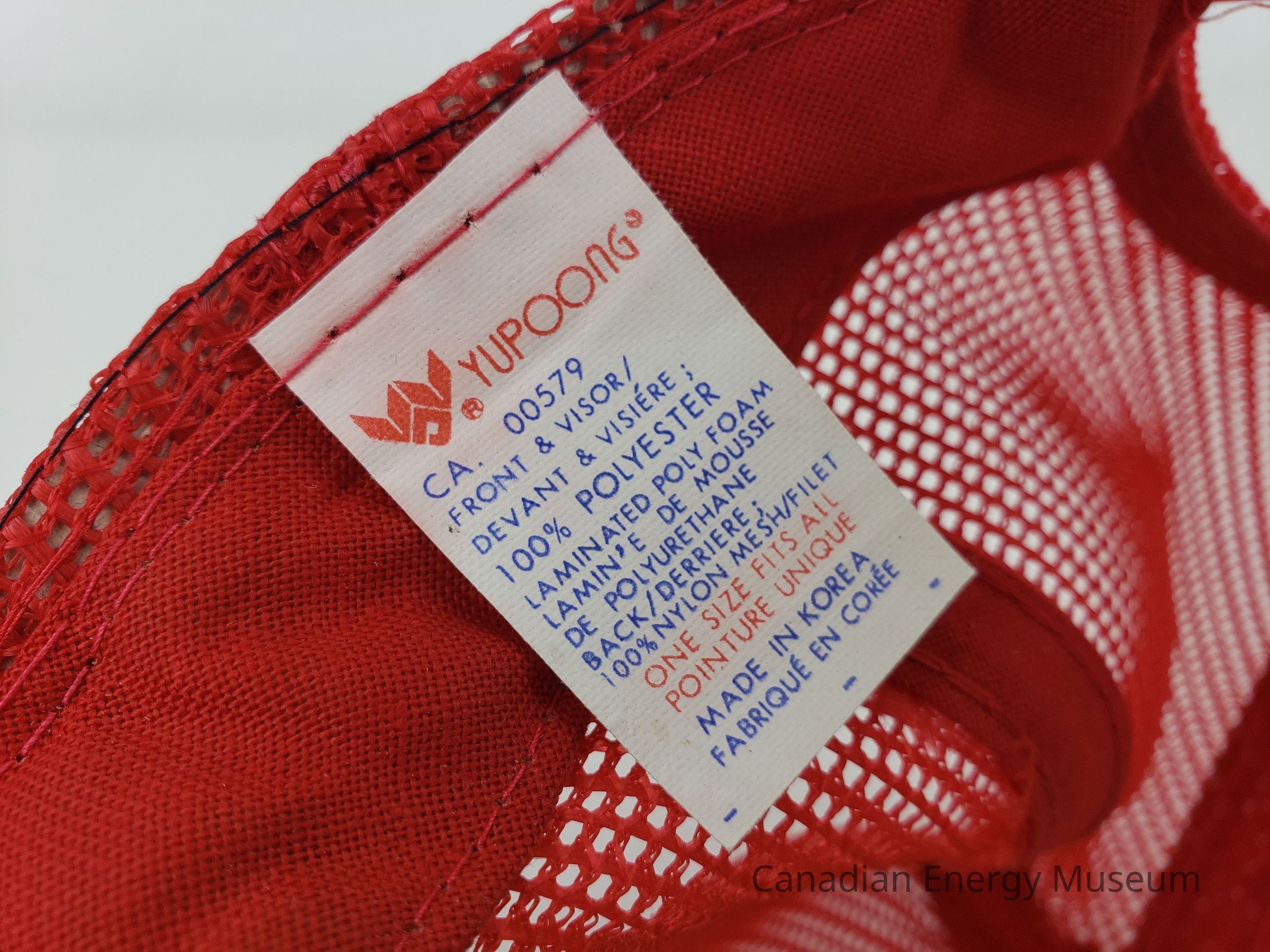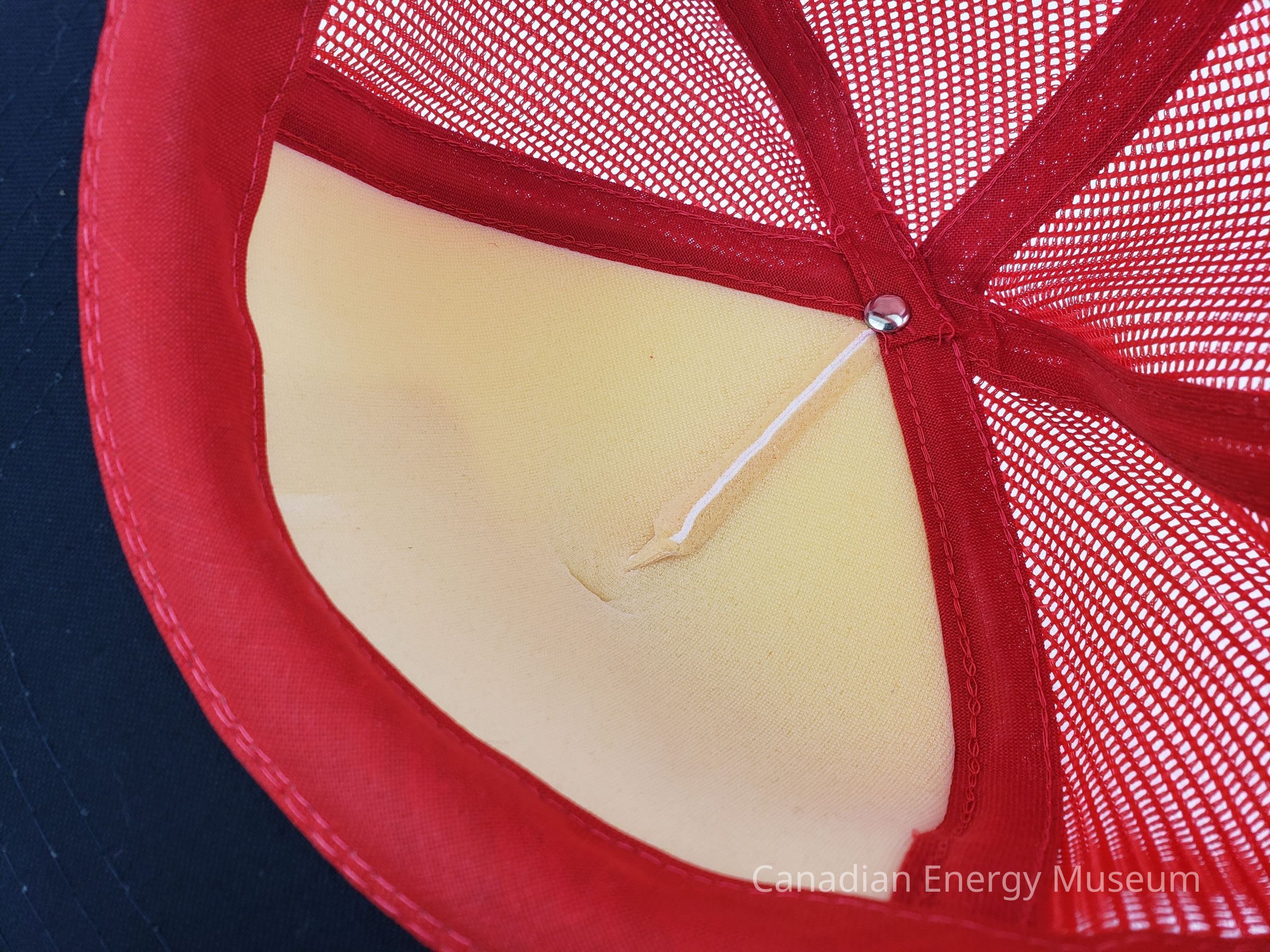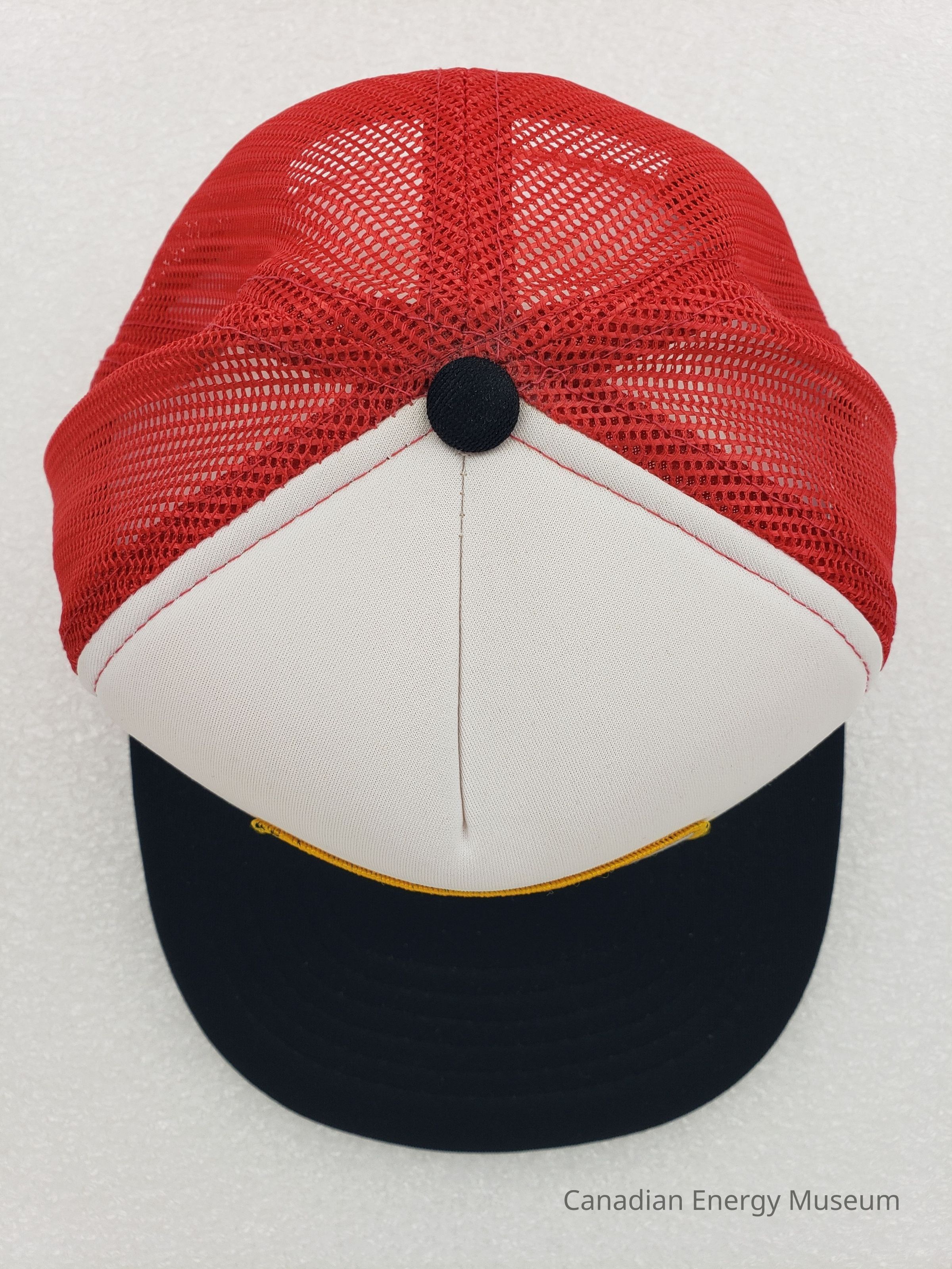 Crown Material: Foam padded, white with red stitching.